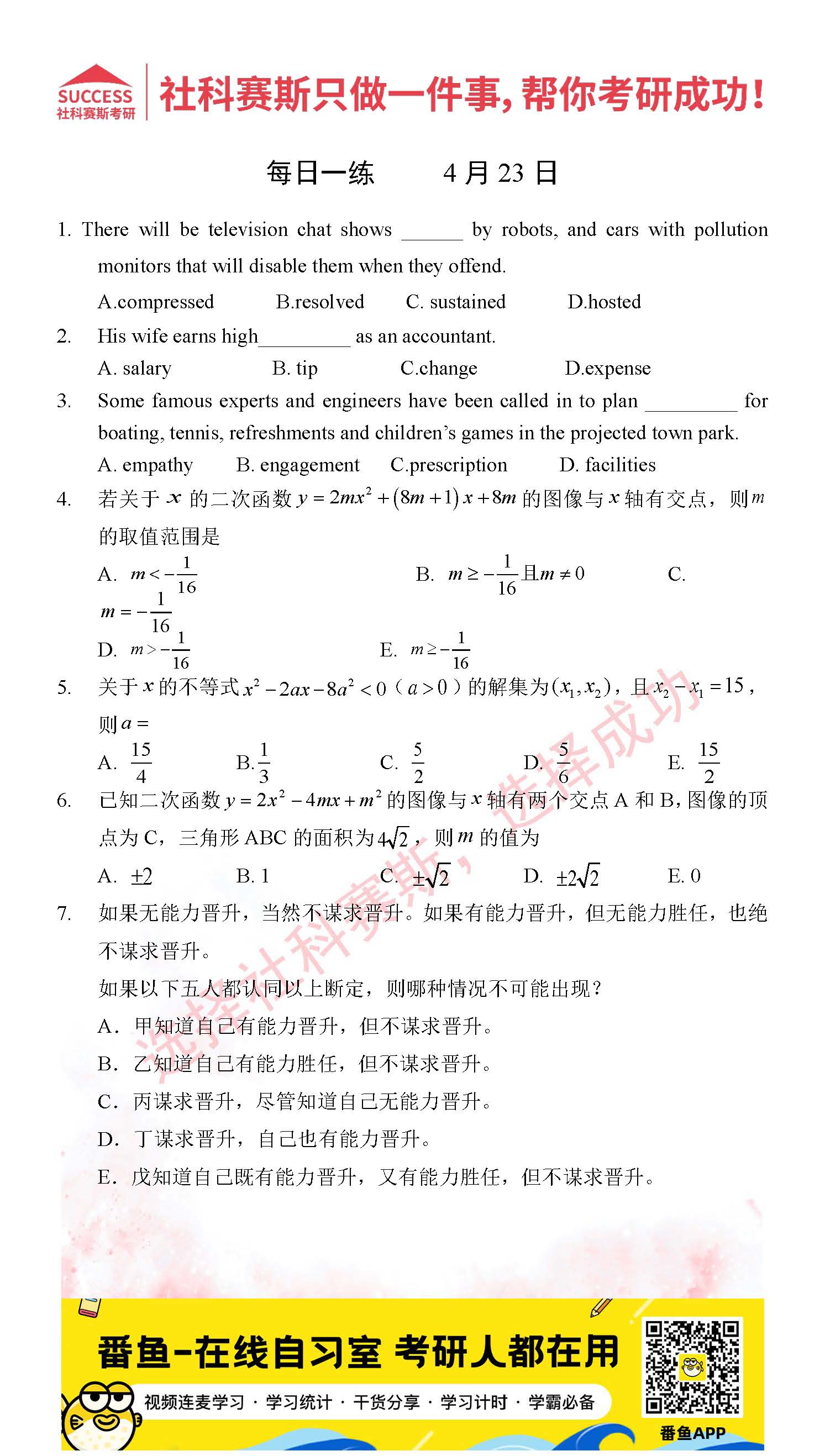 2022考研每日一練:4月23日管理類聯(lián)考每日一練及答案