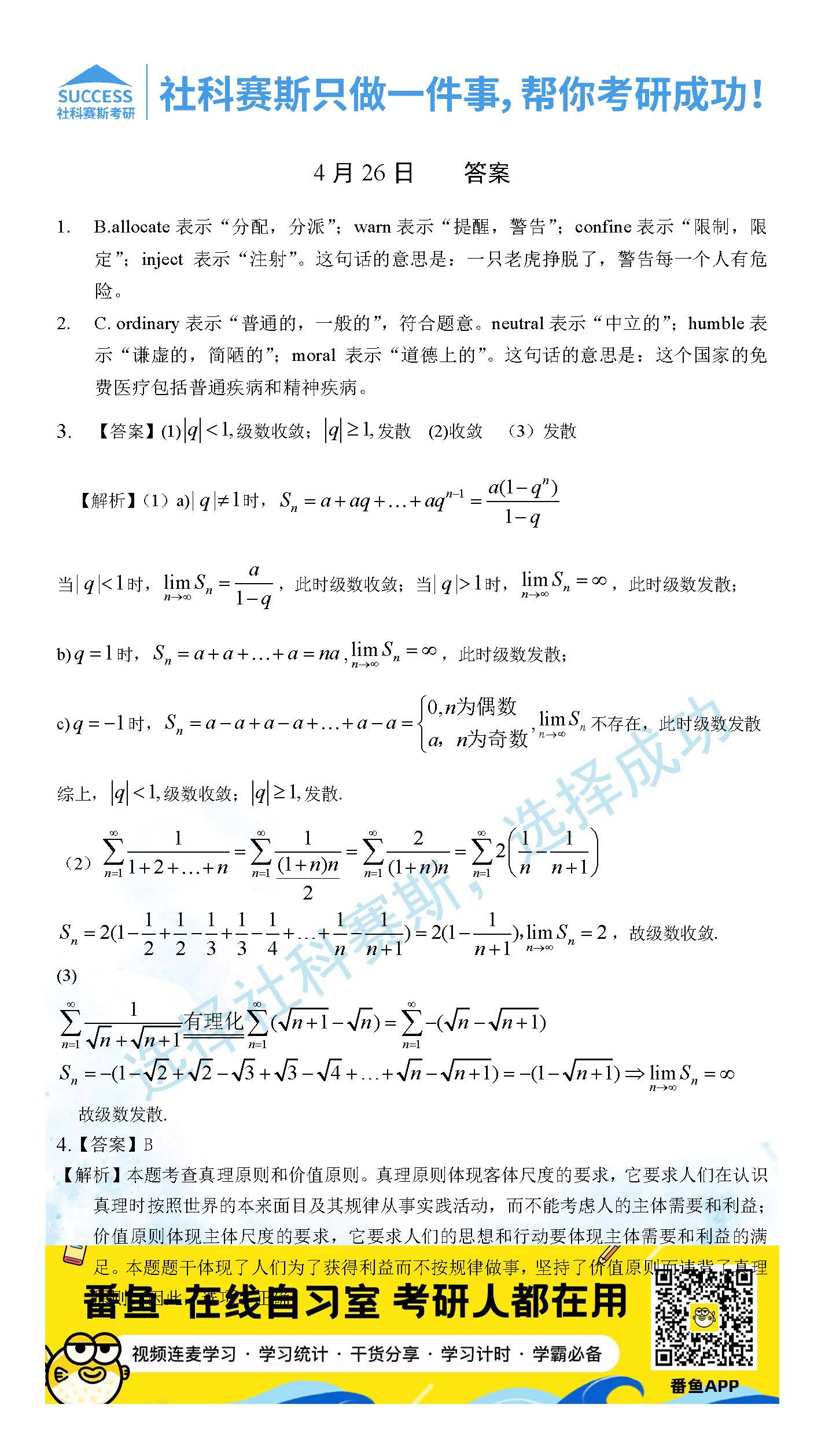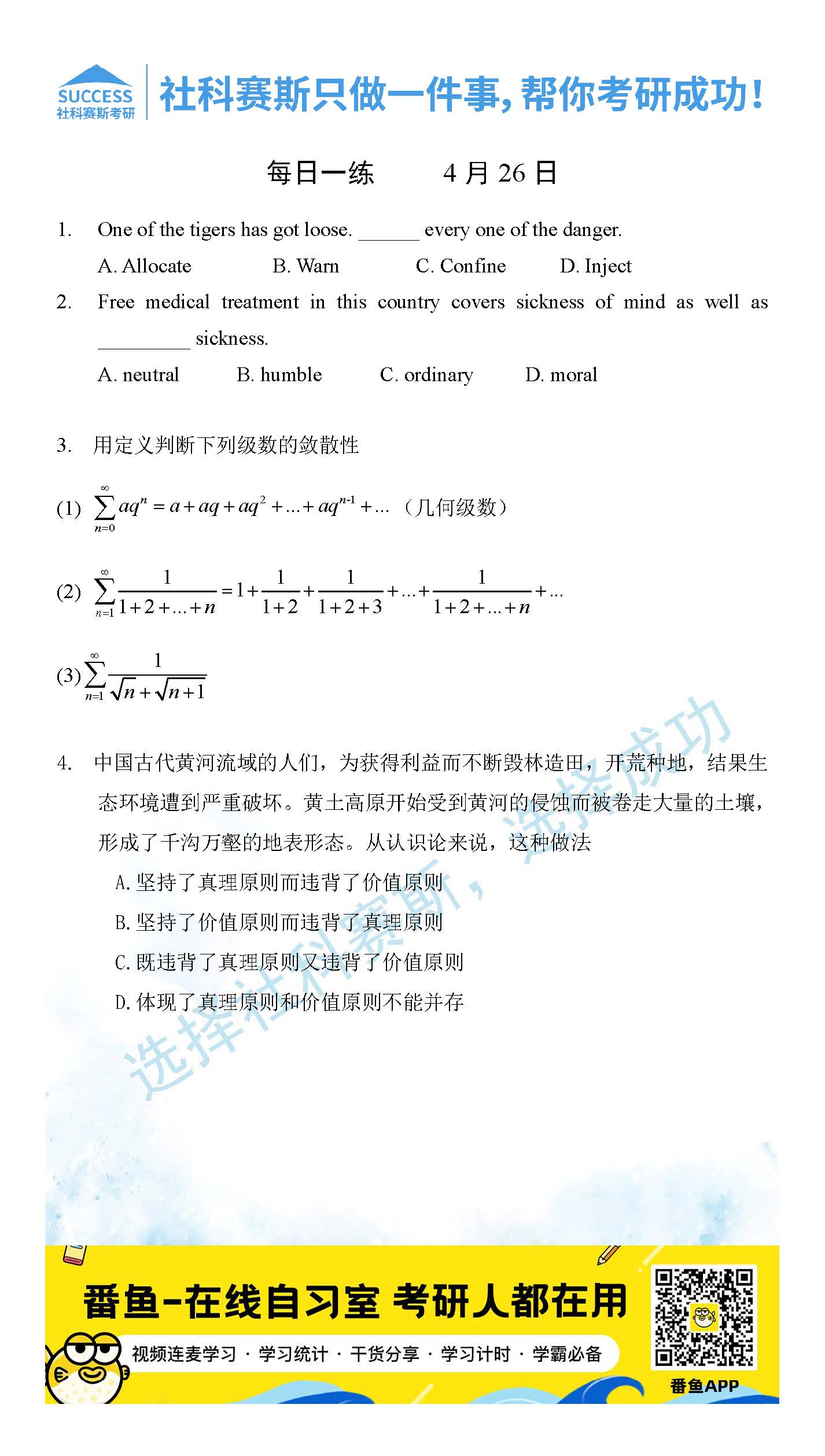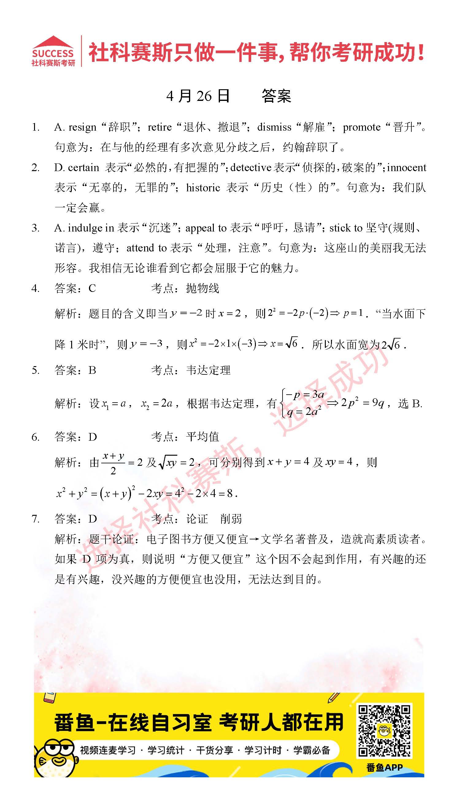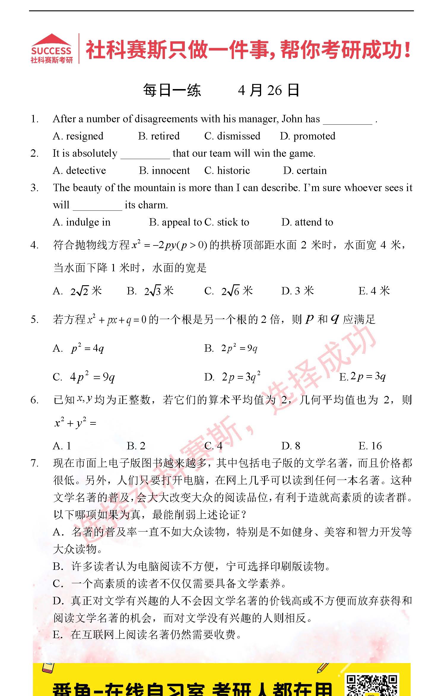 以上就是社科賽斯考研網(wǎng)小編為大家整理2022考研每日一練:4月26日管理類聯(lián)考每日一練及答案的全部?jī)?nèi)容,希望各位考生堅(jiān)持利用起來(lái),更多每日一練內(nèi)容請(qǐng)持續(xù)關(guān)注社科賽斯考研網(wǎng)。
