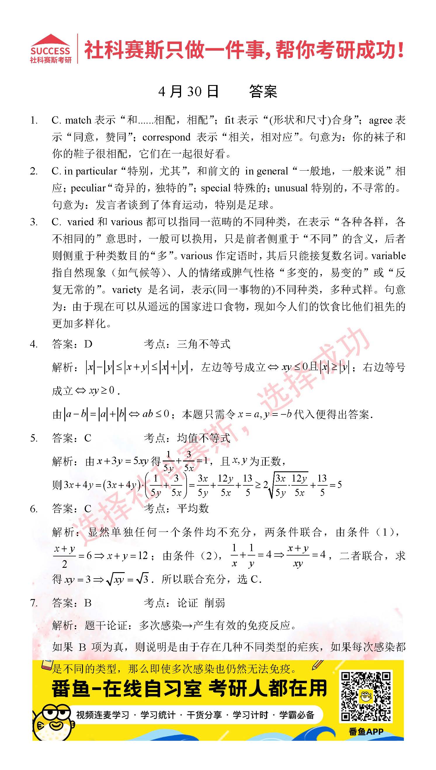 以上就是社科賽斯考研網(wǎng)小編為大家整理2022考研每日一練:4月30日管理類聯(lián)考每日一練及答案的全部內(nèi)容,希望各位考生堅持利用起來,更多每日一練內(nèi)容請持續(xù)關(guān)注社科賽斯考研網(wǎng)。