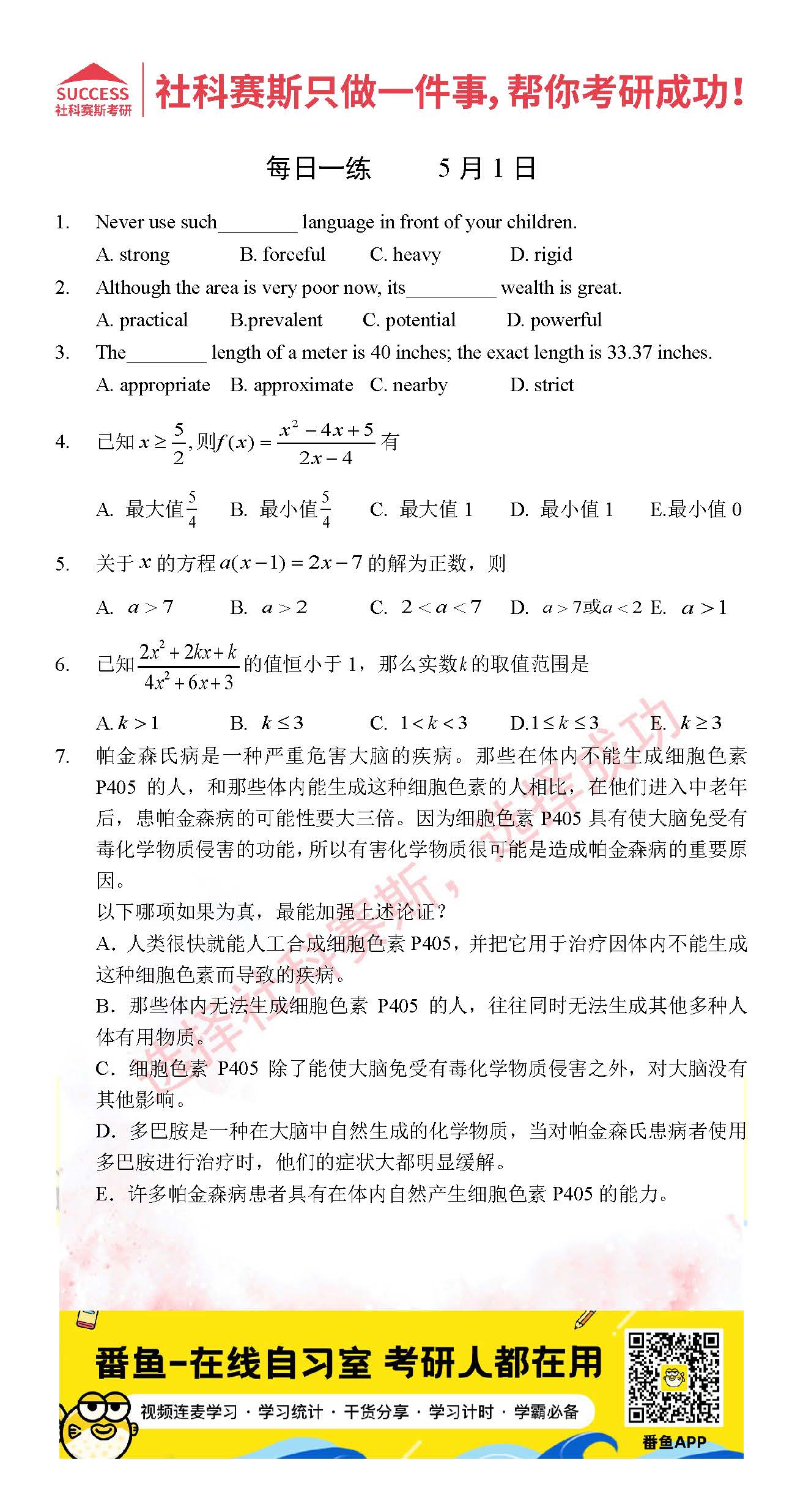 2022考研每日一練:5月1日管理類聯(lián)考每日一練及答案