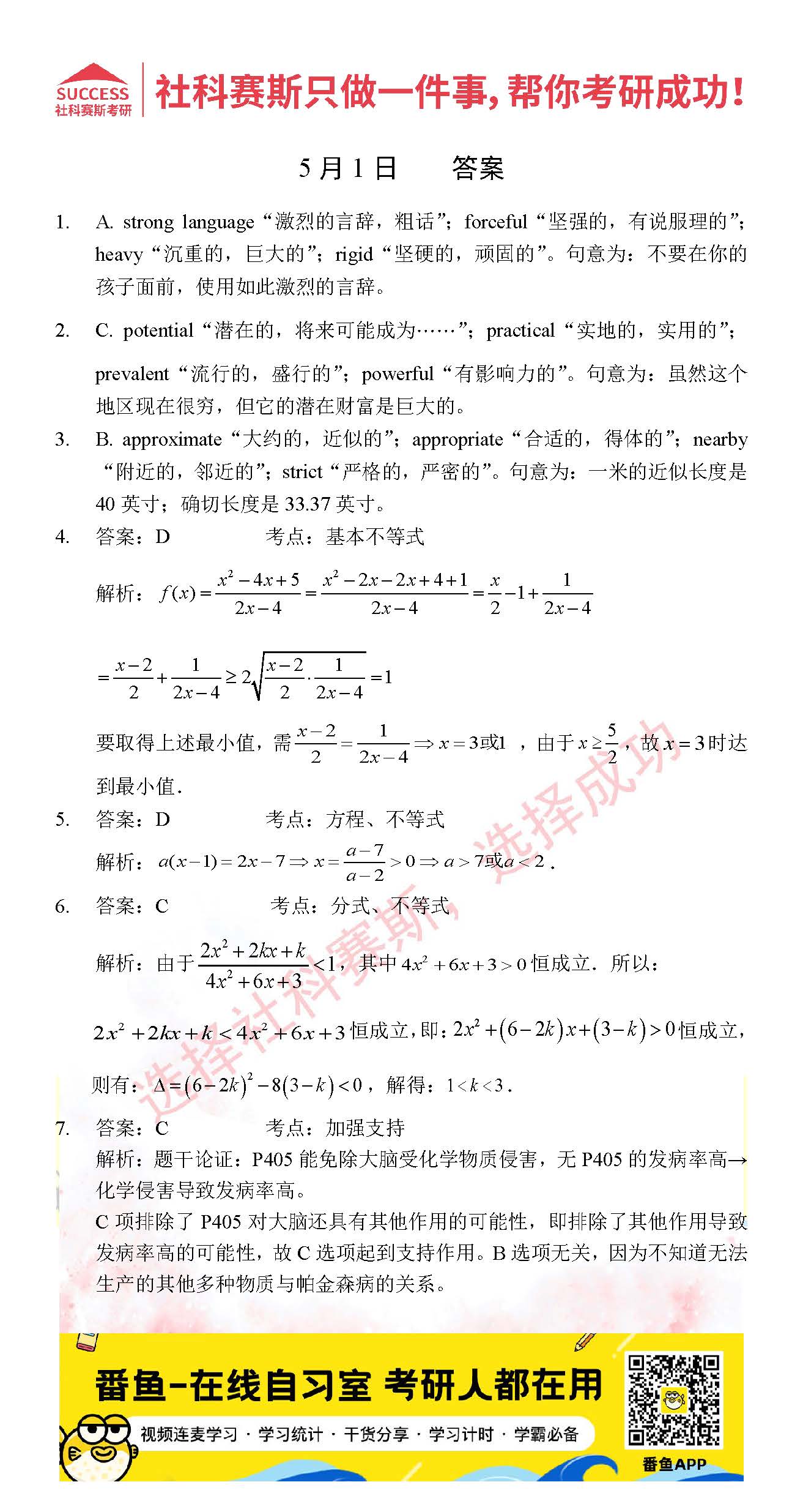 以上就是社科賽斯考研網(wǎng)小編為大家整理2022考研每日一練:5月1日管理類聯(lián)考每日一練及答案的全部?jī)?nèi)容,希望各位考生堅(jiān)持利用起來,更多每日一練內(nèi)容請(qǐng)持續(xù)關(guān)注社科賽斯考研網(wǎng)。