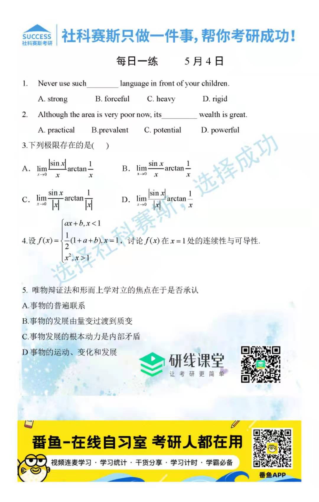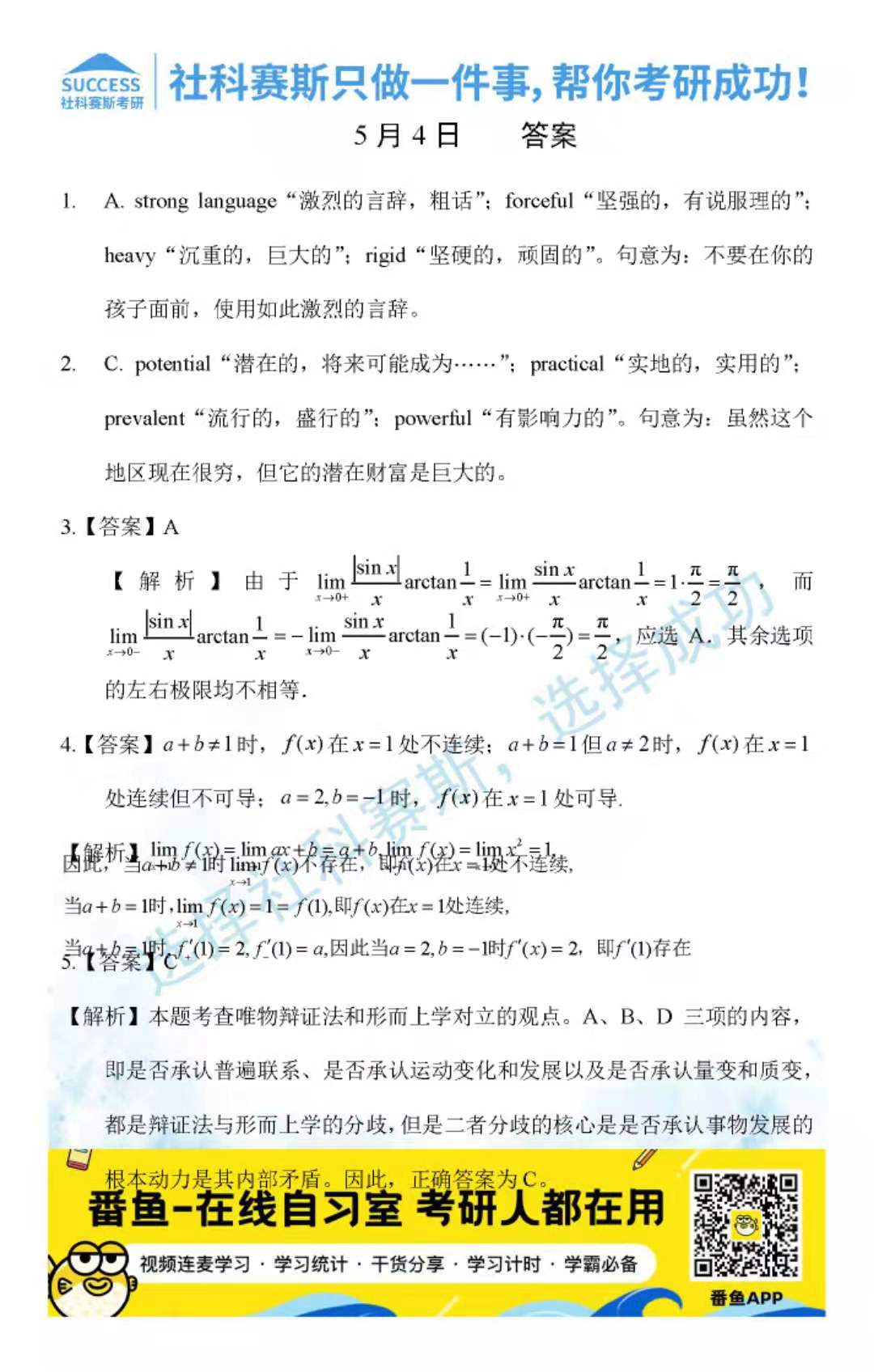 以上就是社科賽斯考研網(wǎng)小編為大家整理2022考研每日一練:5月4日管理類聯(lián)考每日一練及答案的全部內(nèi)容,希望各位考生堅持利用起來,更多每日一練內(nèi)容請持續(xù)關(guān)注社科賽斯考研網(wǎng)。