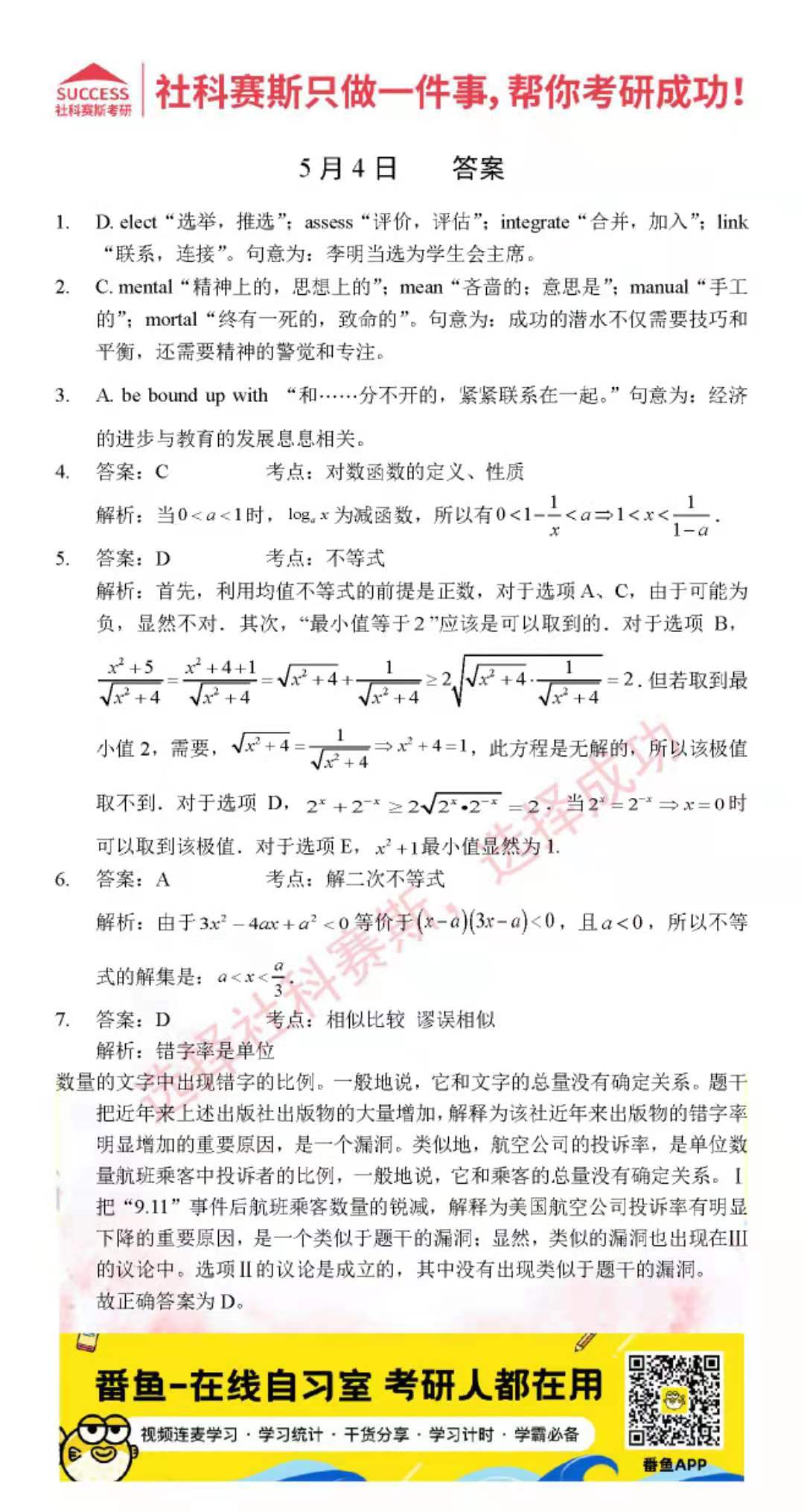 2022考研每日一練:5月4日管理類聯(lián)考每日一練及答案