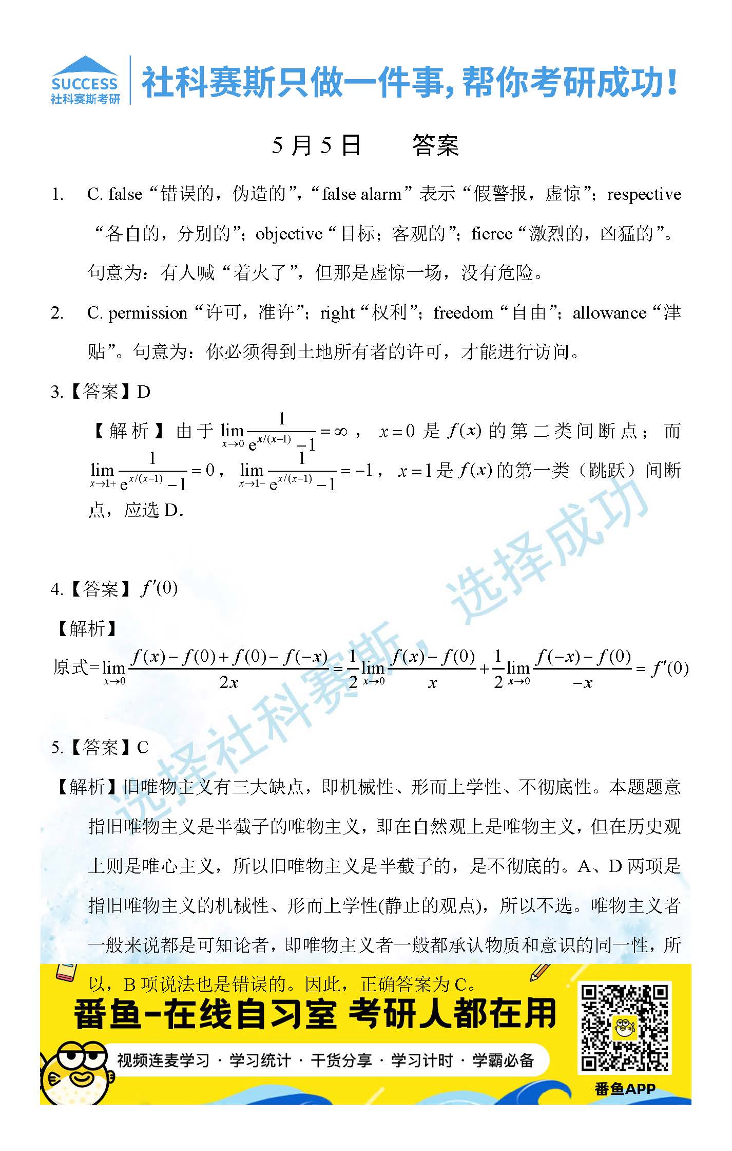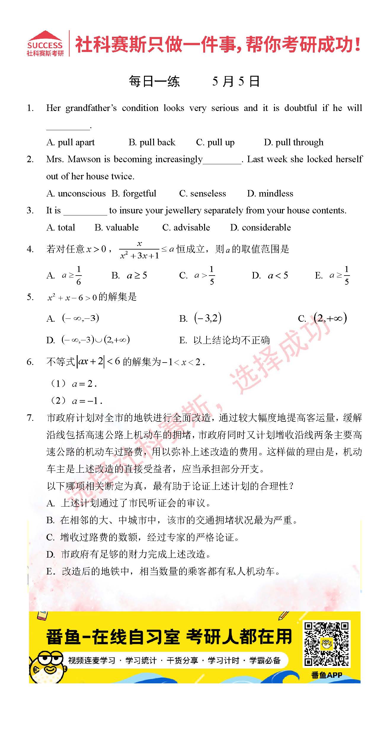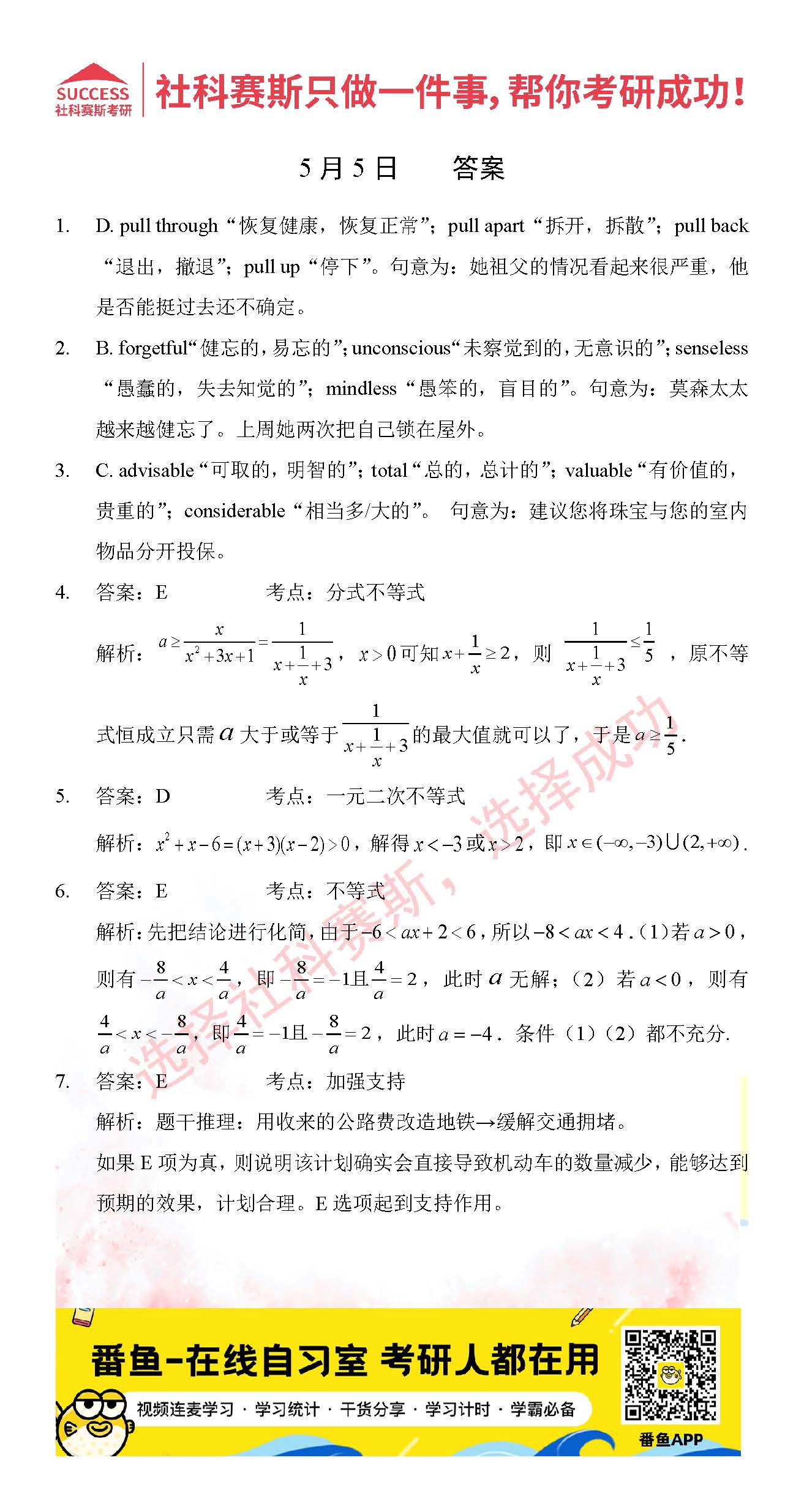 2022考研每日一練:5月5日管理類聯(lián)考每日一練及答案