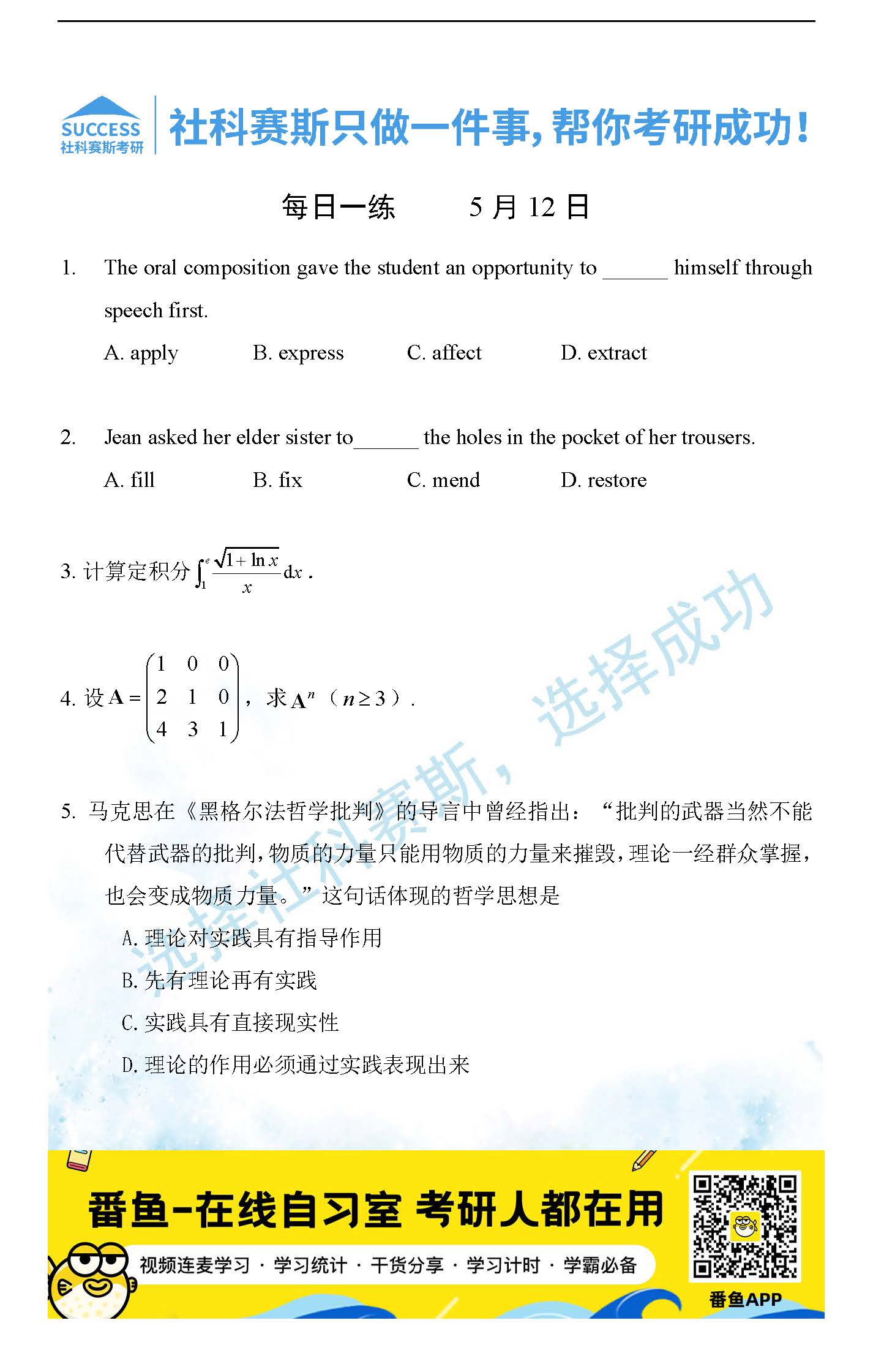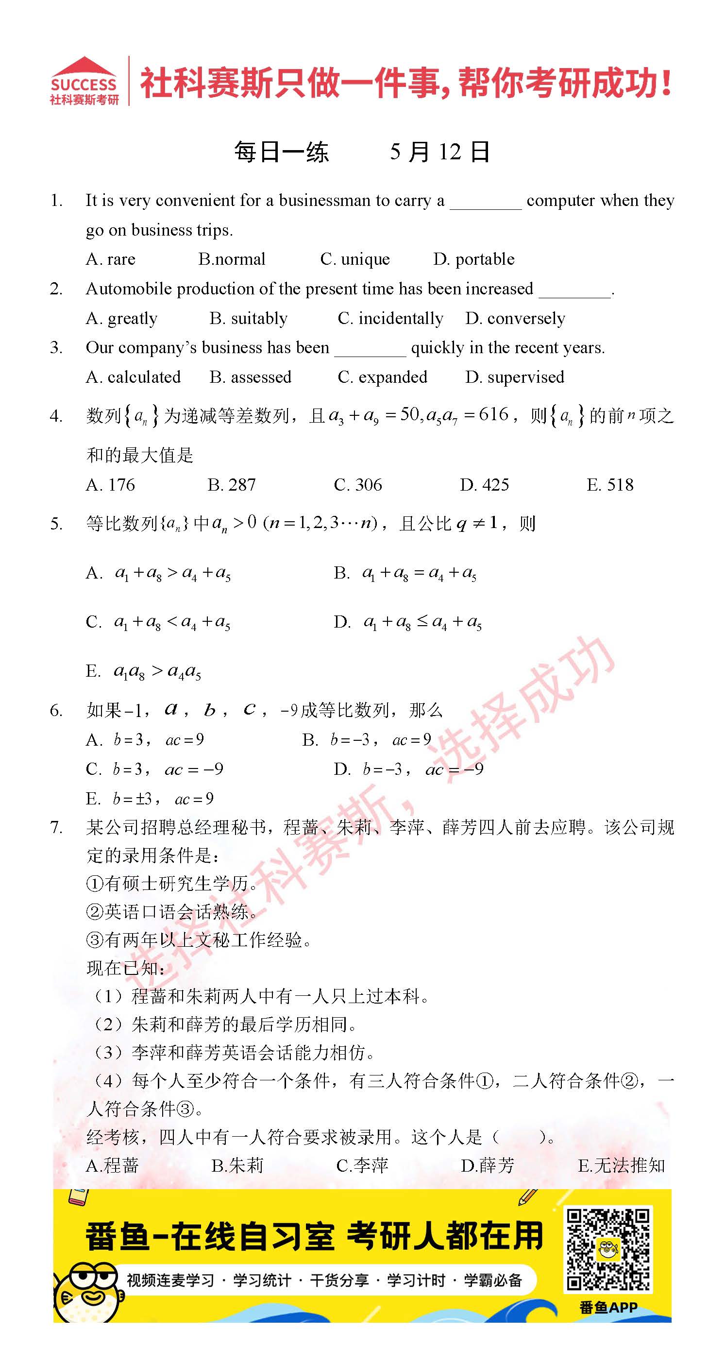 2022考研每日一練:5月12日管理類聯(lián)考每日一練及答案