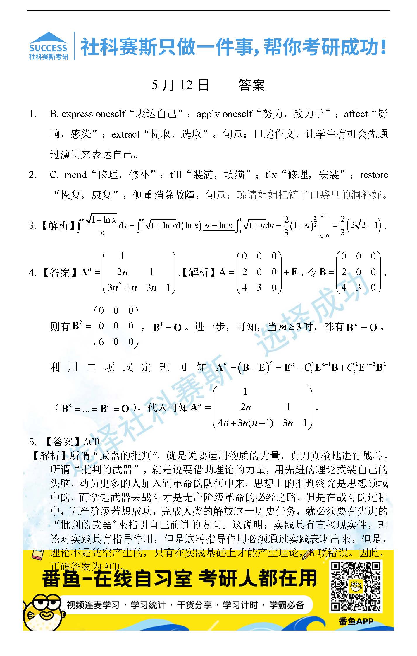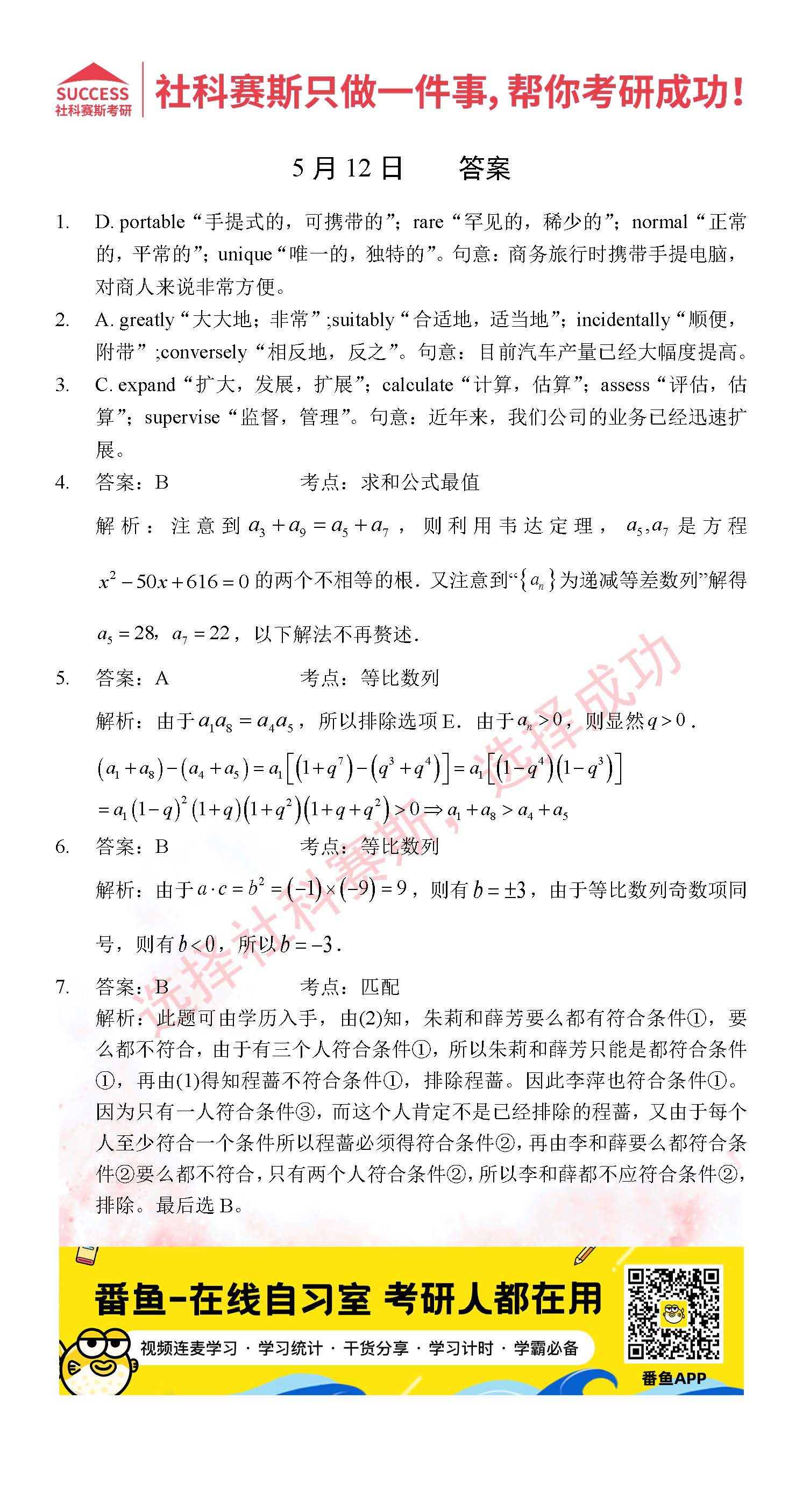 以上就是社科賽斯考研網(wǎng)小編為大家整理2022考研每日一練:5月12日管理類聯(lián)考每日一練及答案的全部?jī)?nèi)容,希望各位考生堅(jiān)持利用起來(lái),更多每日一練內(nèi)容請(qǐng)持續(xù)關(guān)注社科賽斯考研網(wǎng)