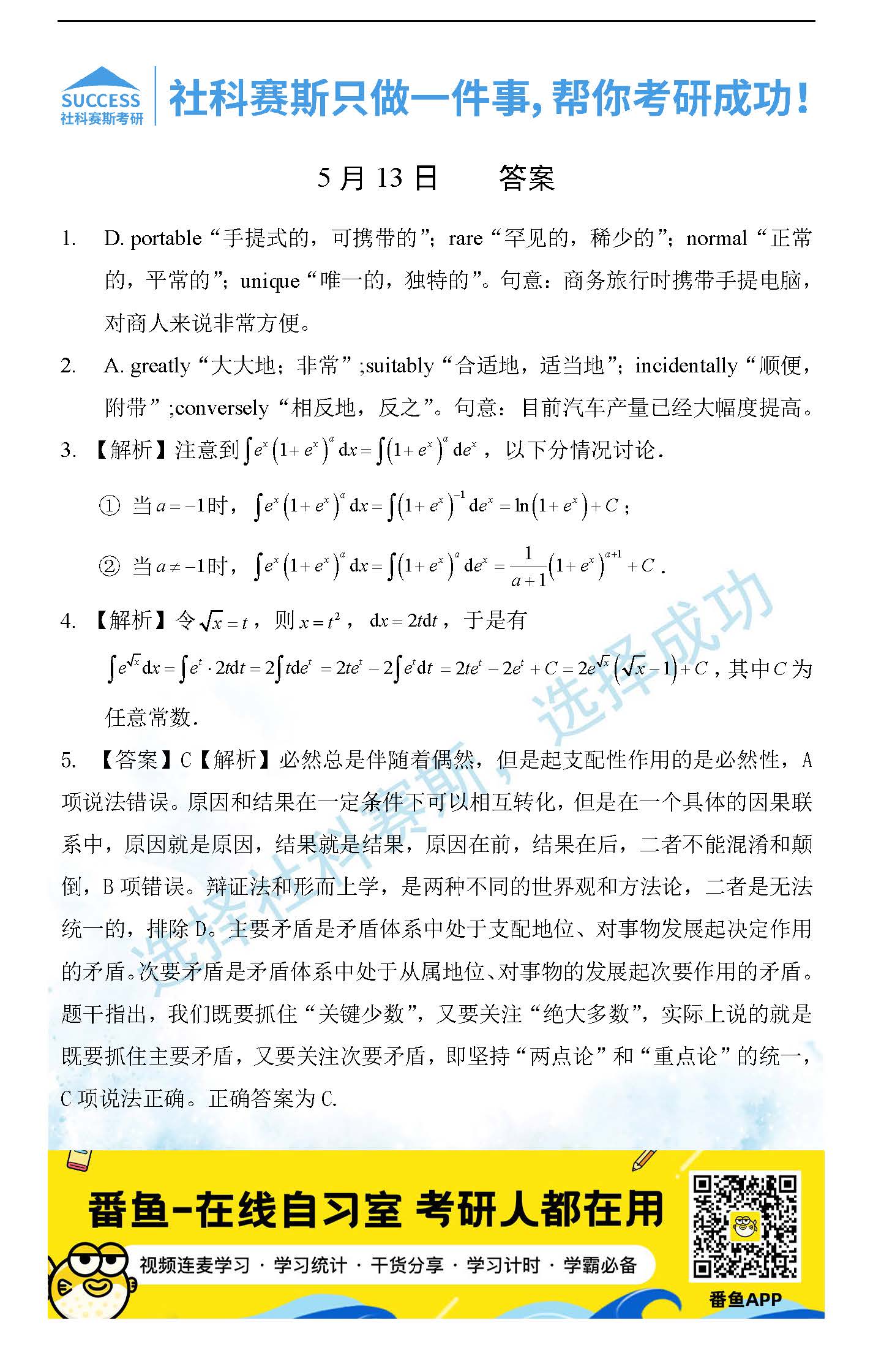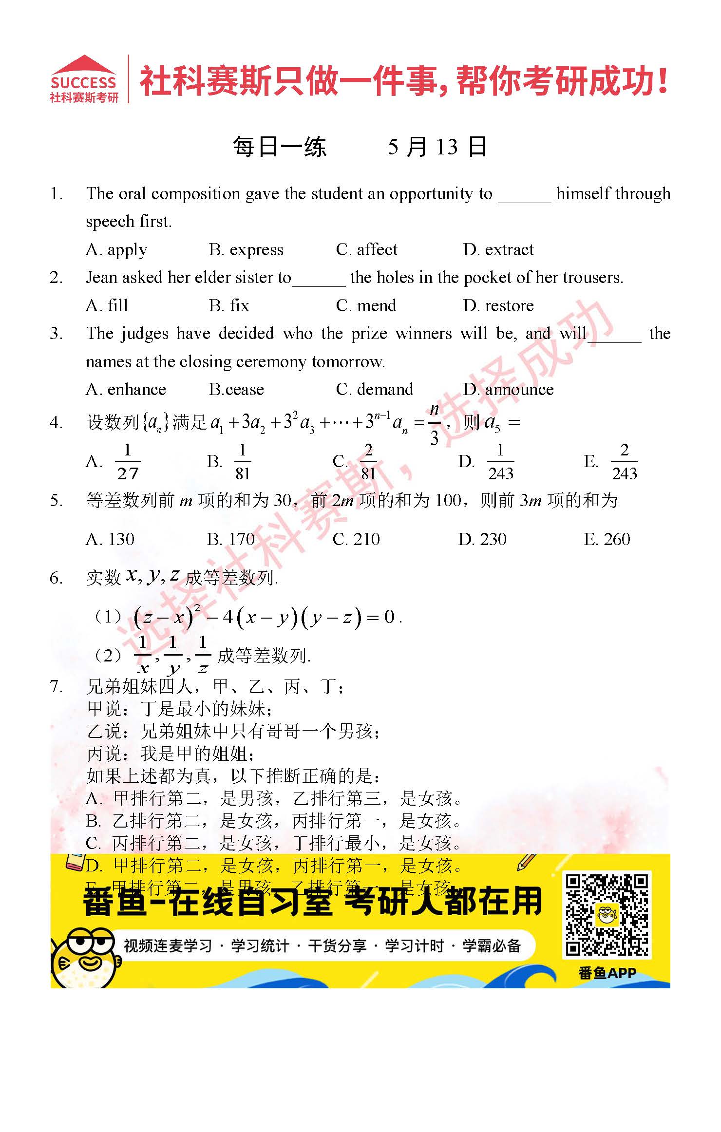 2022考研每日一練:5月13日管理類聯(lián)考每日一練及答案