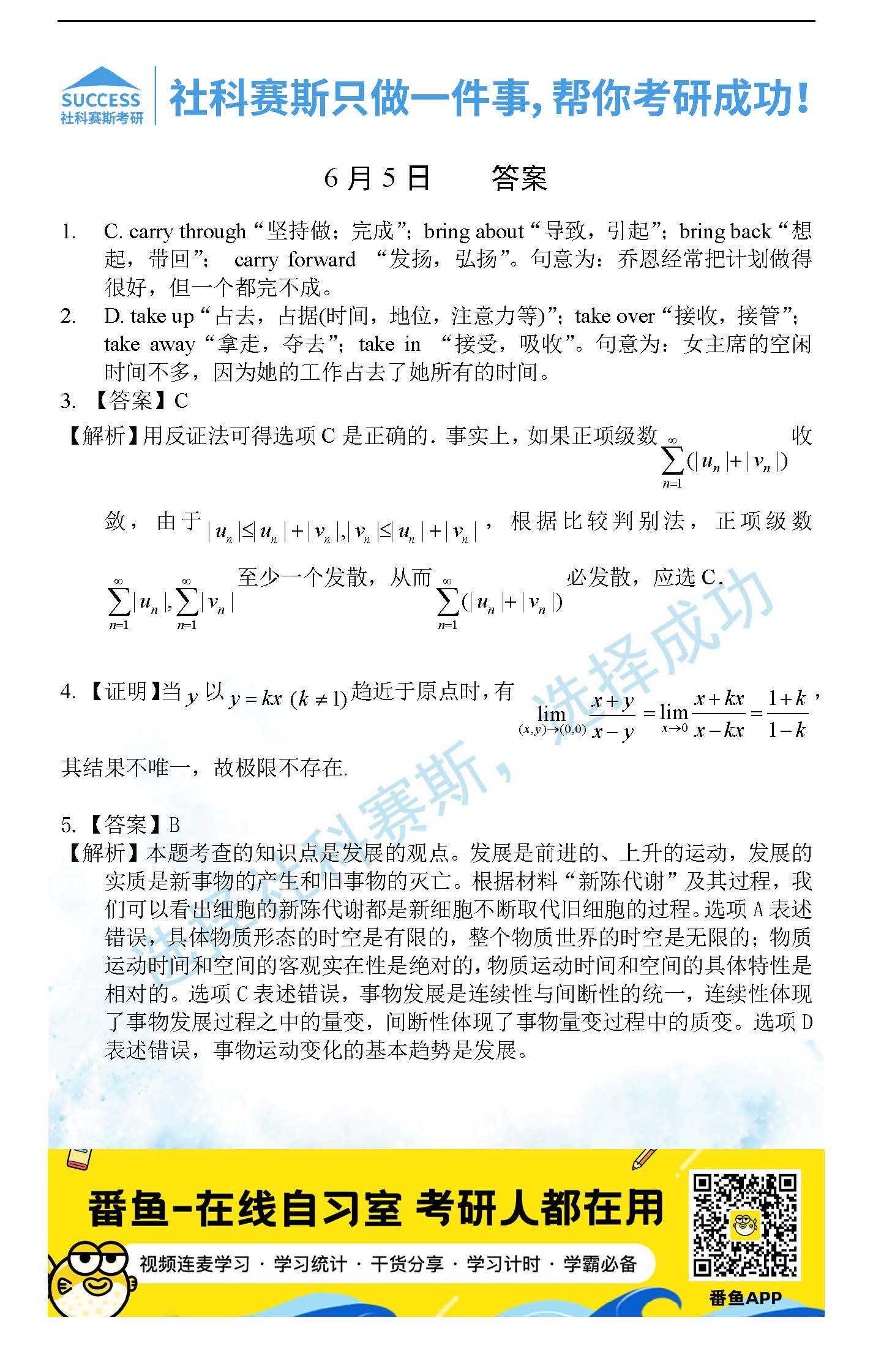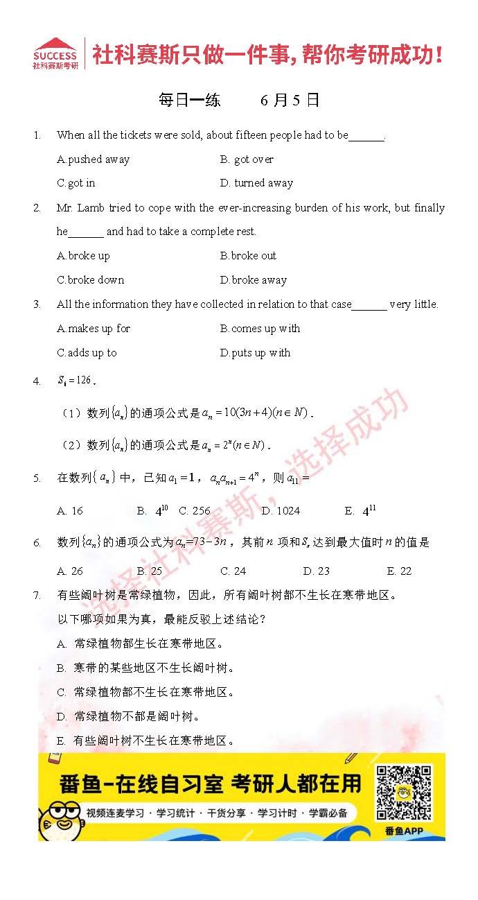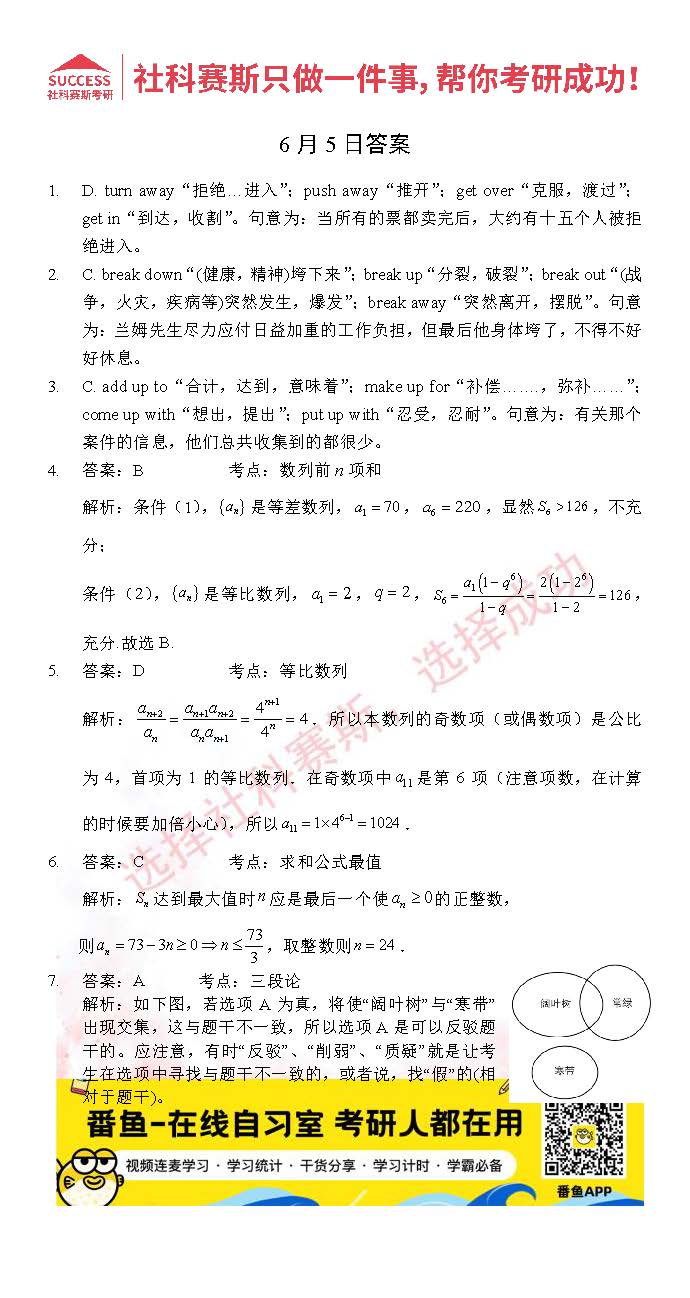以上就是社科賽斯考研網(wǎng)小編為大家整理2022考研每日一練:6月5日管理類聯(lián)考每日一練及答案的全部內(nèi)容,希望各位考生堅持利用起來,更多每日一練內(nèi)容請持續(xù)關(guān)注社科賽斯考研網(wǎng)。