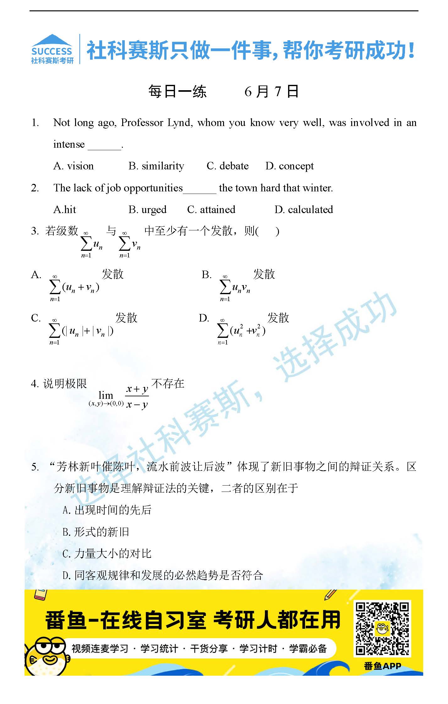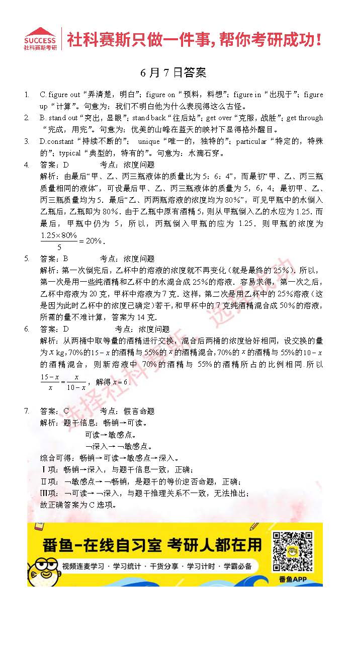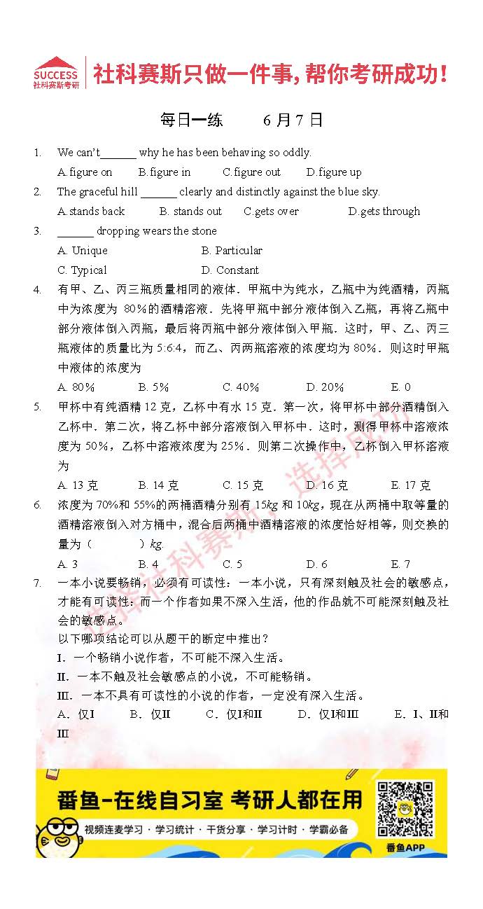 以上就是社科賽斯考研網(wǎng)小編為大家整理2022考研每日一練:6月7日管理類聯(lián)考每日一練及答案的全部?jī)?nèi)容,希望各位考生堅(jiān)持利用起來(lái),更多每日一練內(nèi)容請(qǐng)持續(xù)關(guān)注社科賽斯考研網(wǎng)。