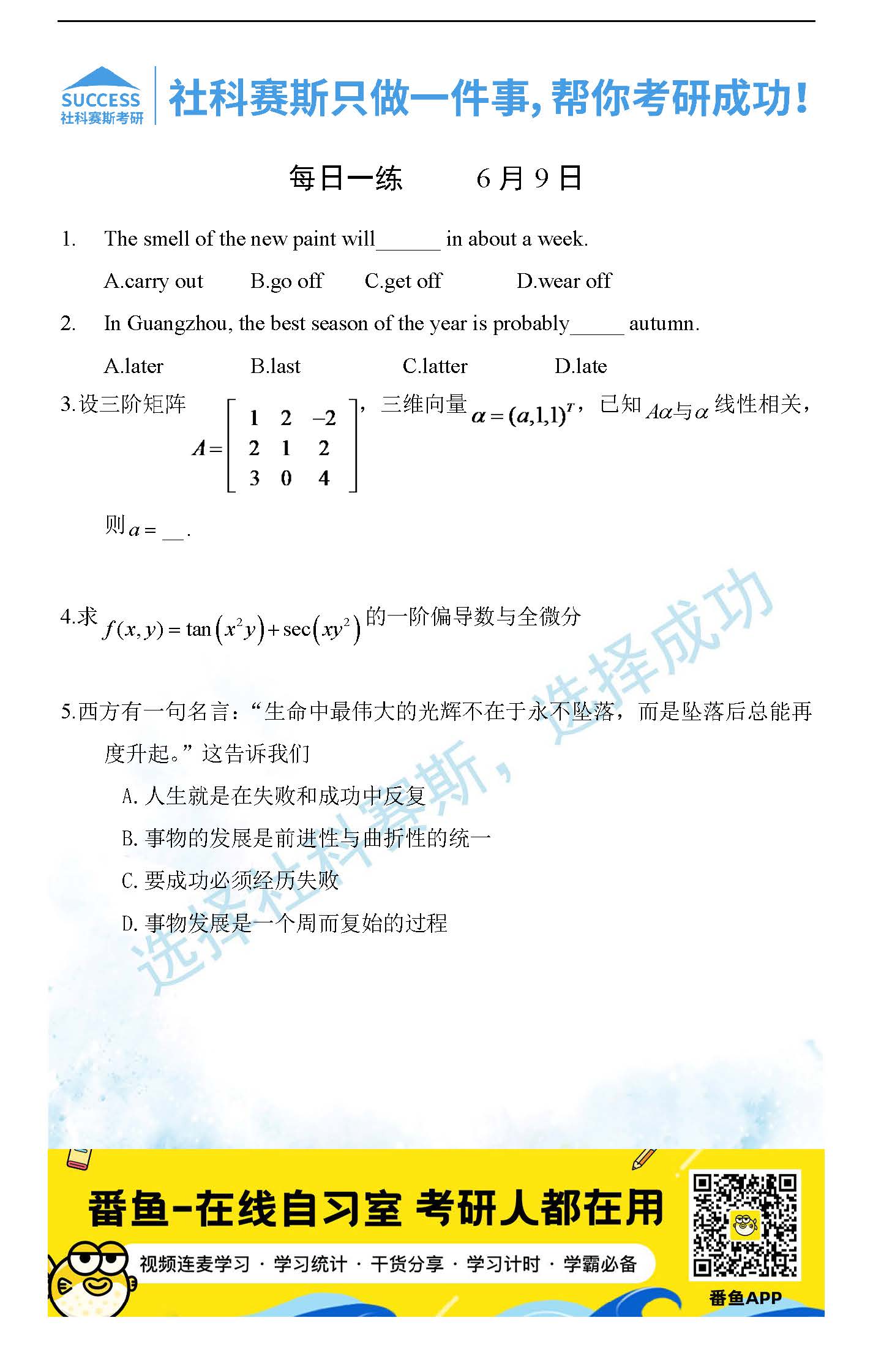 2022考研每日一練:6月9日管理類聯(lián)考每日一練及答案