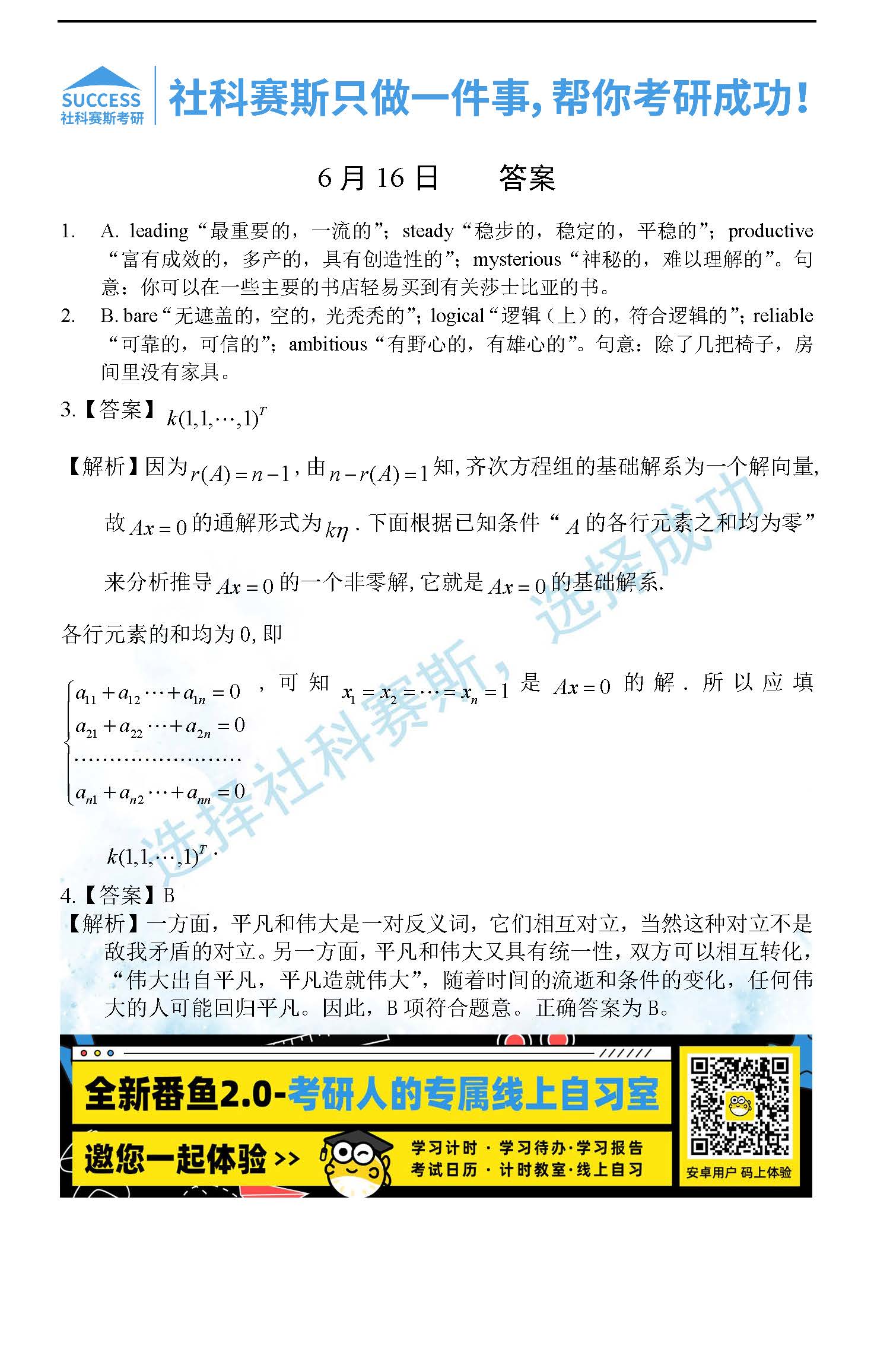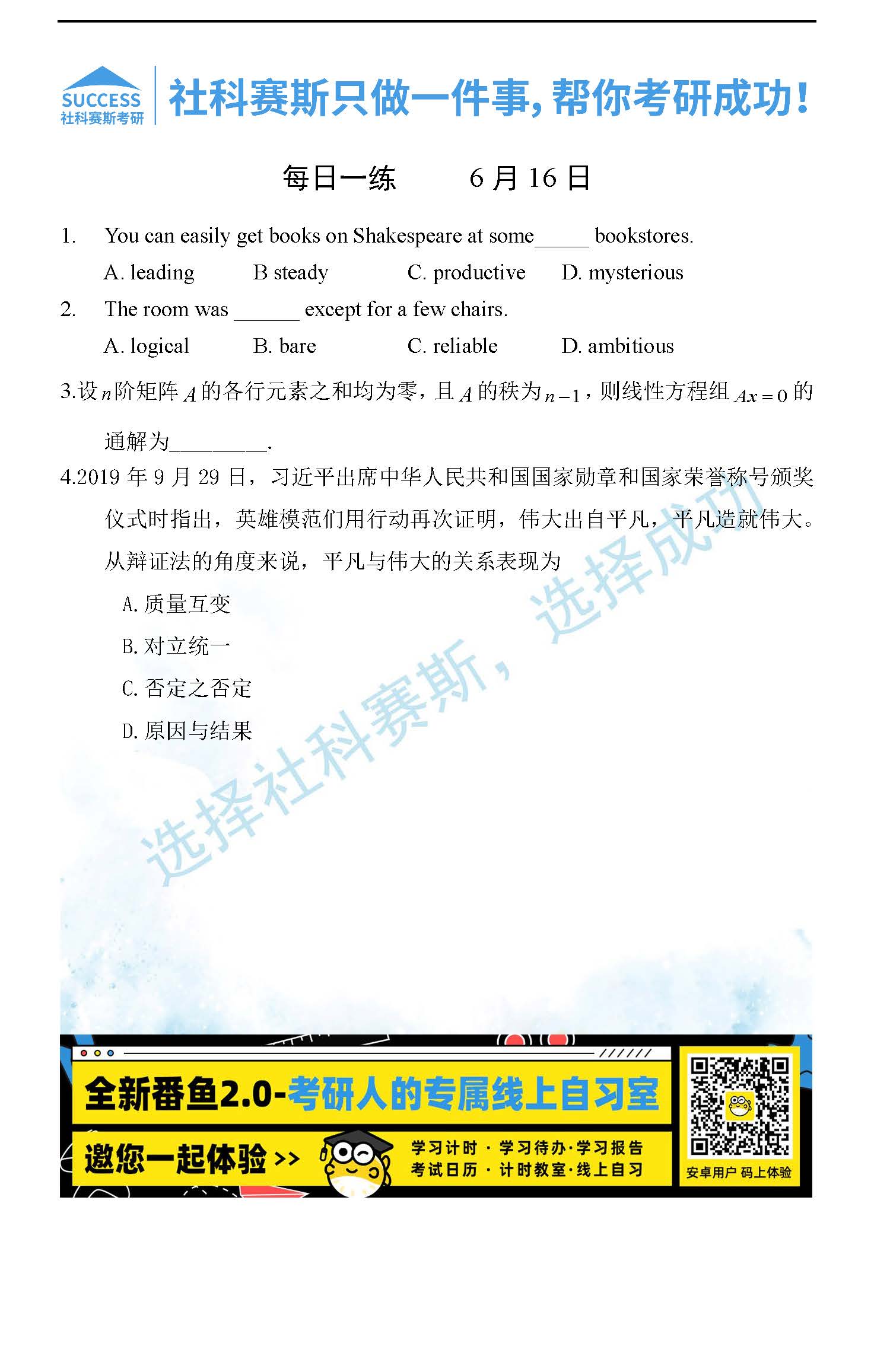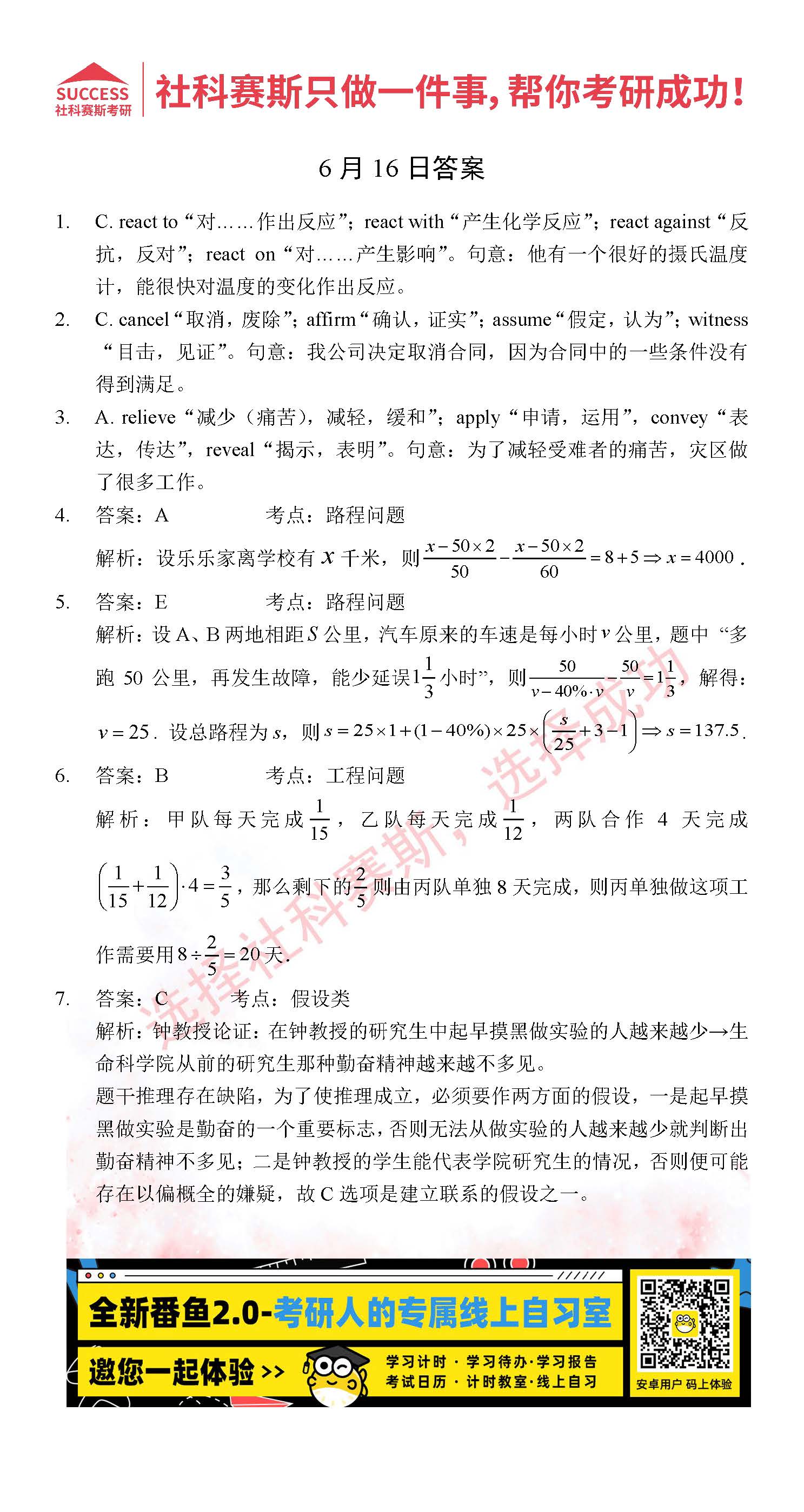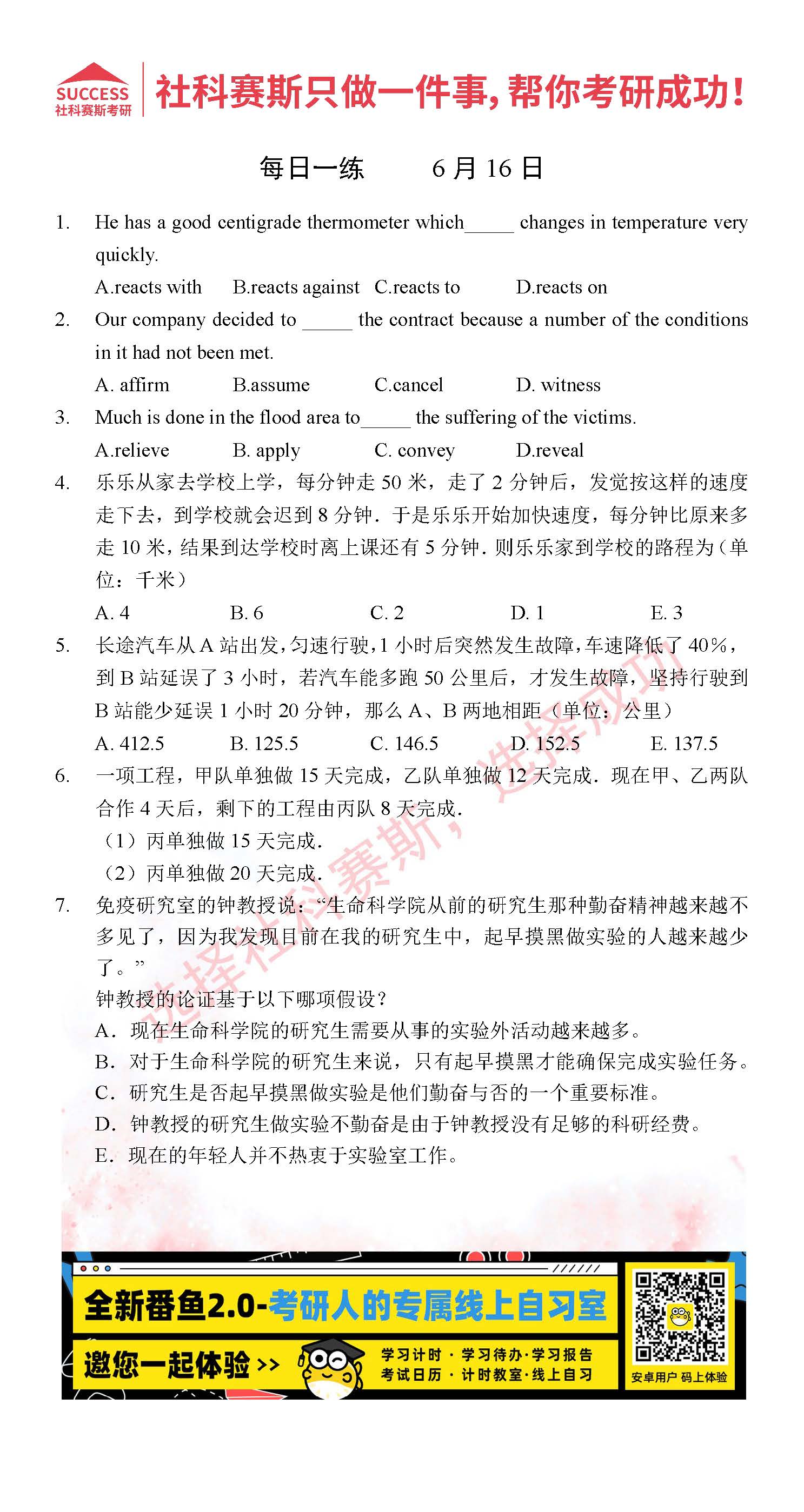 以上就是社科賽斯考研網(wǎng)小編為大家整理2022考研每日一練:6月16日管理類聯(lián)考每日一練及答案的全部內(nèi)容,希望各位考生堅持利用起來,更多每日一練內(nèi)容請持續(xù)關(guān)注社科賽斯考研網(wǎng)。