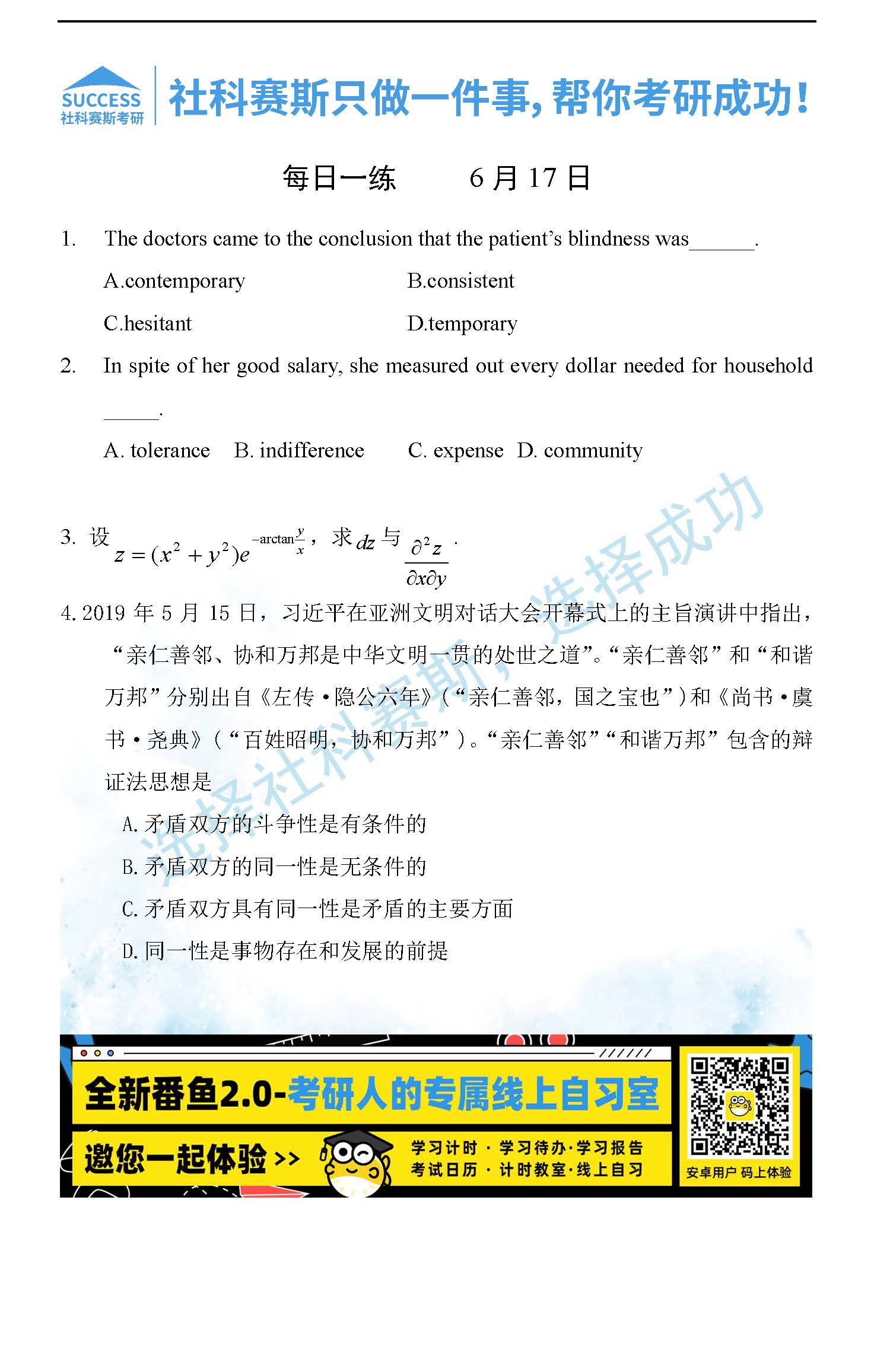 2022考研每日一練:6月17日管理類聯(lián)考每日一練及答案