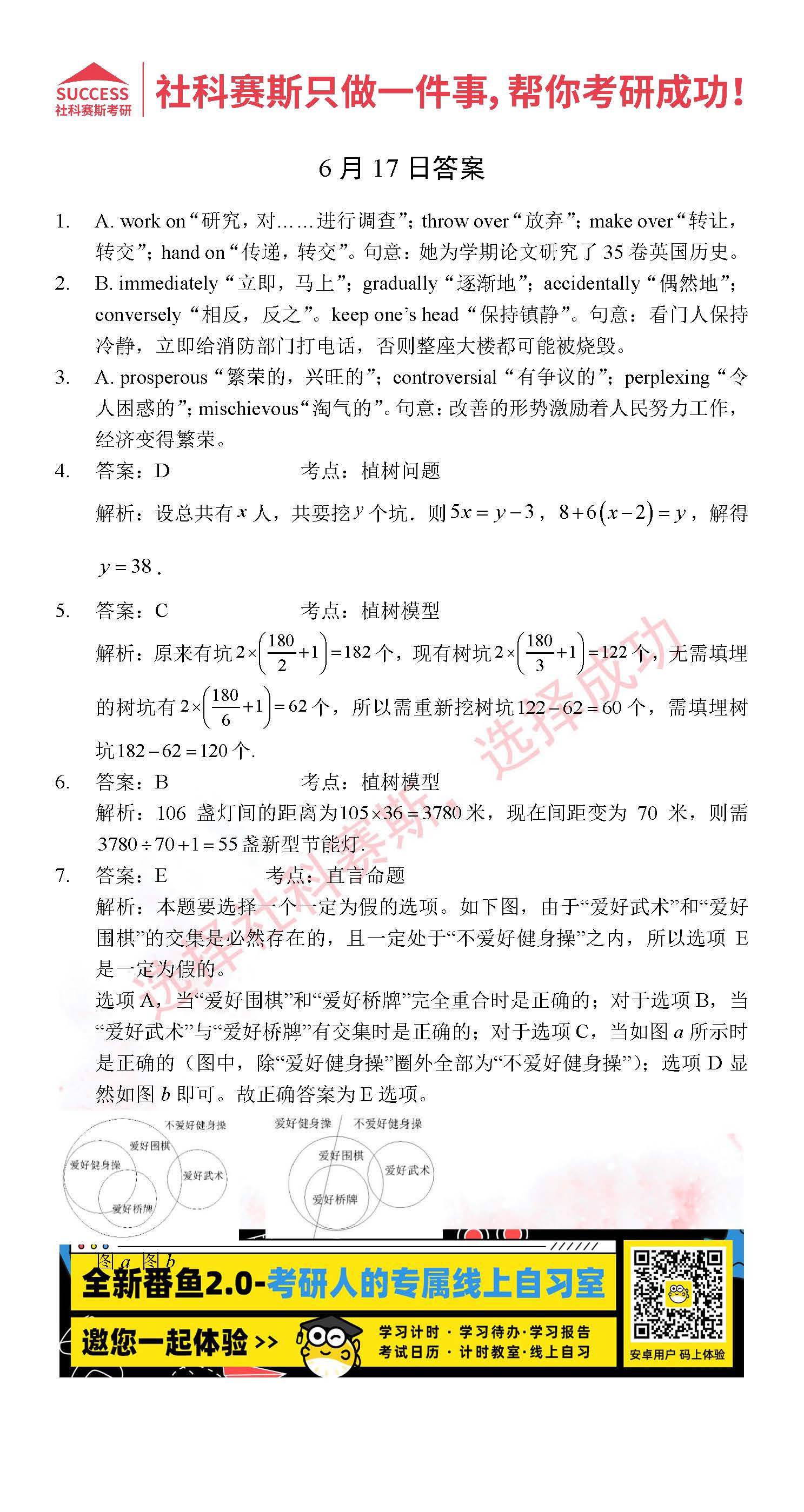 以上就是社科賽斯考研網(wǎng)小編為大家整理2022考研每日一練:6月17日管理類聯(lián)考每日一練及答案的全部內(nèi)容,希望各位考生堅持利用起來,更多每日一練內(nèi)容請持續(xù)關(guān)注社科賽斯考研網(wǎng)。