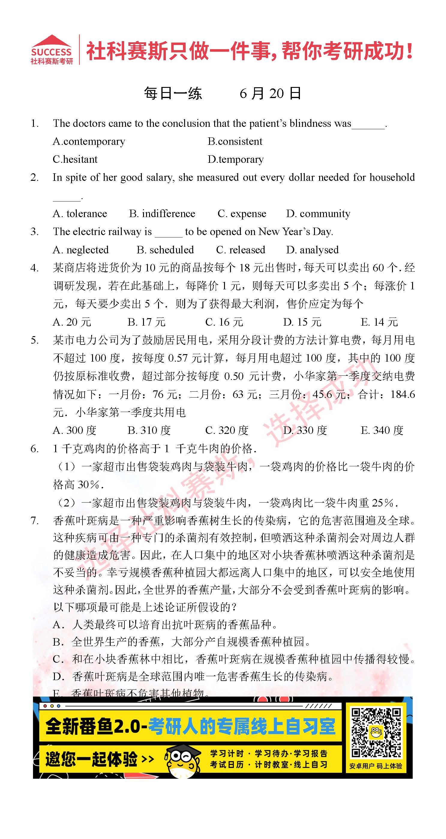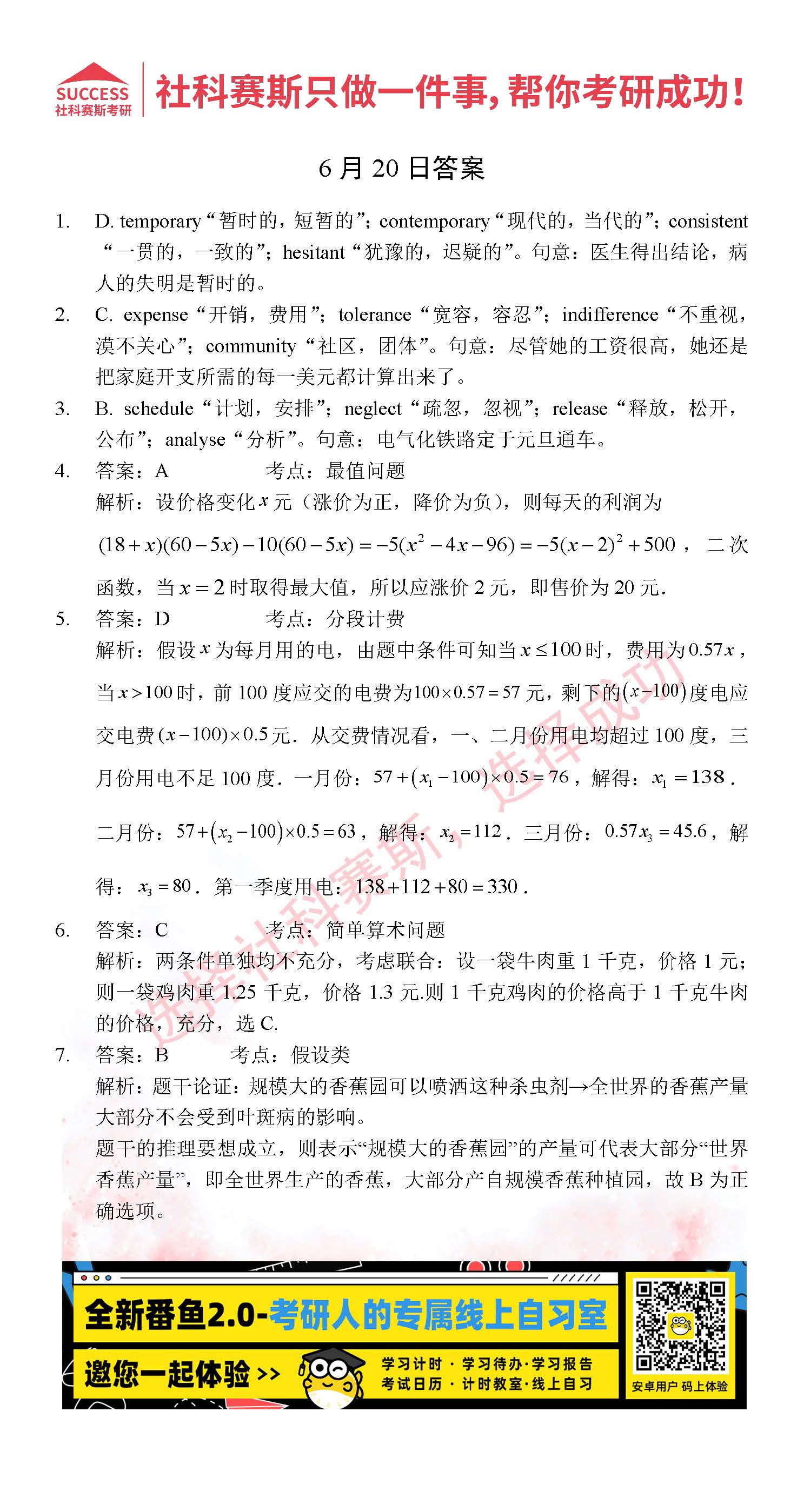 2022考研每日一練:6月20日管理類聯(lián)考每日一練及答案