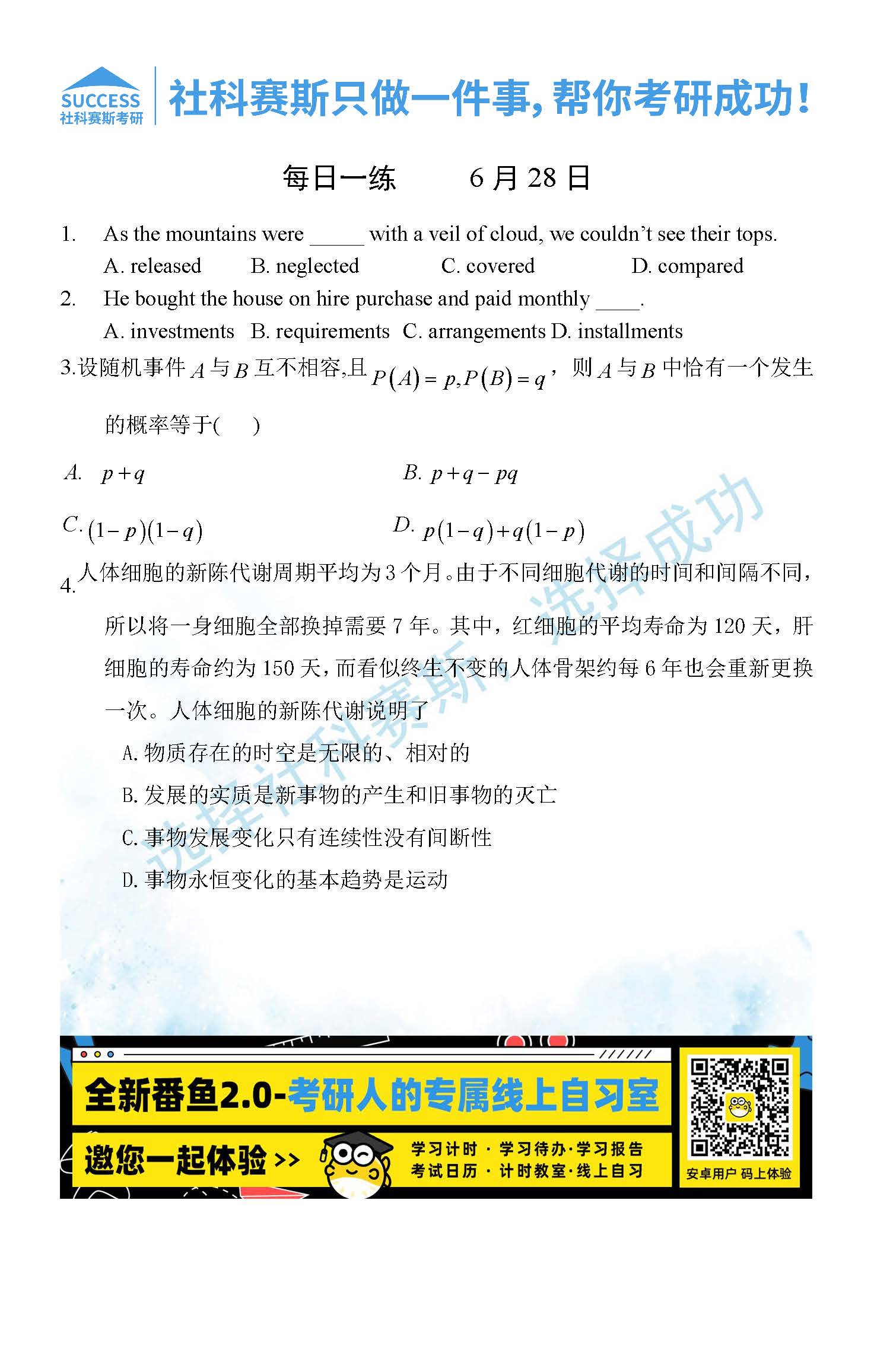2022考研每日一練:6月28日管理類聯(lián)考每日一練及答案