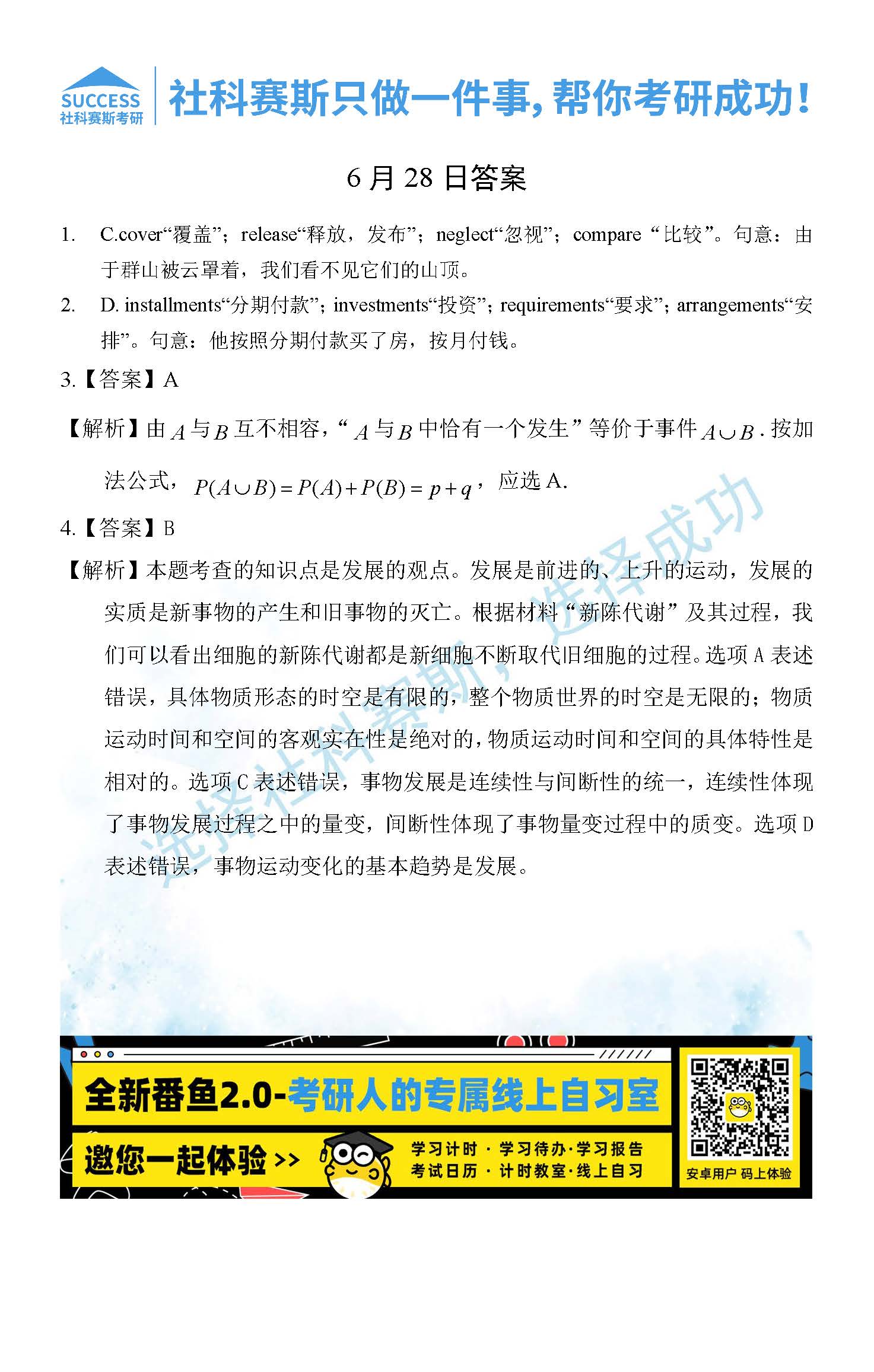 以上就是社科賽斯考研網(wǎng)小編為大家整理2022考研每日一練:6月28日管理類聯(lián)考每日一練及答案的全部內(nèi)容,希望各位考生堅持利用起來,更多每日一練內(nèi)容請持續(xù)關(guān)注社科賽斯考研網(wǎng)。