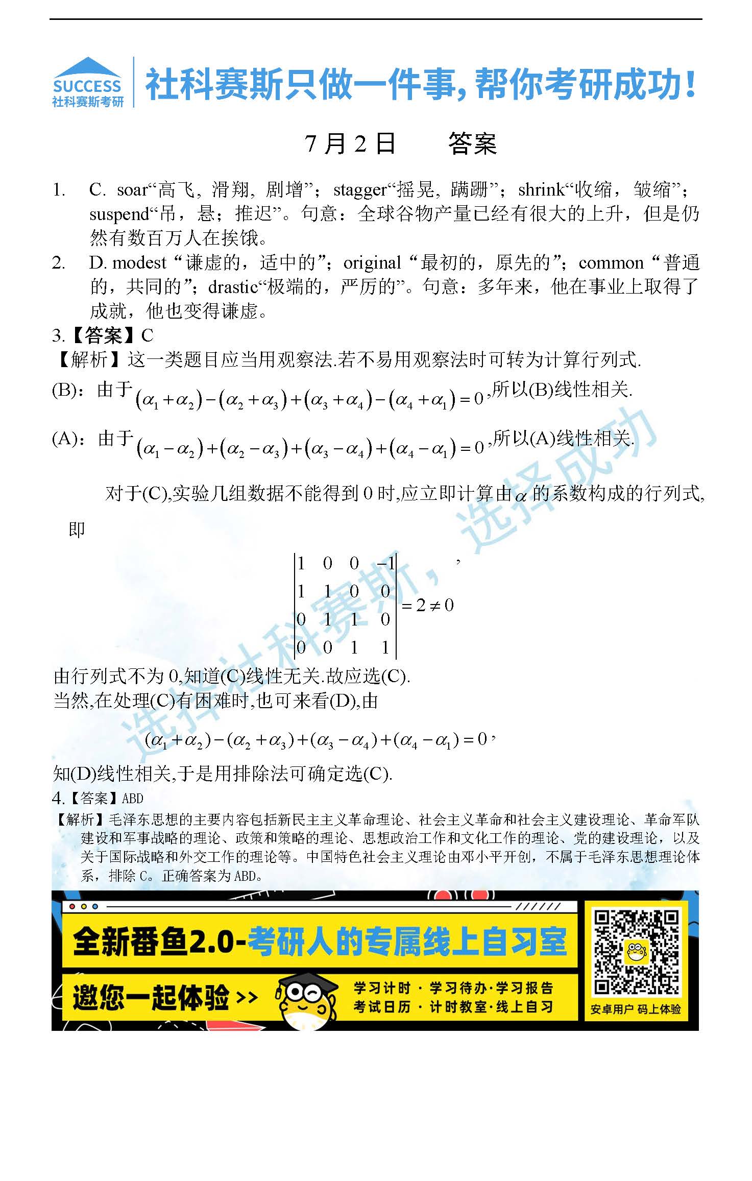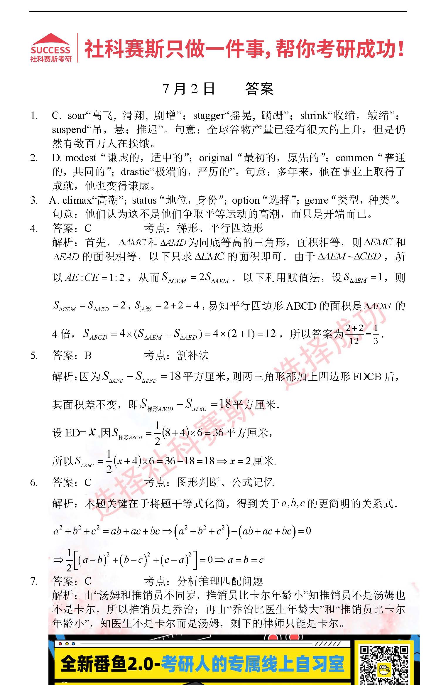 以上就是社科賽斯考研網(wǎng)小編為大家整理2022考研每日一練:7月2日管理類聯(lián)考每日一練及答案的全部內(nèi)容,希望各位考生堅持利用起來,更多每日一練內(nèi)容請持續(xù)關注社科賽斯考研網(wǎng)。