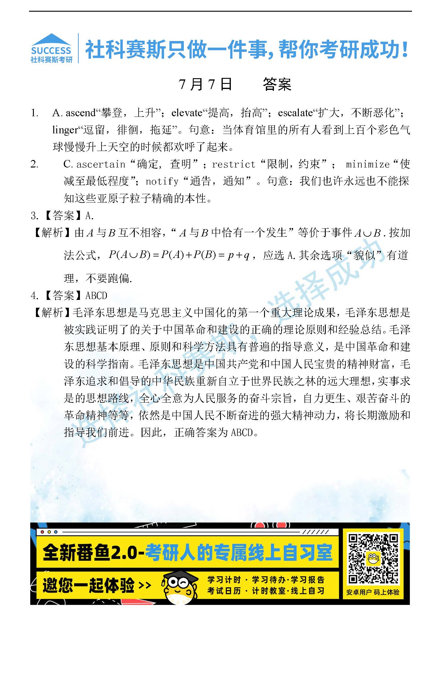 2022考研每日一練:7月7日管理類聯(lián)考每日一練及答案