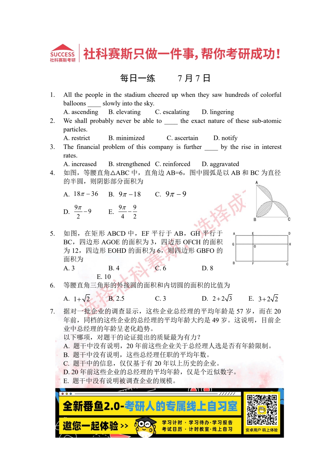 以上就是社科賽斯考研網(wǎng)小編為大家整理2022考研每日一練:7月7日管理類聯(lián)考每日一練及答案的全部?jī)?nèi)容,希望各位考生堅(jiān)持利用起來(lái),更多每日一練內(nèi)容請(qǐng)持續(xù)關(guān)注社科賽斯考研網(wǎng)。