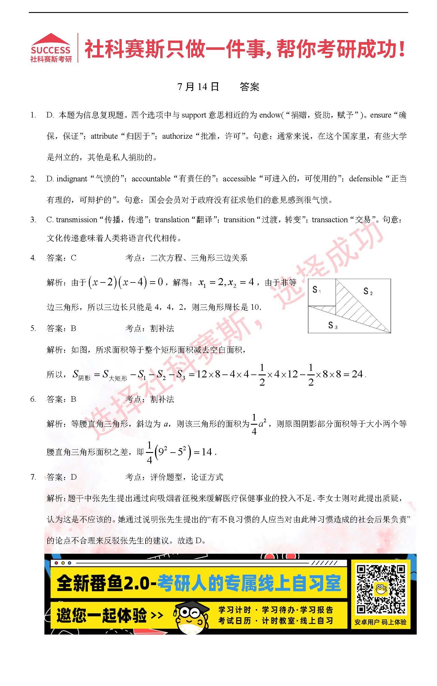 以上就是社科賽斯考研網(wǎng)小編為大家整理2022考研每日一練:7月14日管理類聯(lián)考每日一練及答案的全部內(nèi)容,希望各位考生堅持利用起來,更多每日一練內(nèi)容請持續(xù)關(guān)注社科賽斯考研網(wǎng)