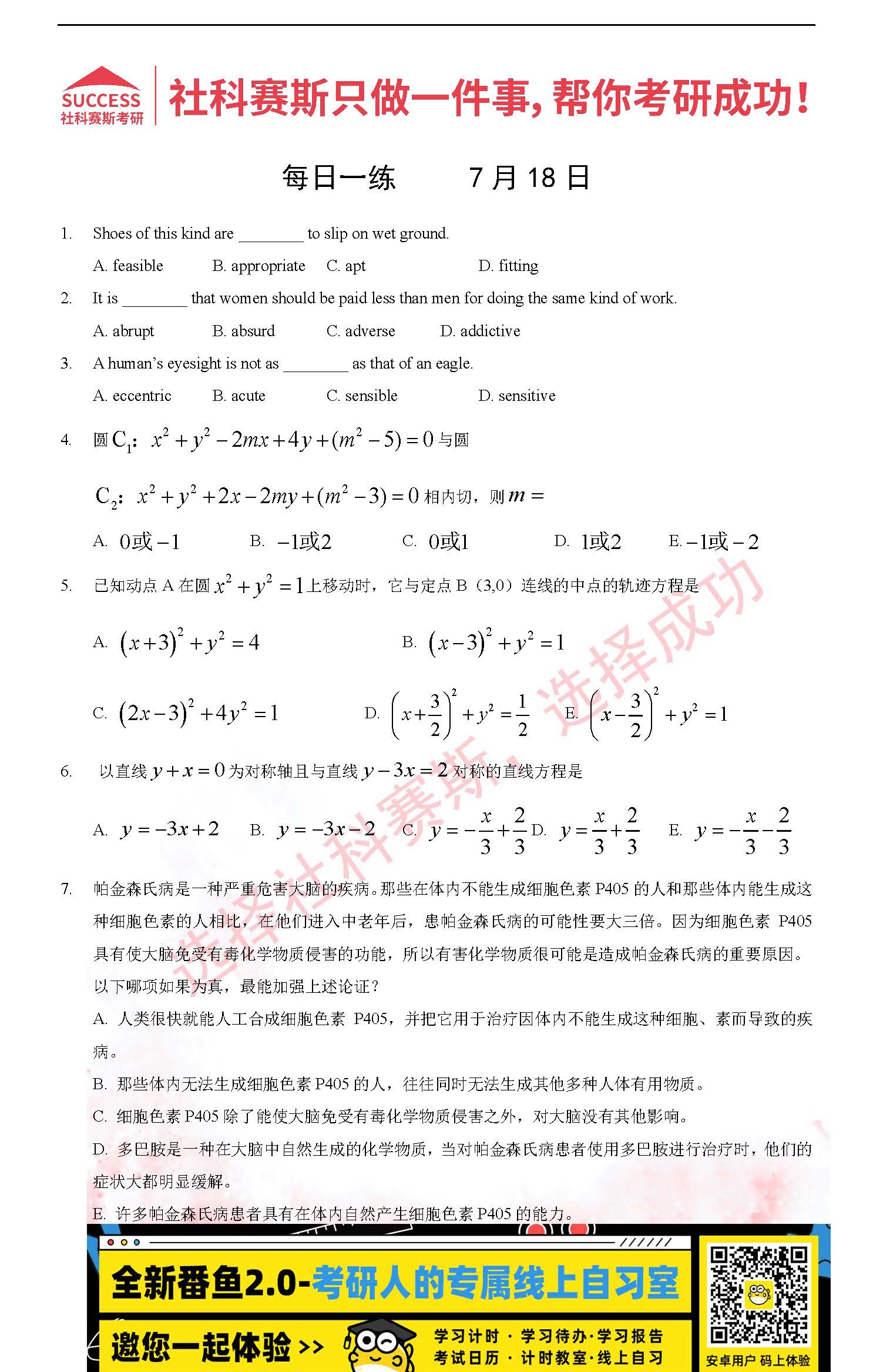 2022考研每日一練:7月18日管理類聯(lián)考每日一練及答案