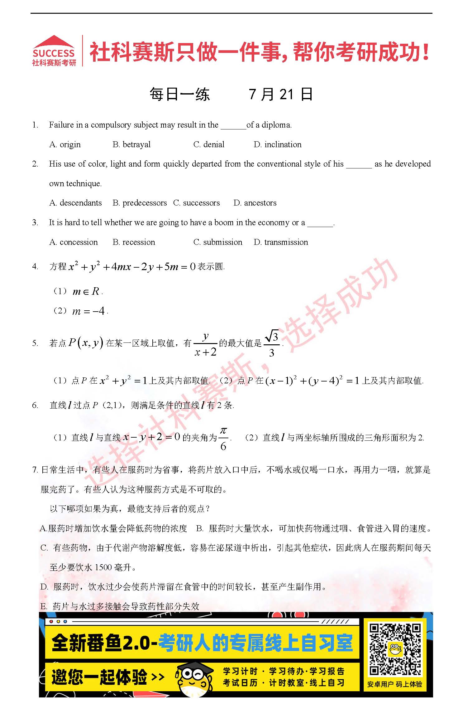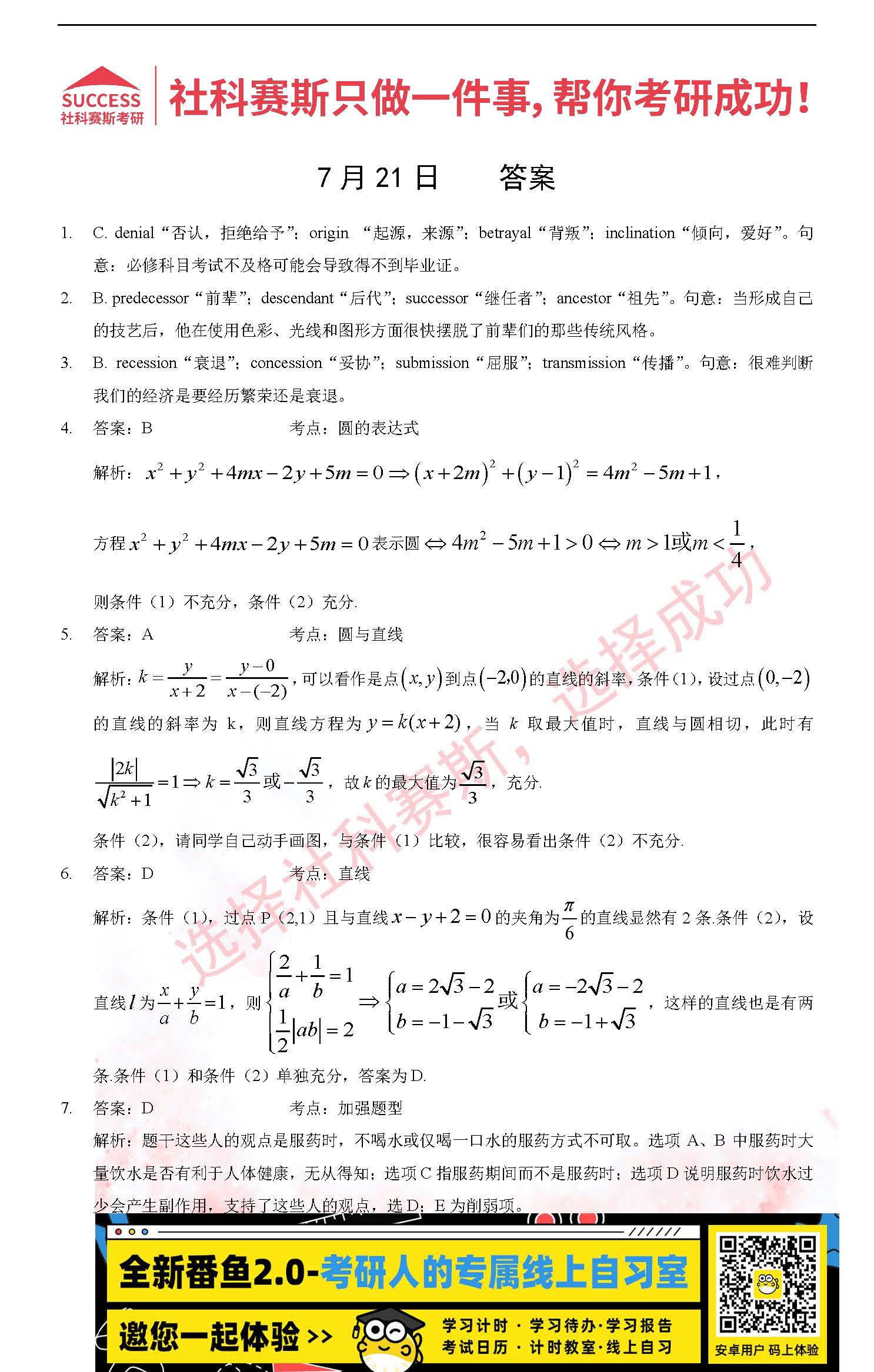 2022考研每日一練:7月21日管理類聯(lián)考每日一練及答案