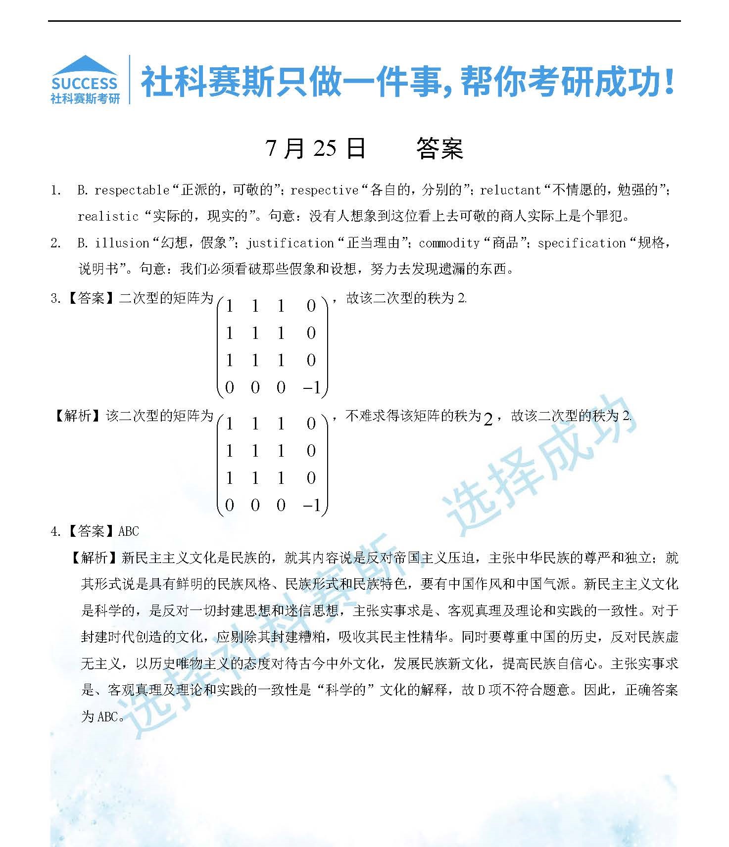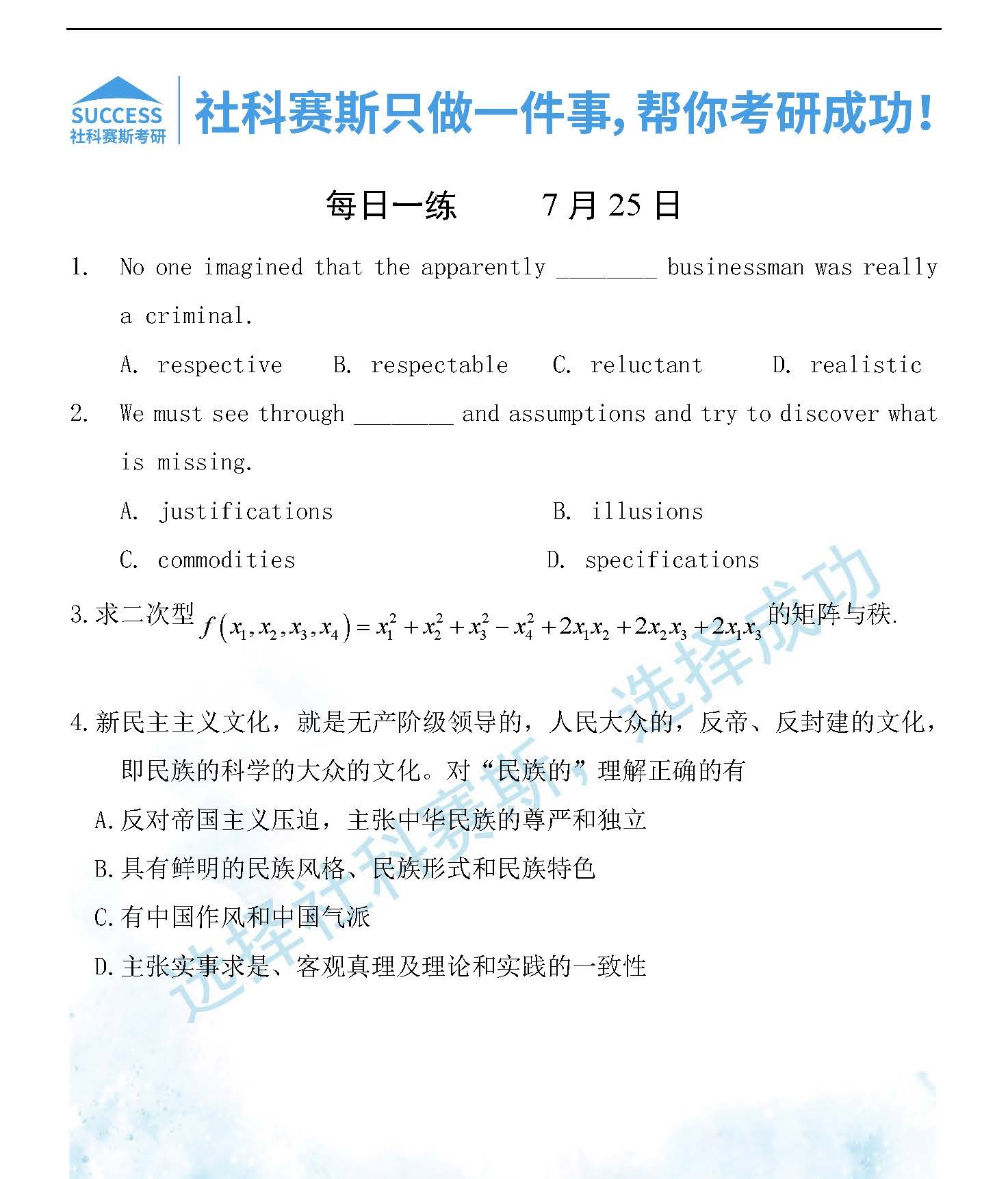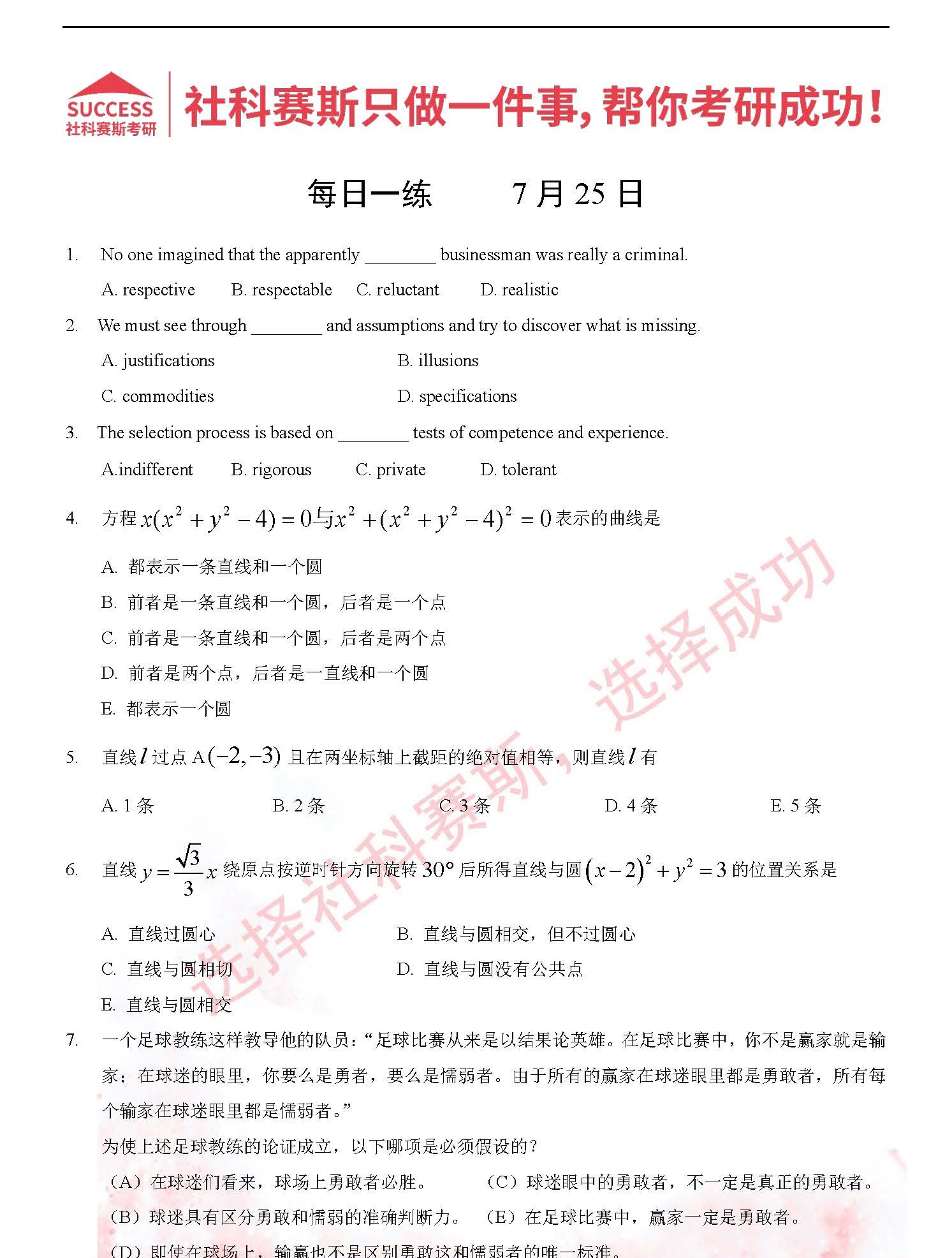 以上就是社科賽斯考研網小編為大家整理2022考研每日一練:7月25日管理類聯(lián)考每日一練及答案的全部內容,希望各位考生堅持利用起來,更多每日一練內容請持續(xù)關注社科賽斯考研網。