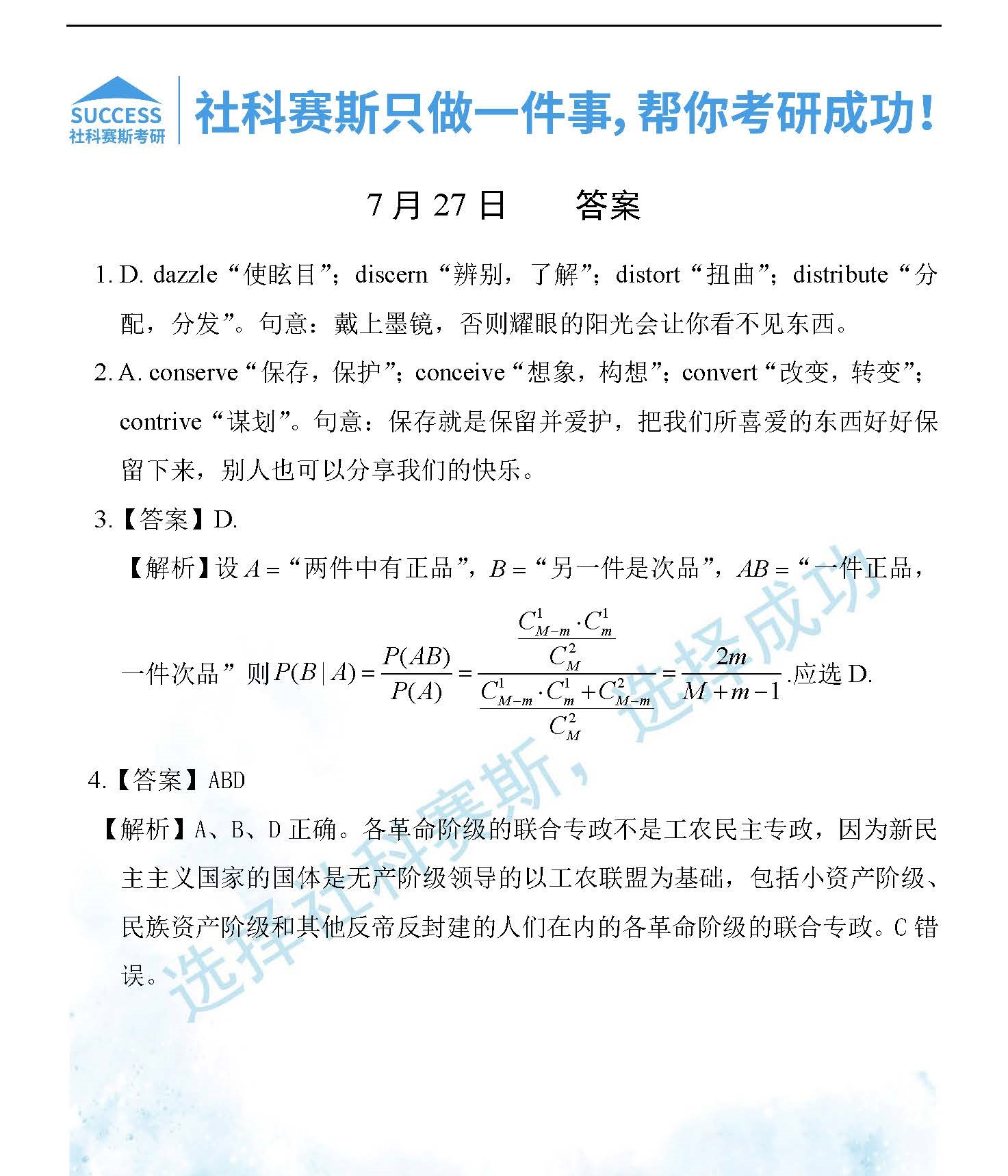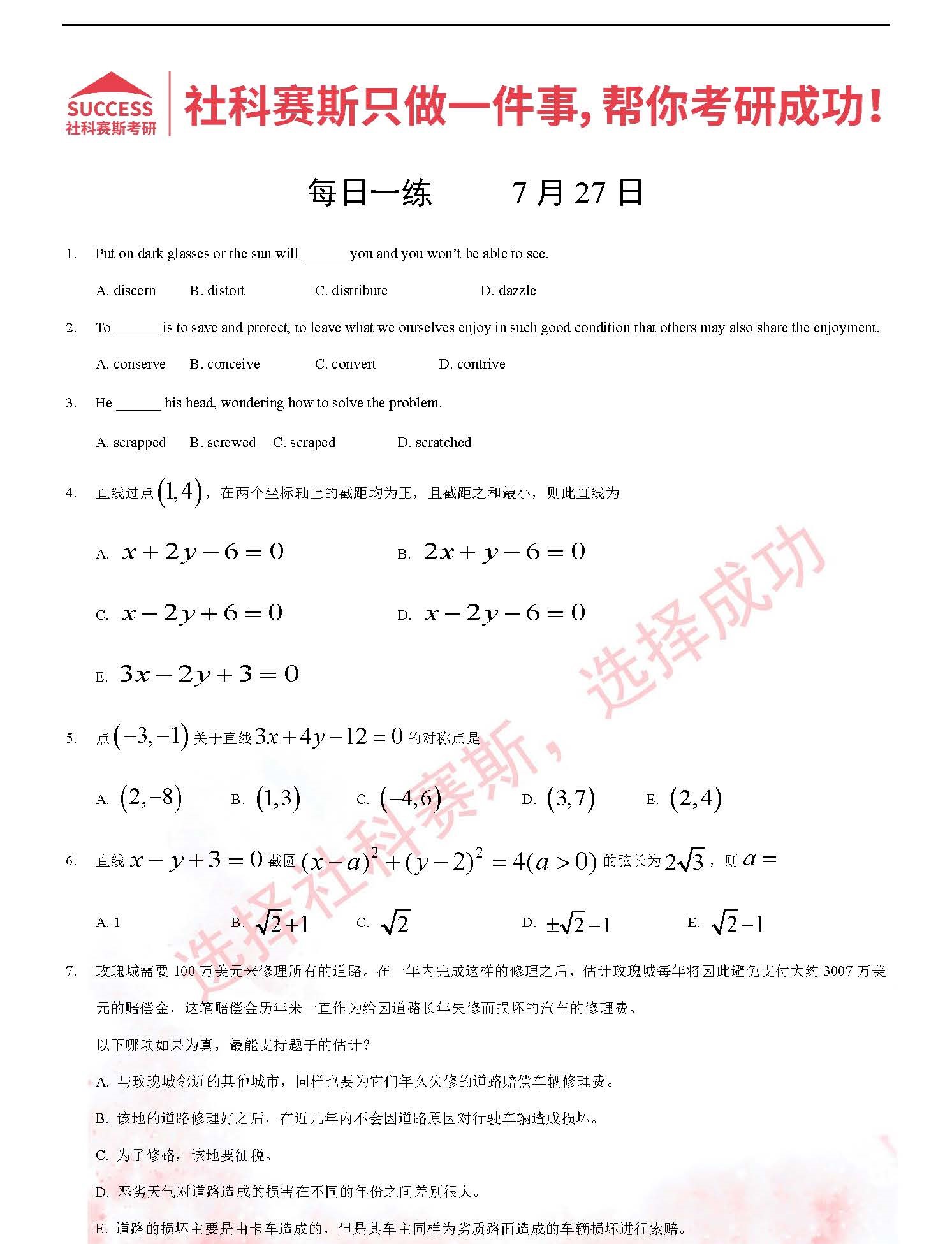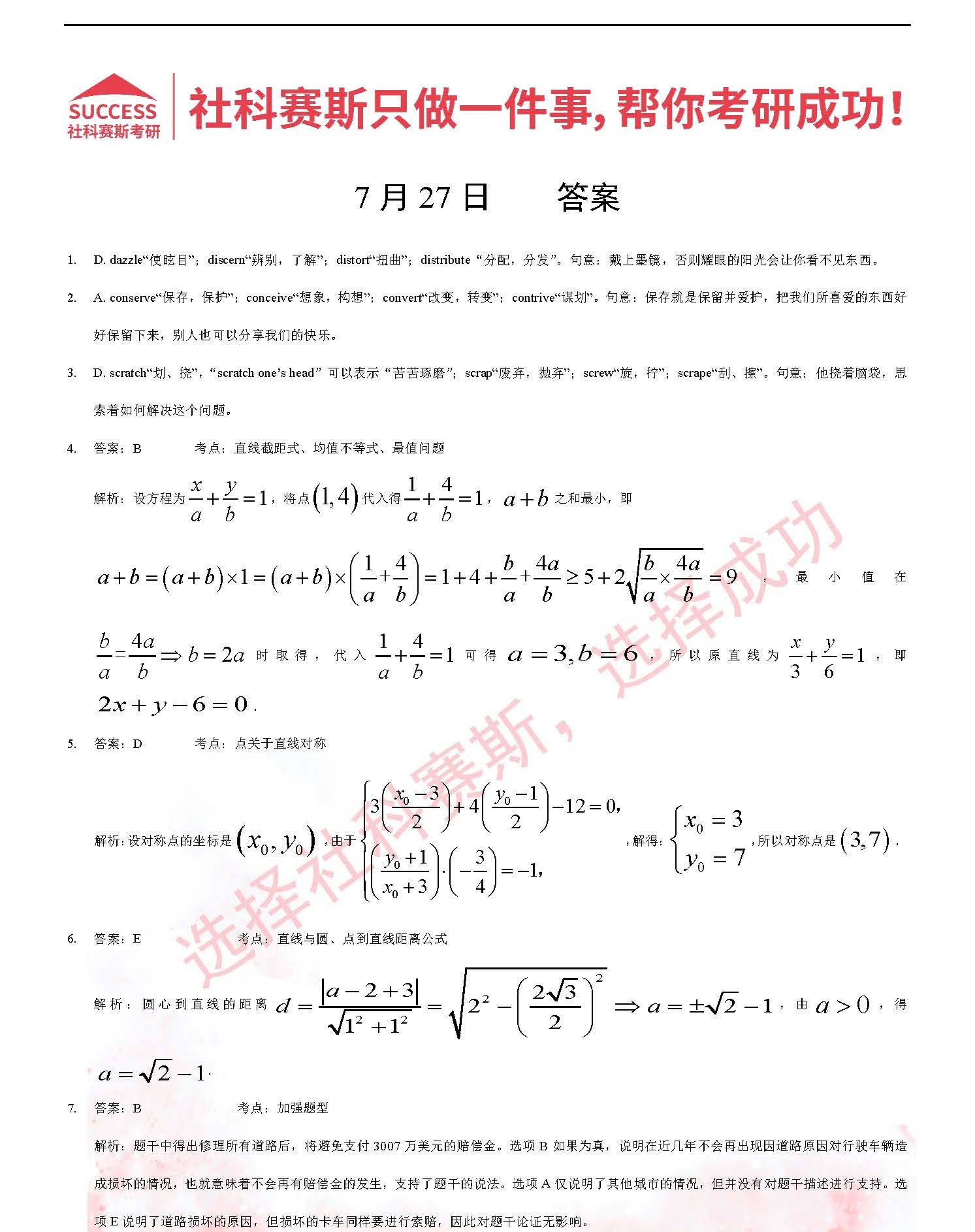 以上就是社科賽斯考研網(wǎng)小編為大家整理2022考研每日一練:7月27日管理類聯(lián)考每日一練及答案的全部內(nèi)容,希望各位考生堅持利用起來,更多每日一練內(nèi)容請持續(xù)關(guān)注社科賽斯考研網(wǎng)