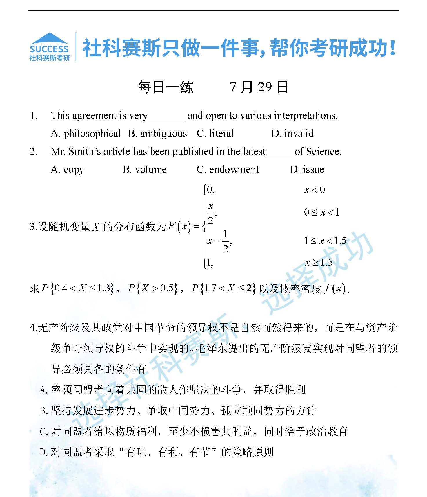 考研是一場持久戰(zhàn),保持良好的學習習慣,是能確保復習高效的關(guān)鍵。今天社科賽斯考研網(wǎng)小編整理了“2022考研每日一練:7月29日管理類聯(lián)考每日一練及答案”的內(nèi)容,希望能對廣大考生有所幫助。