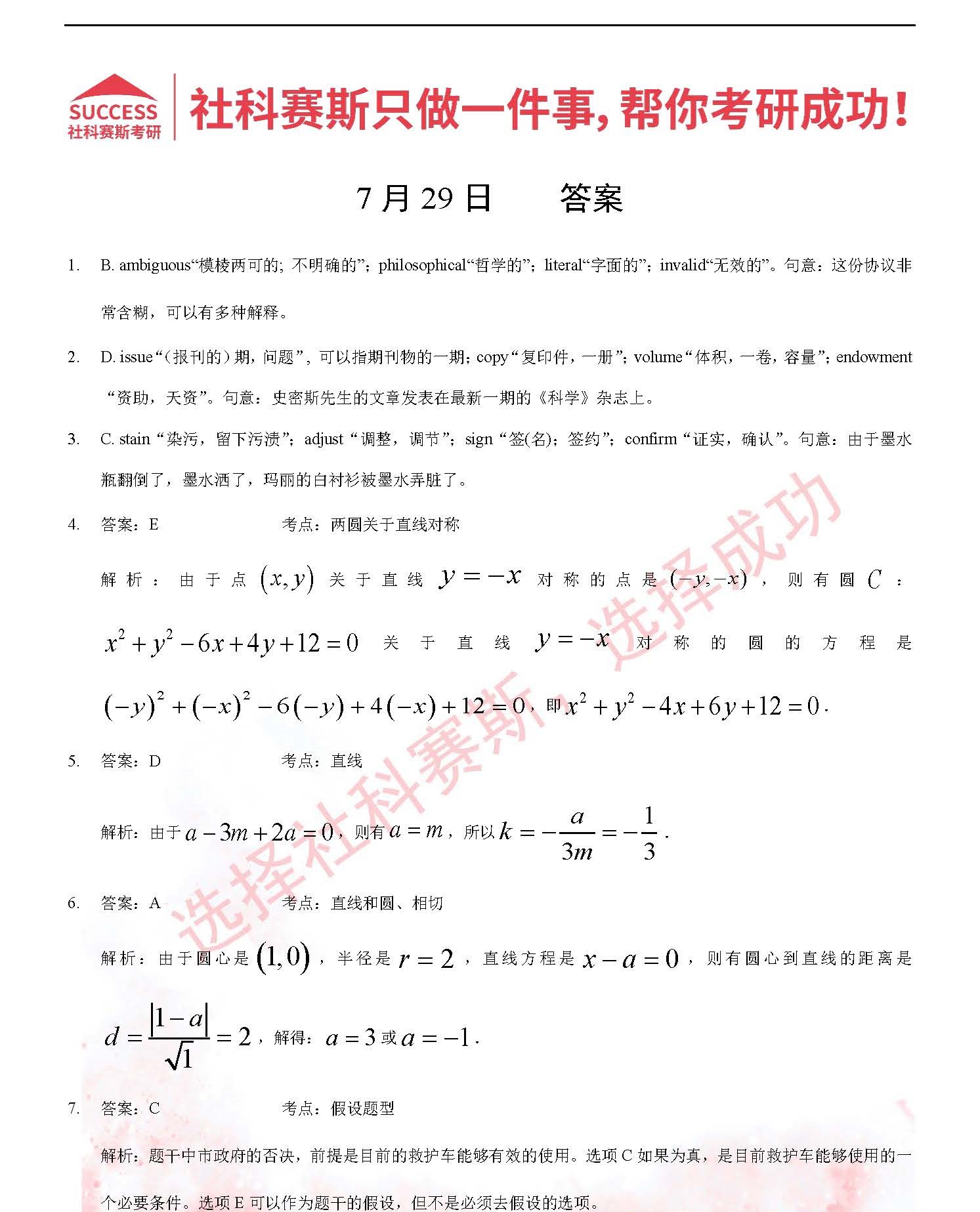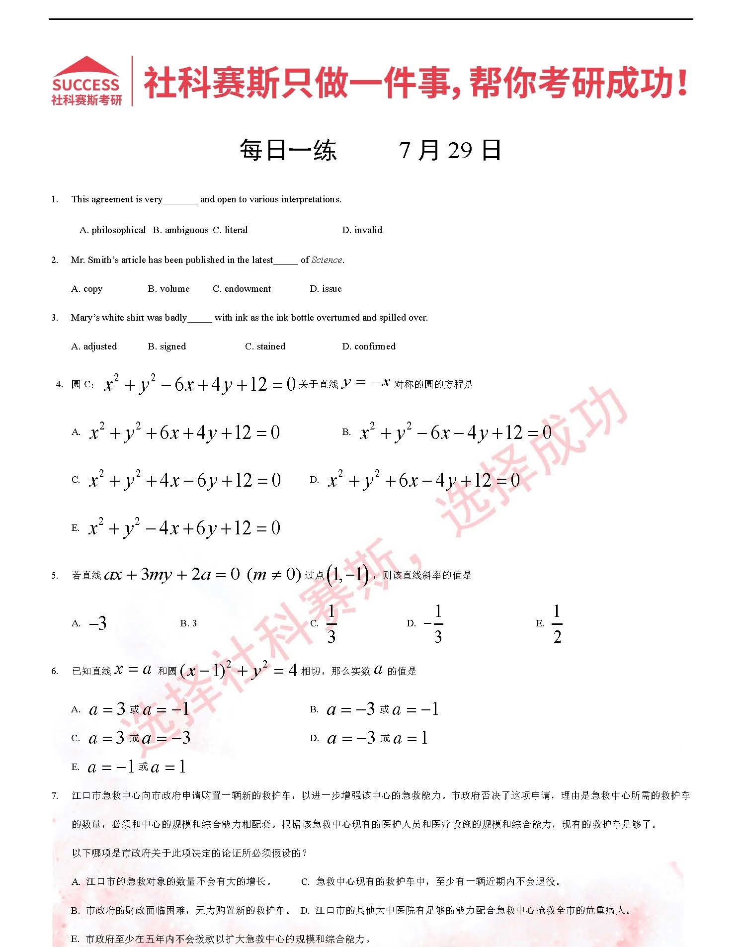 以上就是社科賽斯考研網(wǎng)小編為大家整理2022考研每日一練:7月29日管理類聯(lián)考每日一練及答案的全部內(nèi)容,希望各位考生堅持利用起來,更多每日一練內(nèi)容請持續(xù)關(guān)注社科賽斯考研網(wǎng)。