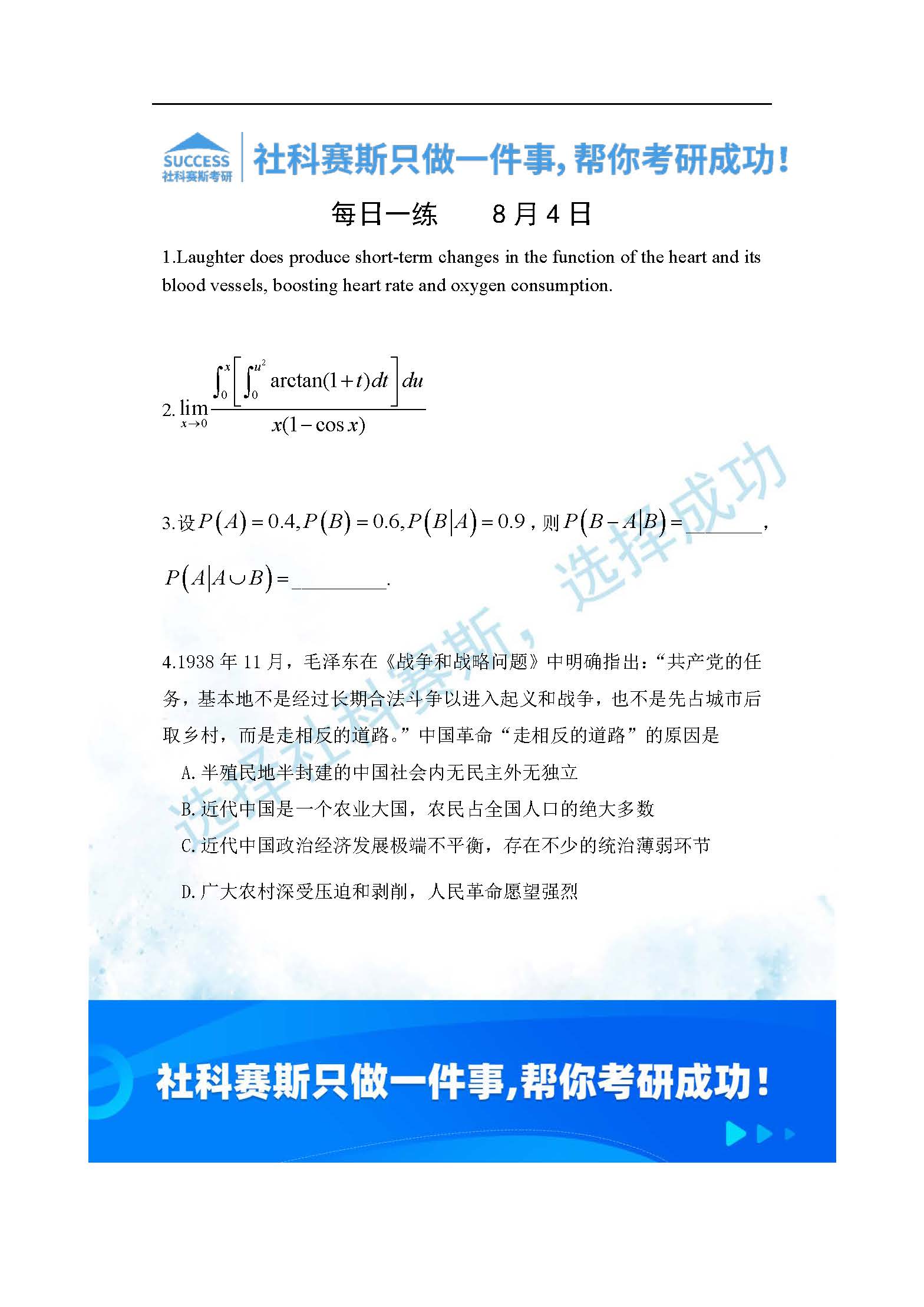 以上就是社科賽斯考研網(wǎng)小編為大家整理2022考研每日一練:8月4日管理類聯(lián)考每日一練及答案的全部?jī)?nèi)容,希望各位考生堅(jiān)持利用起來,更多每日一練內(nèi)容請(qǐng)持續(xù)關(guān)注社科賽斯考研網(wǎng)。