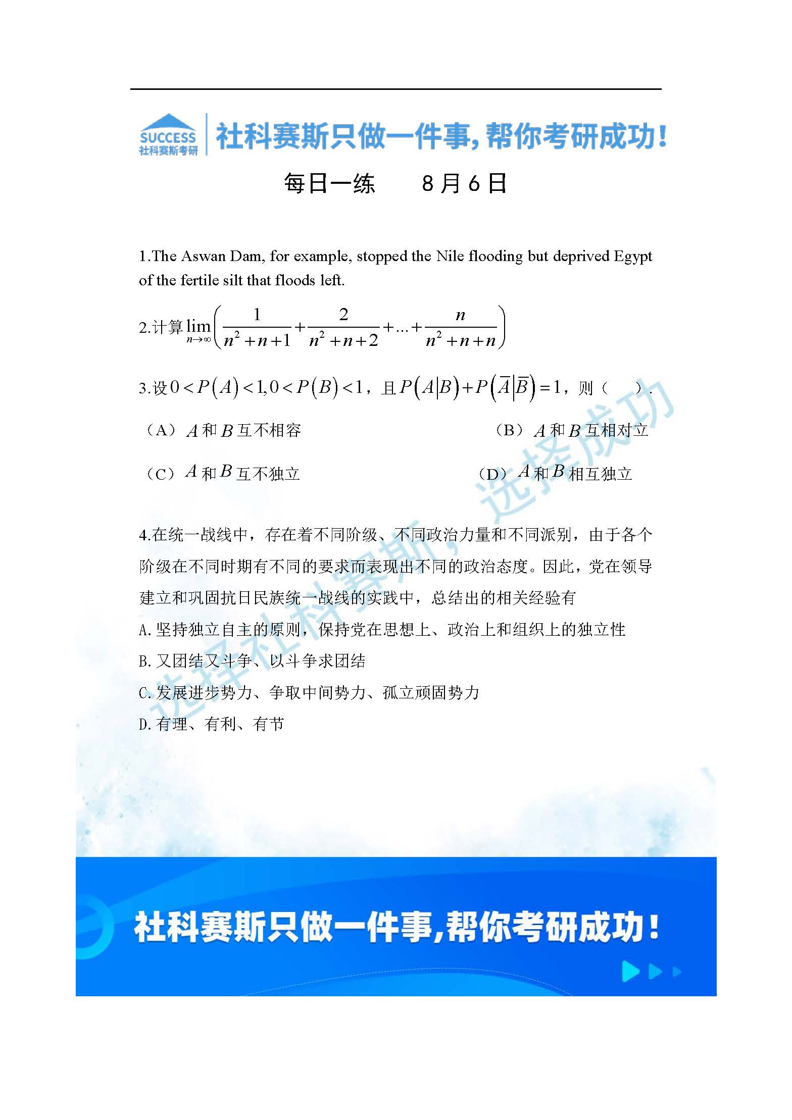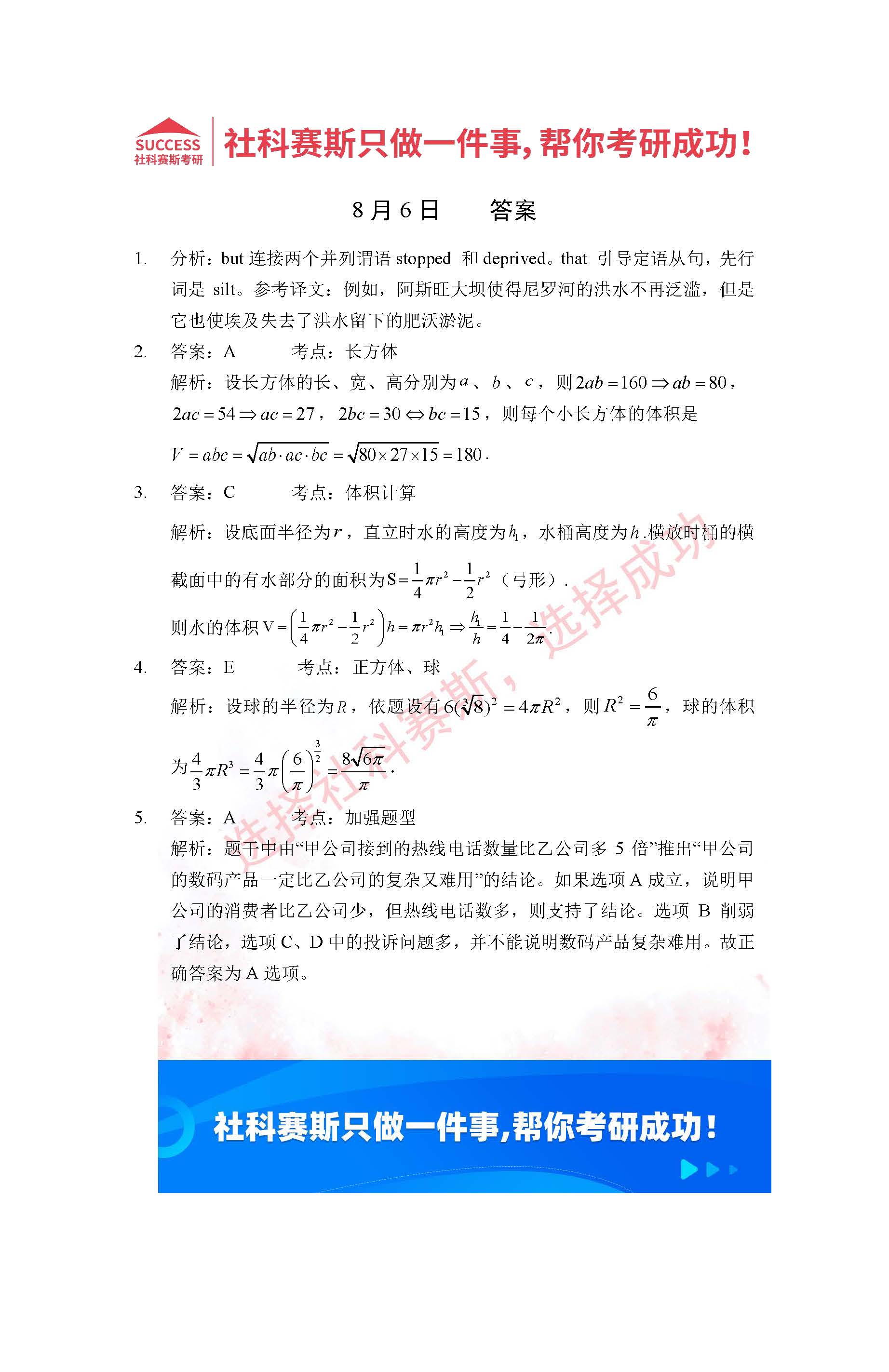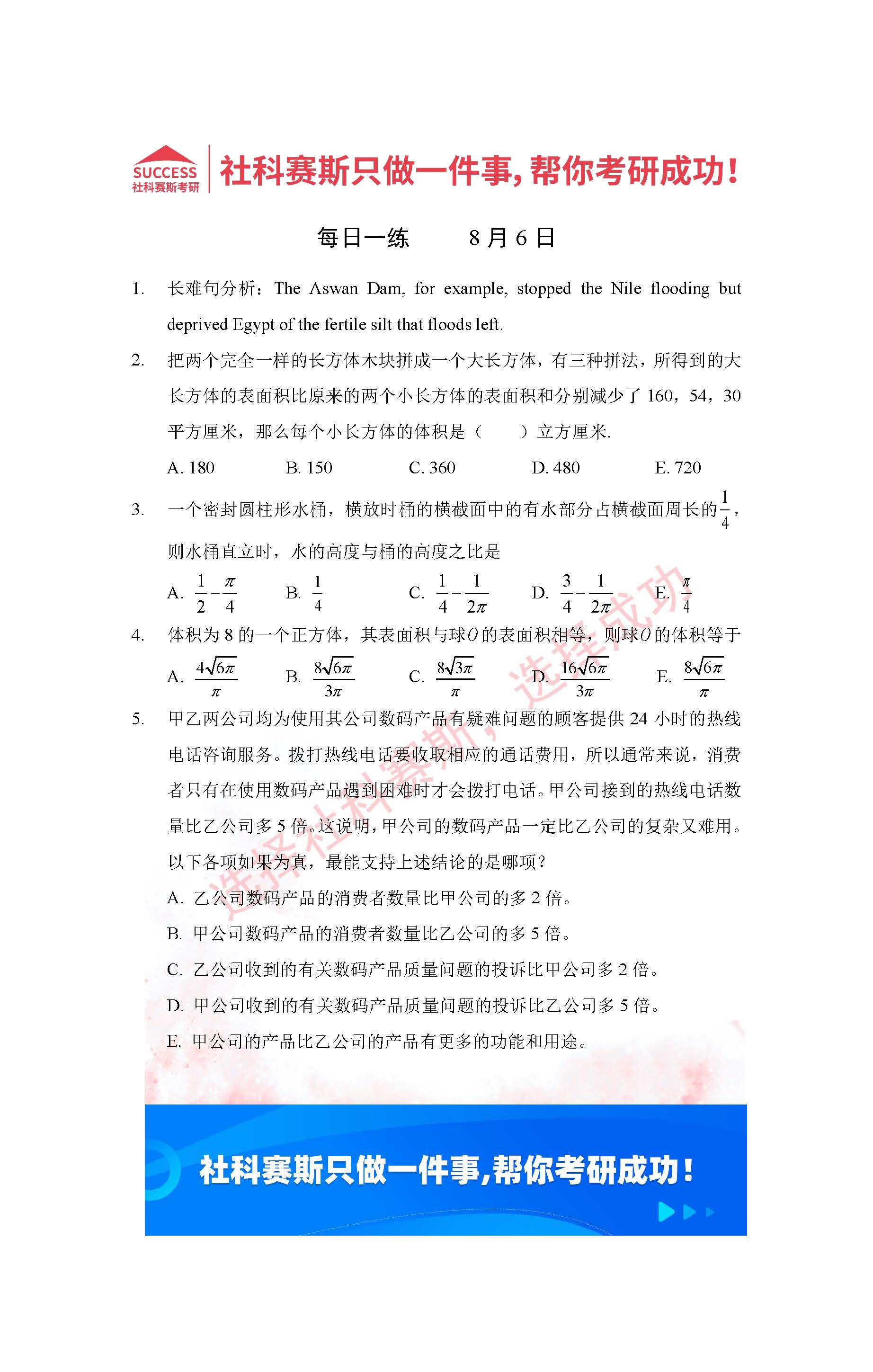 以上就是社科賽斯考研網(wǎng)小編為大家整理2022考研每日一練:8月6日管理類聯(lián)考每日一練及答案的全部?jī)?nèi)容,希望各位考生堅(jiān)持利用起來(lái),更多每日一練內(nèi)容請(qǐng)持續(xù)關(guān)注社科賽斯考研網(wǎng)。