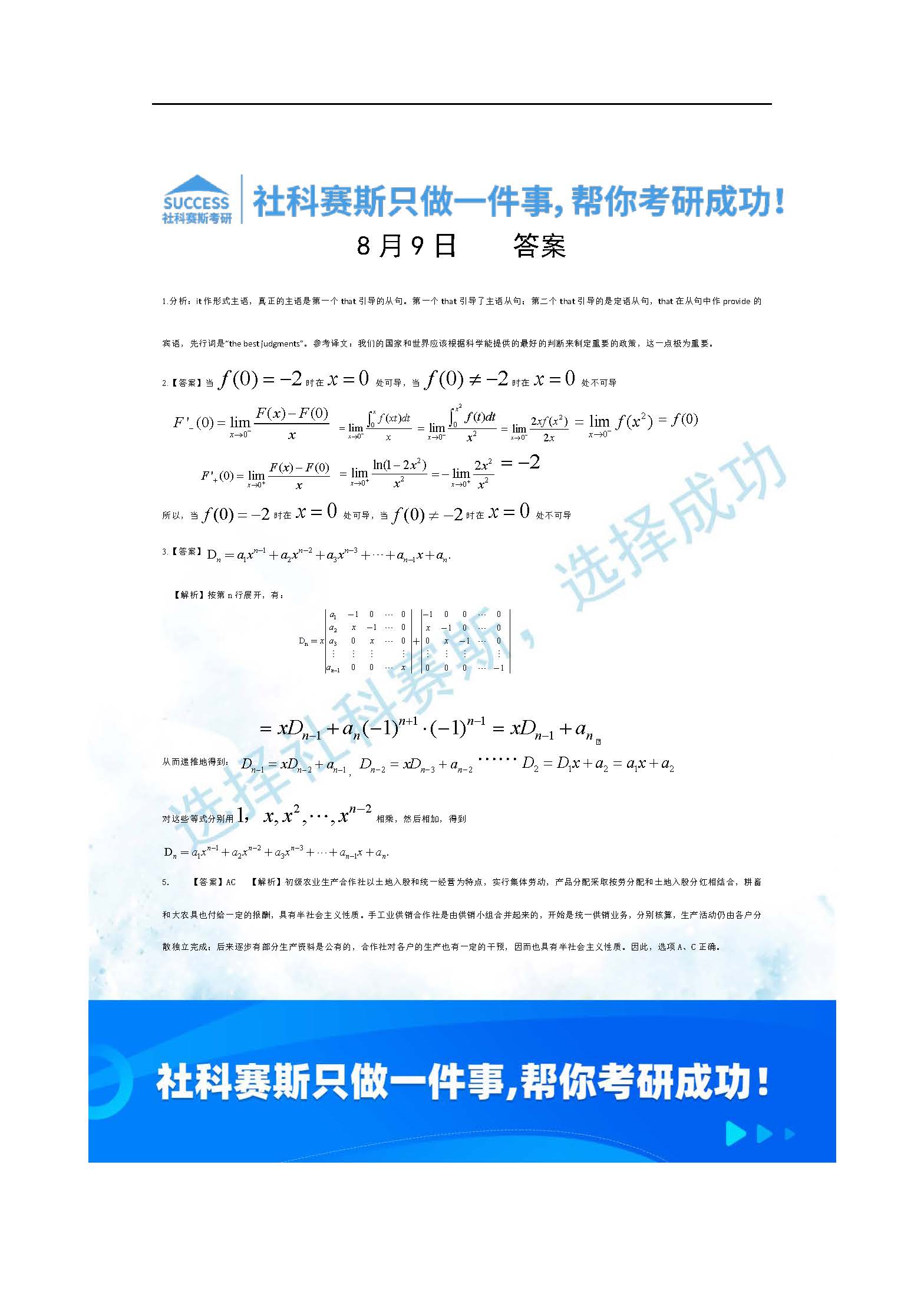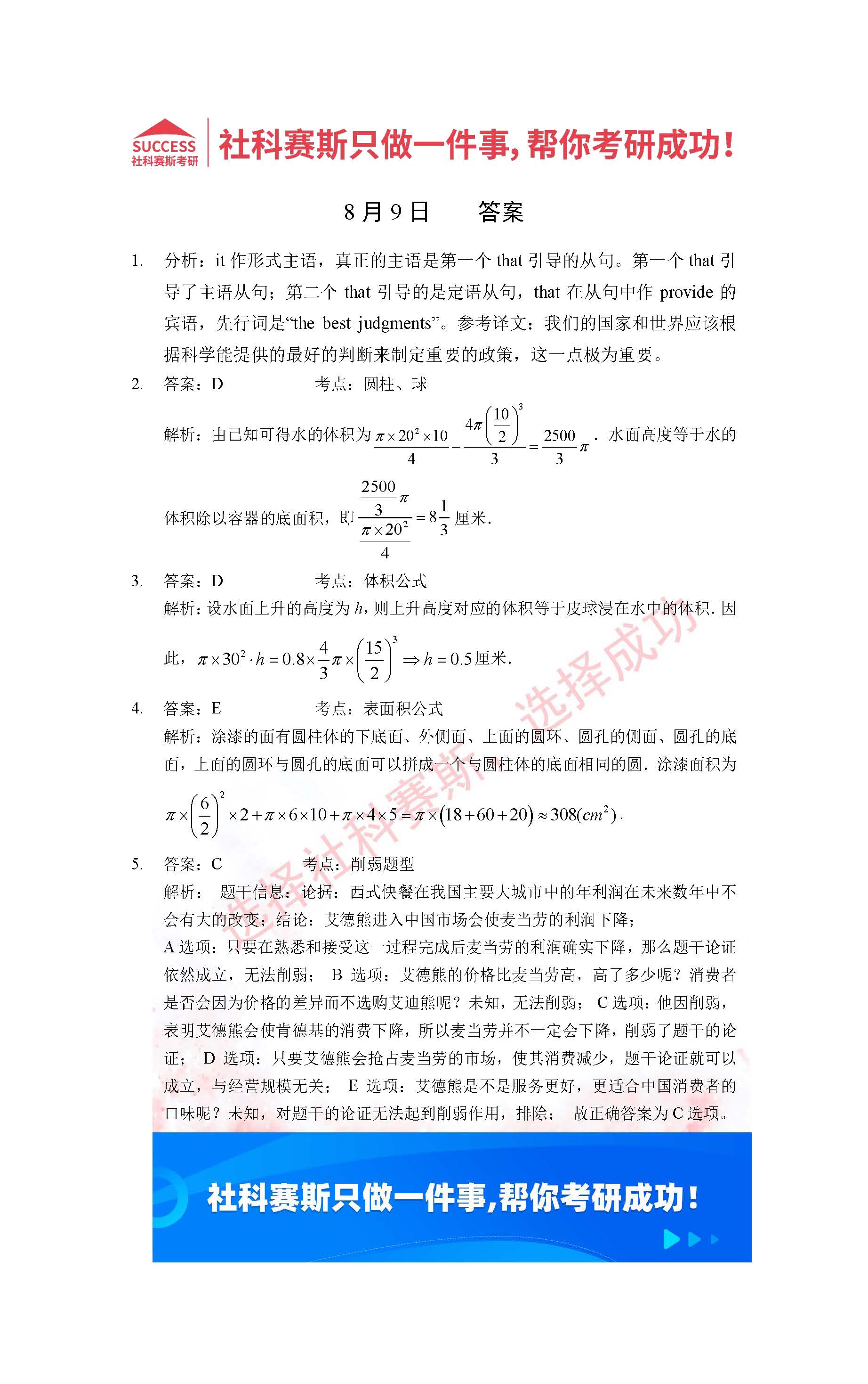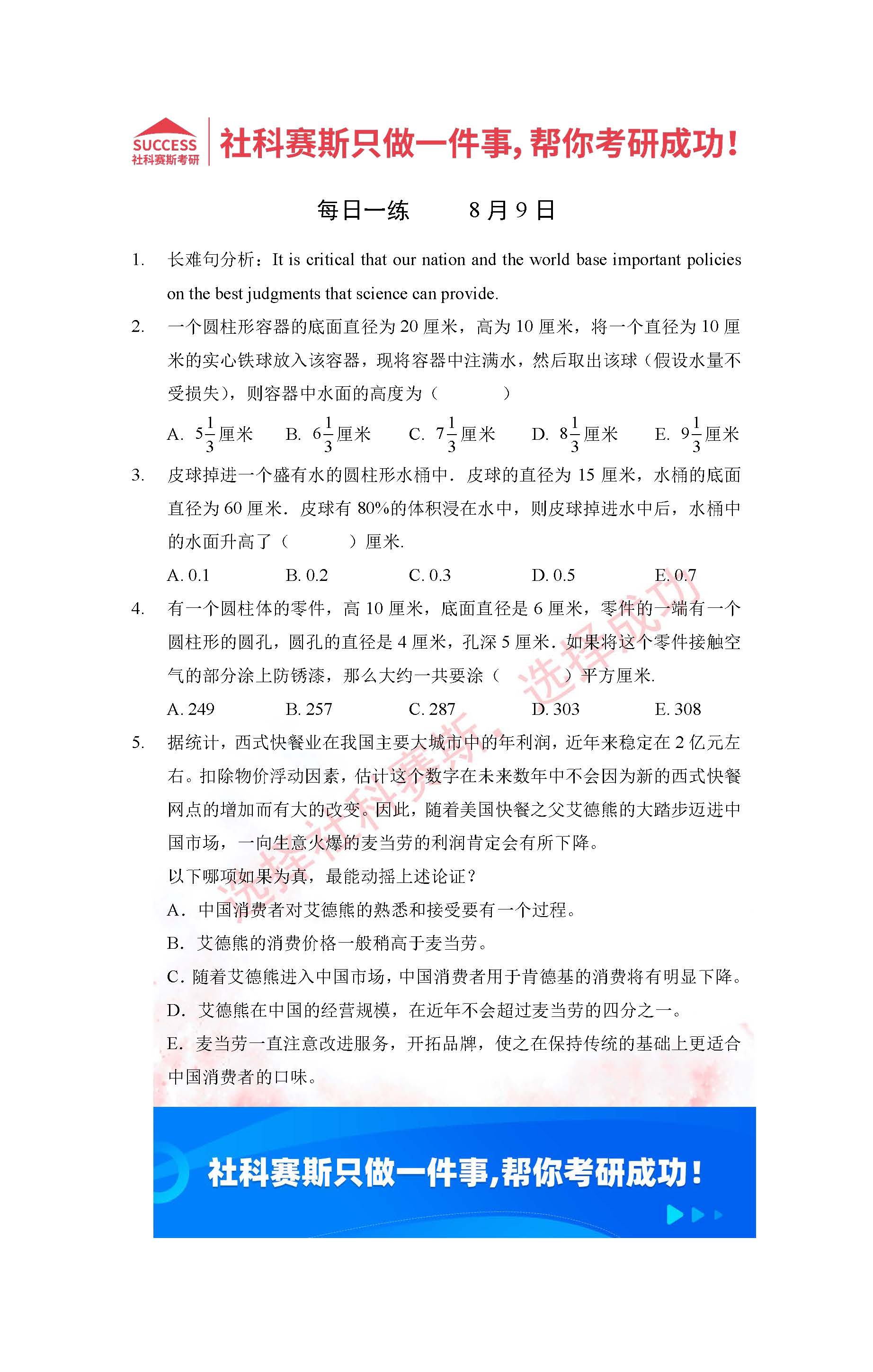 以上就是社科賽斯考研網(wǎng)小編為大家整理2022考研每日一練:8月9日管理類聯(lián)考每日一練及答案的全部內(nèi)容,希望各位考生堅持利用起來,更多每日一練內(nèi)容請持續(xù)關(guān)注社科賽斯考研網(wǎng)。