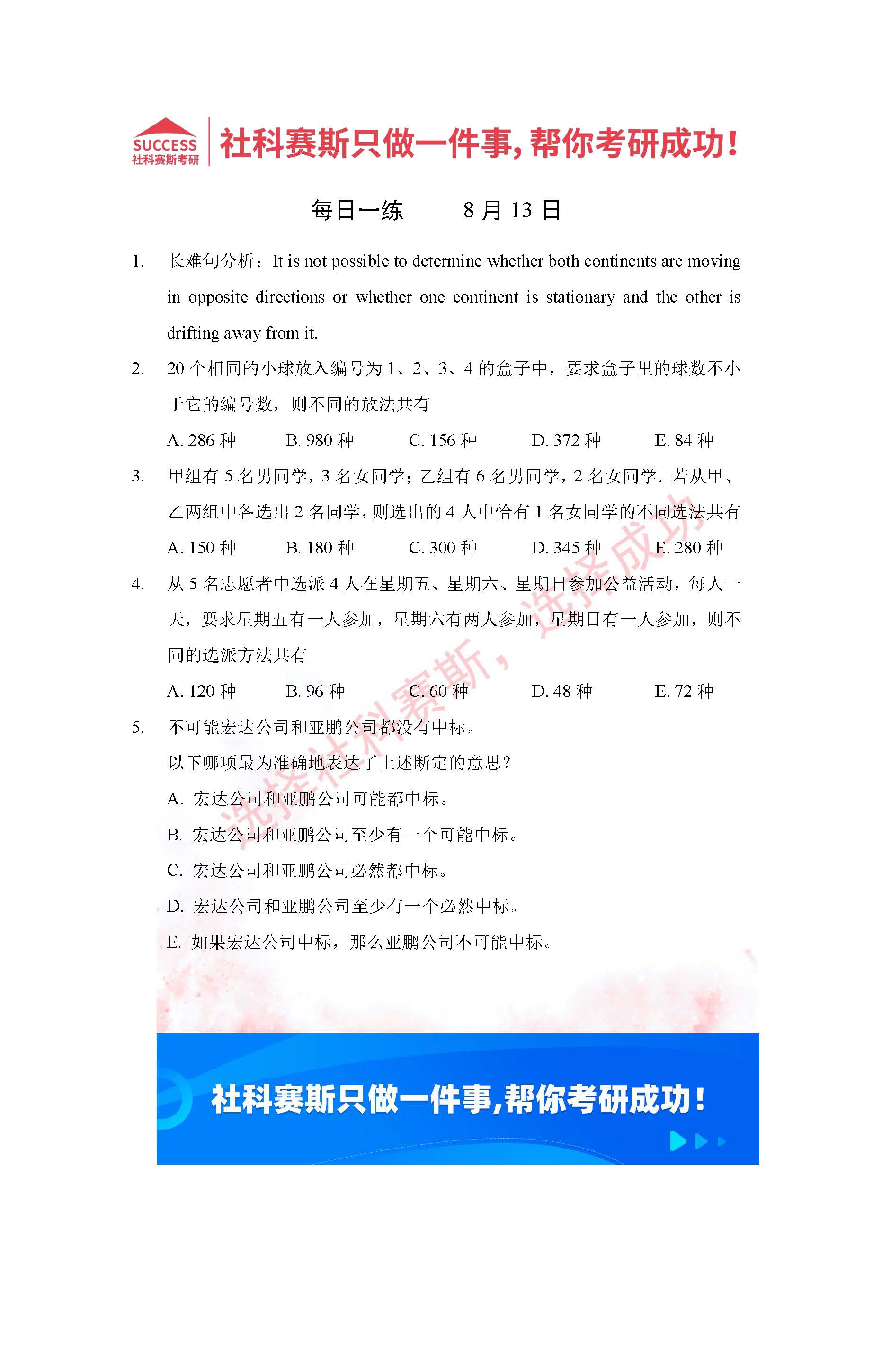 2022考研每日一練:8月13日管理類聯(lián)考每日一練及答案