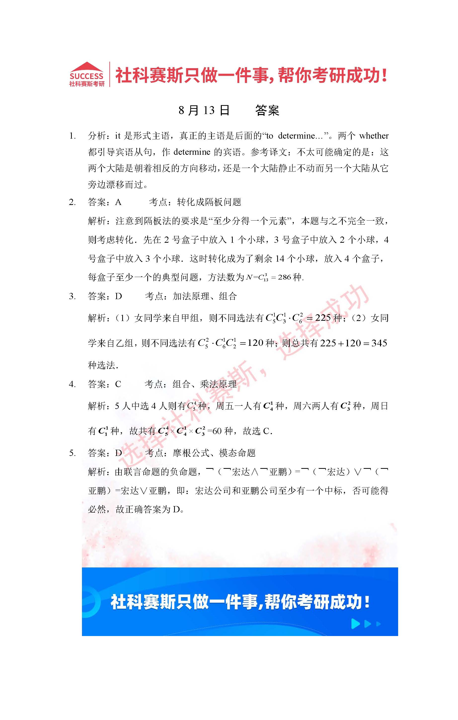 以上就是社科賽斯考研網(wǎng)小編為大家整理2022考研每日一練:8月13日管理類聯(lián)考每日一練及答案的全部內(nèi)容,希望各位考生堅(jiān)持利用起來,更多每日一練內(nèi)容請持續(xù)關(guān)注社科賽斯考研網(wǎng)。