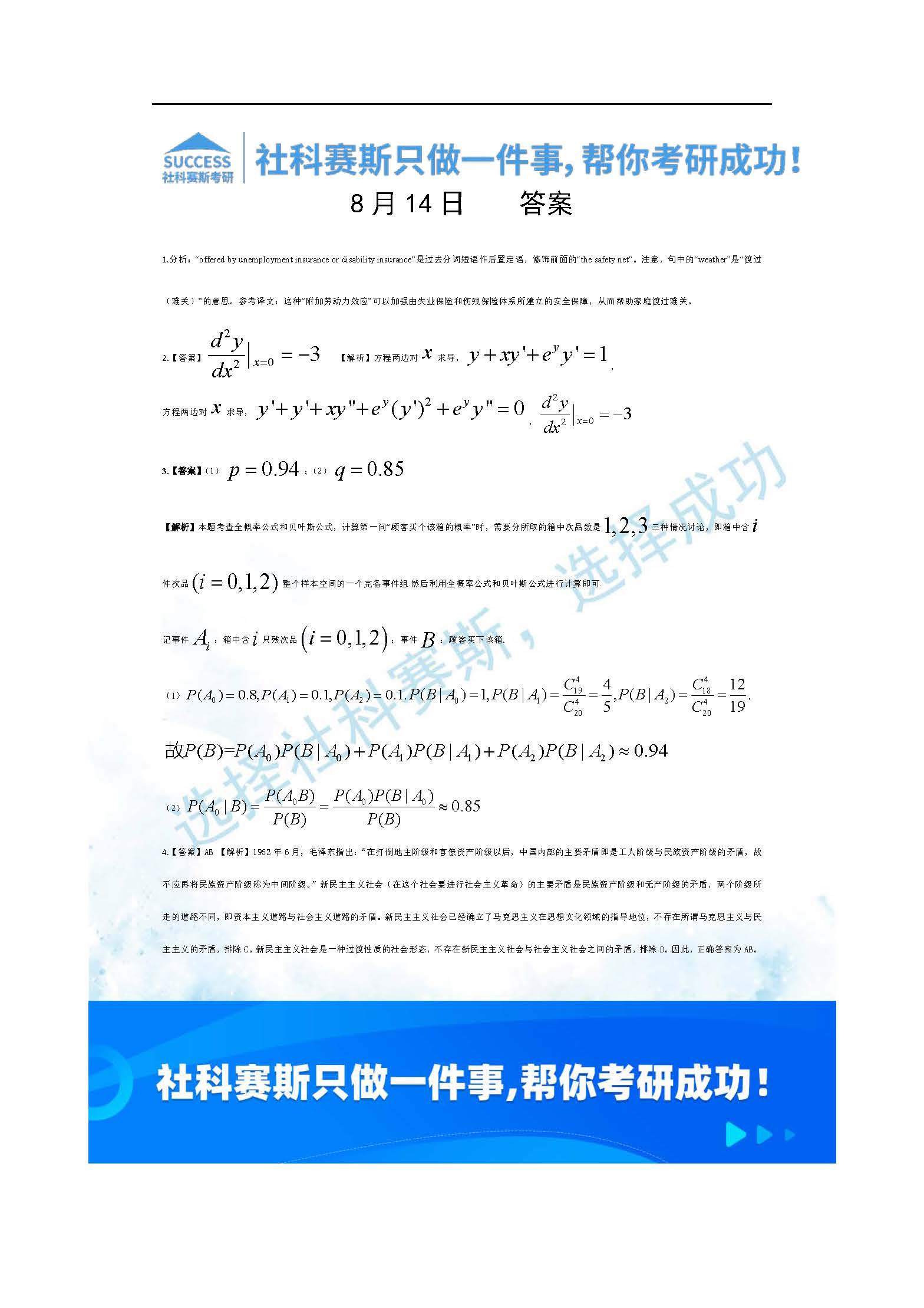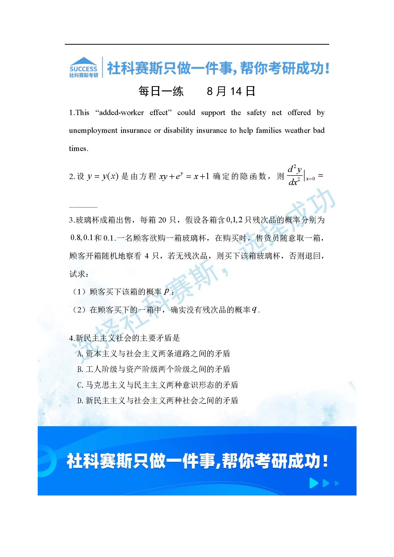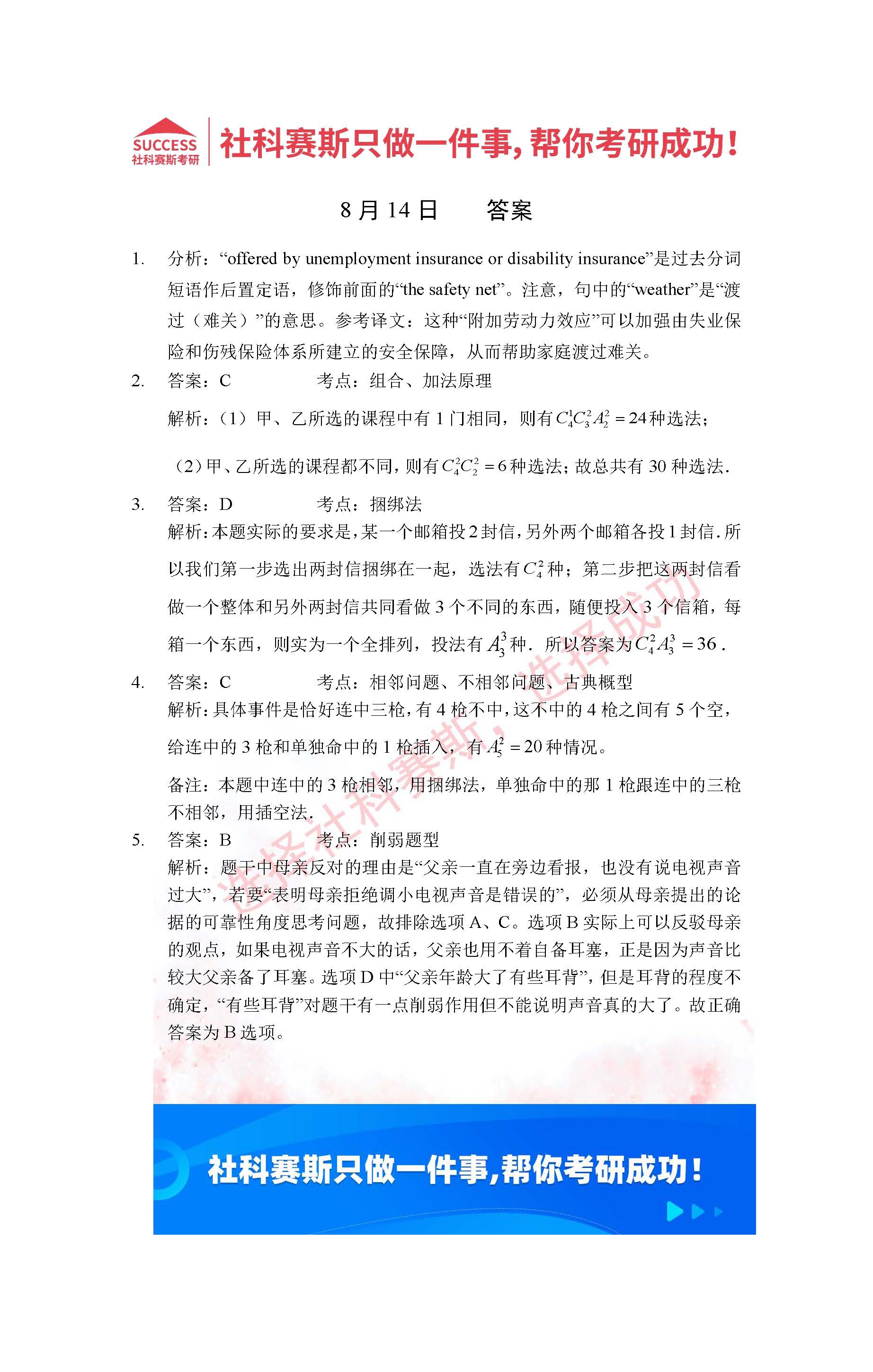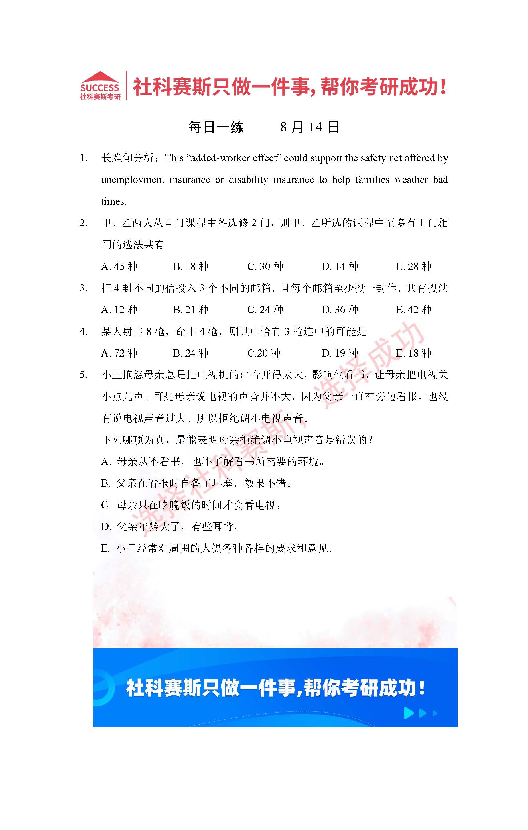 以上就是社科賽斯考研網(wǎng)小編為大家整理2022考研每日一練:8月14日管理類聯(lián)考每日一練及答案的全部?jī)?nèi)容,希望各位考生堅(jiān)持利用起來(lái),更多每日一練內(nèi)容請(qǐng)持續(xù)關(guān)注社科賽斯考研網(wǎng)。
