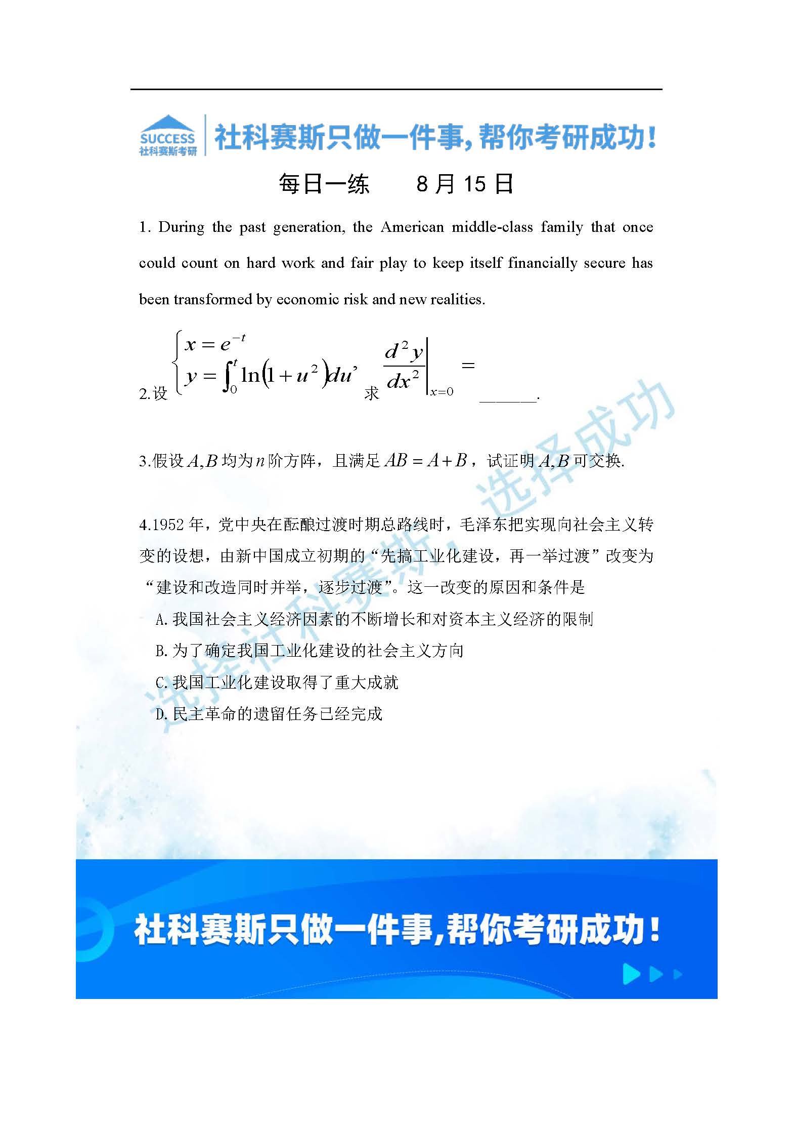 以上就是社科賽斯考研網(wǎng)小編為大家整理2022考研每日一練:8月15日管理類聯(lián)考每日一練及答案的全部內容,希望各位考生堅持利用起來,更多每日一練內容請持續(xù)關注社科賽斯考研網(wǎng)