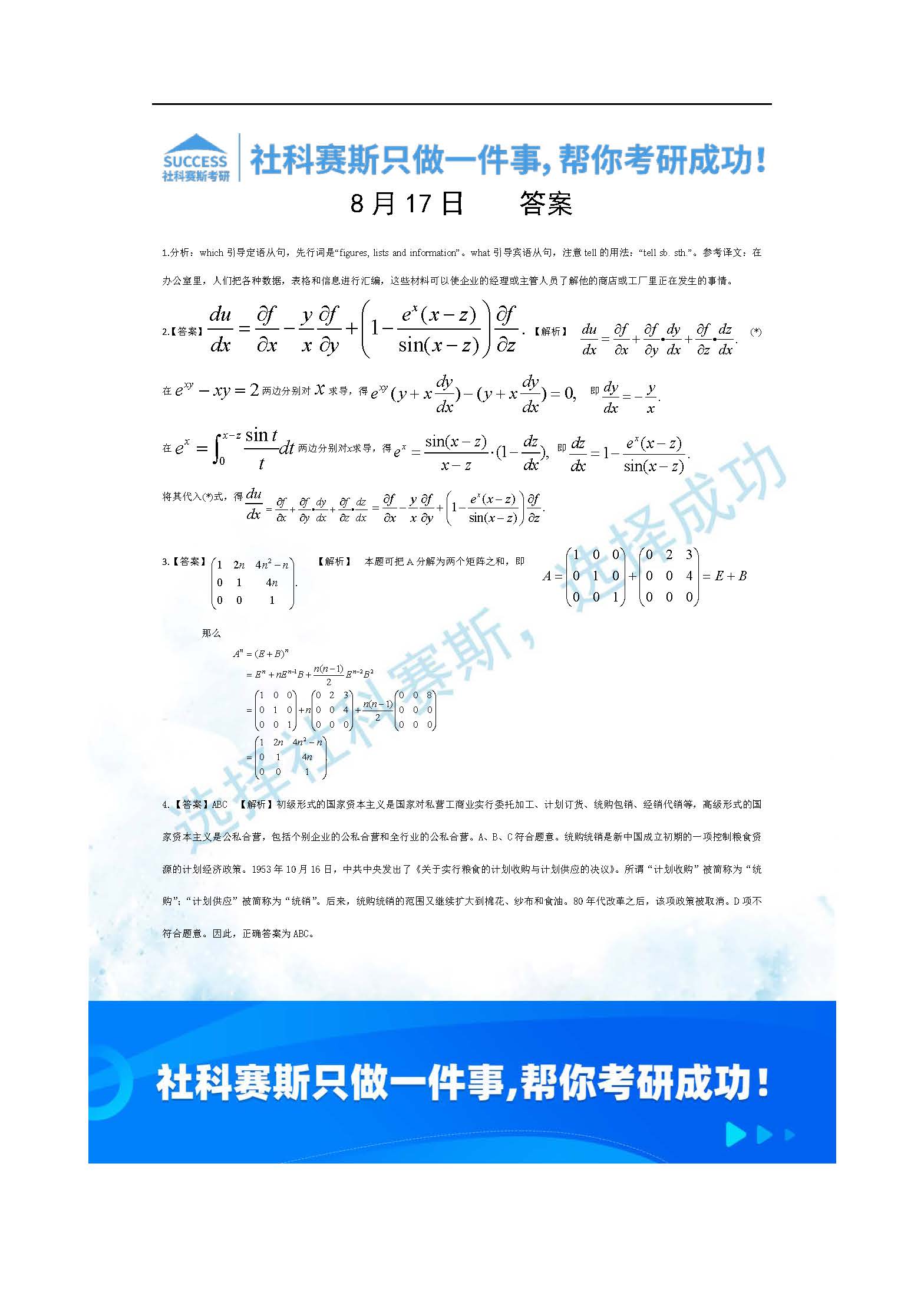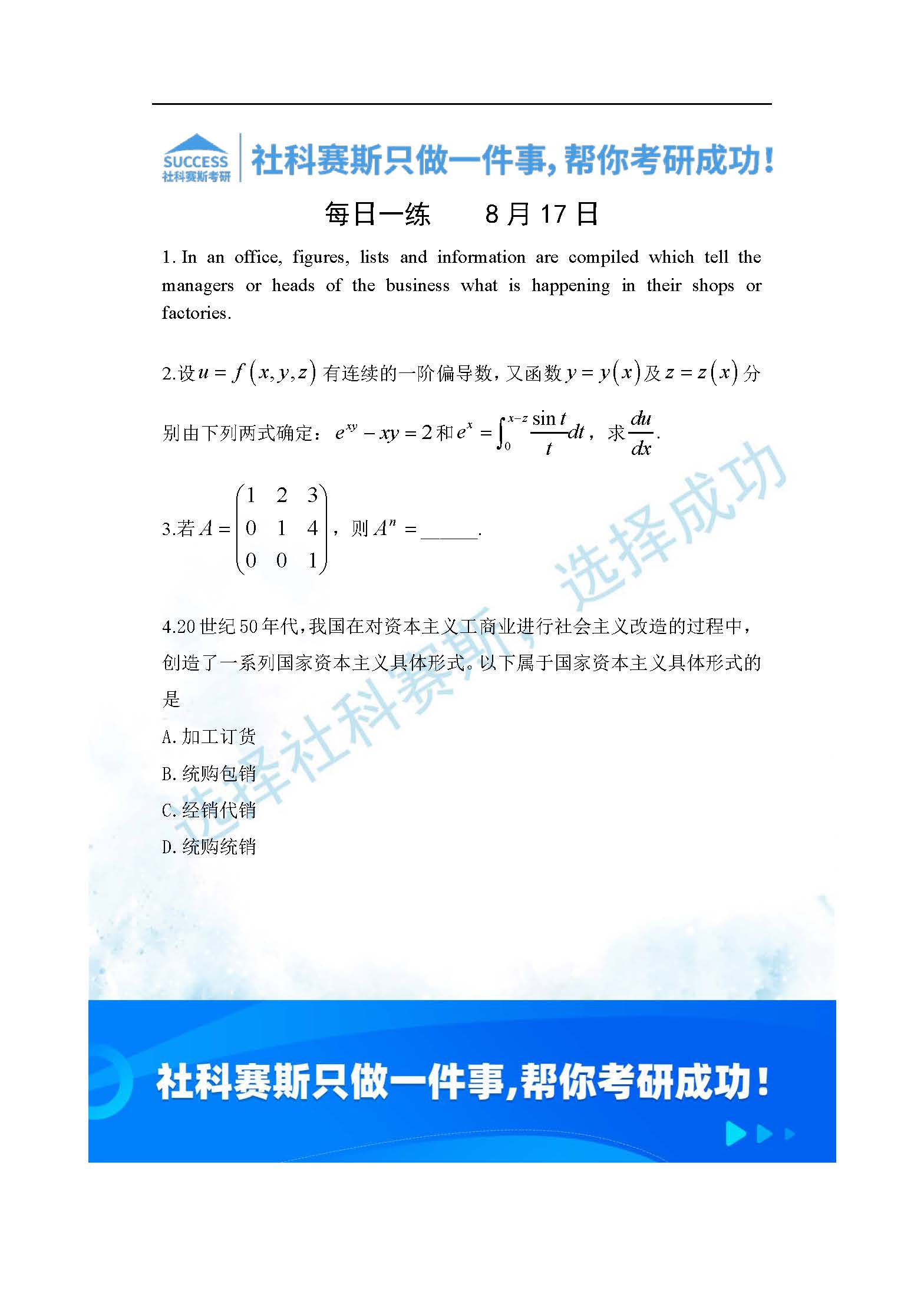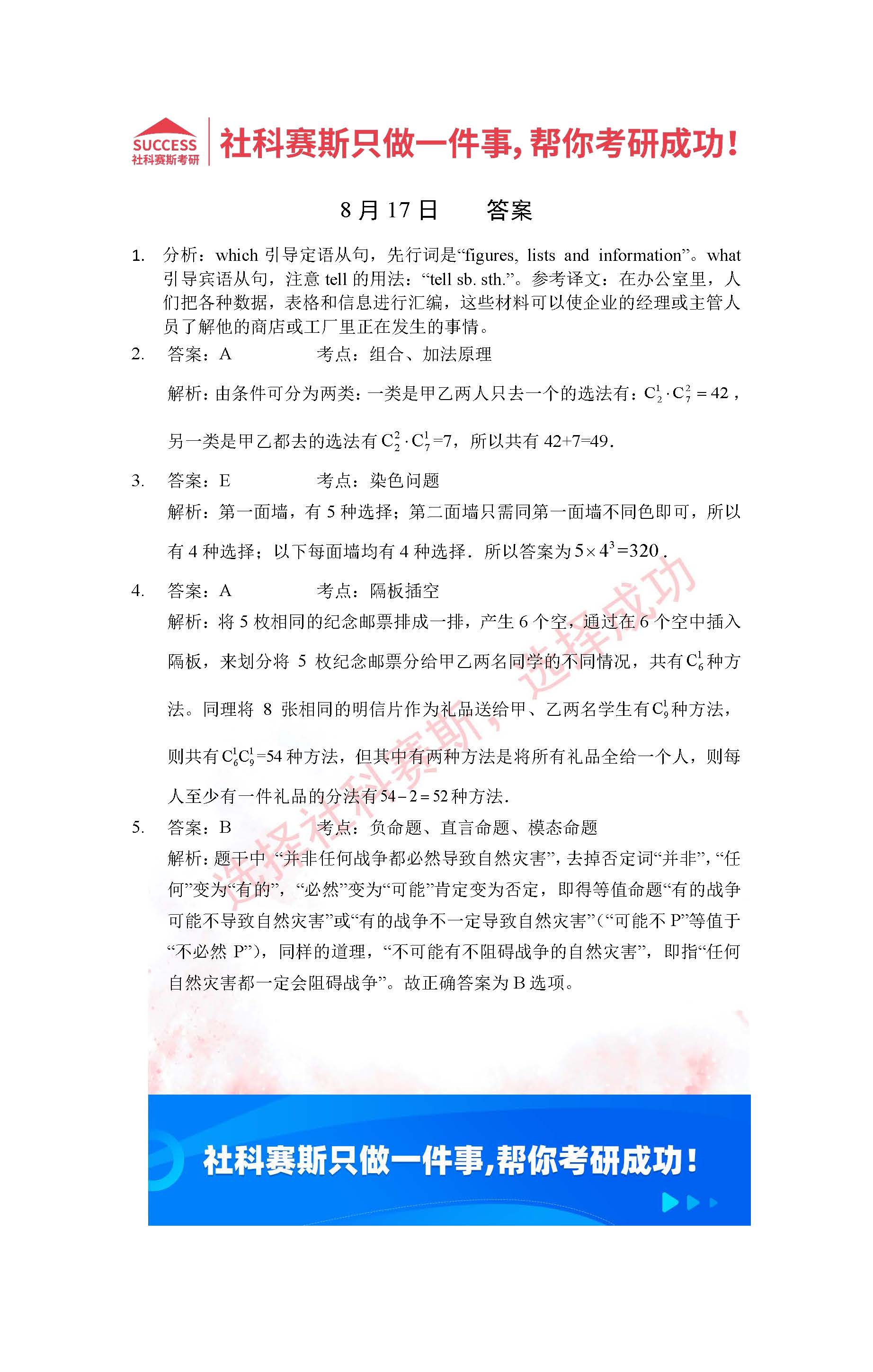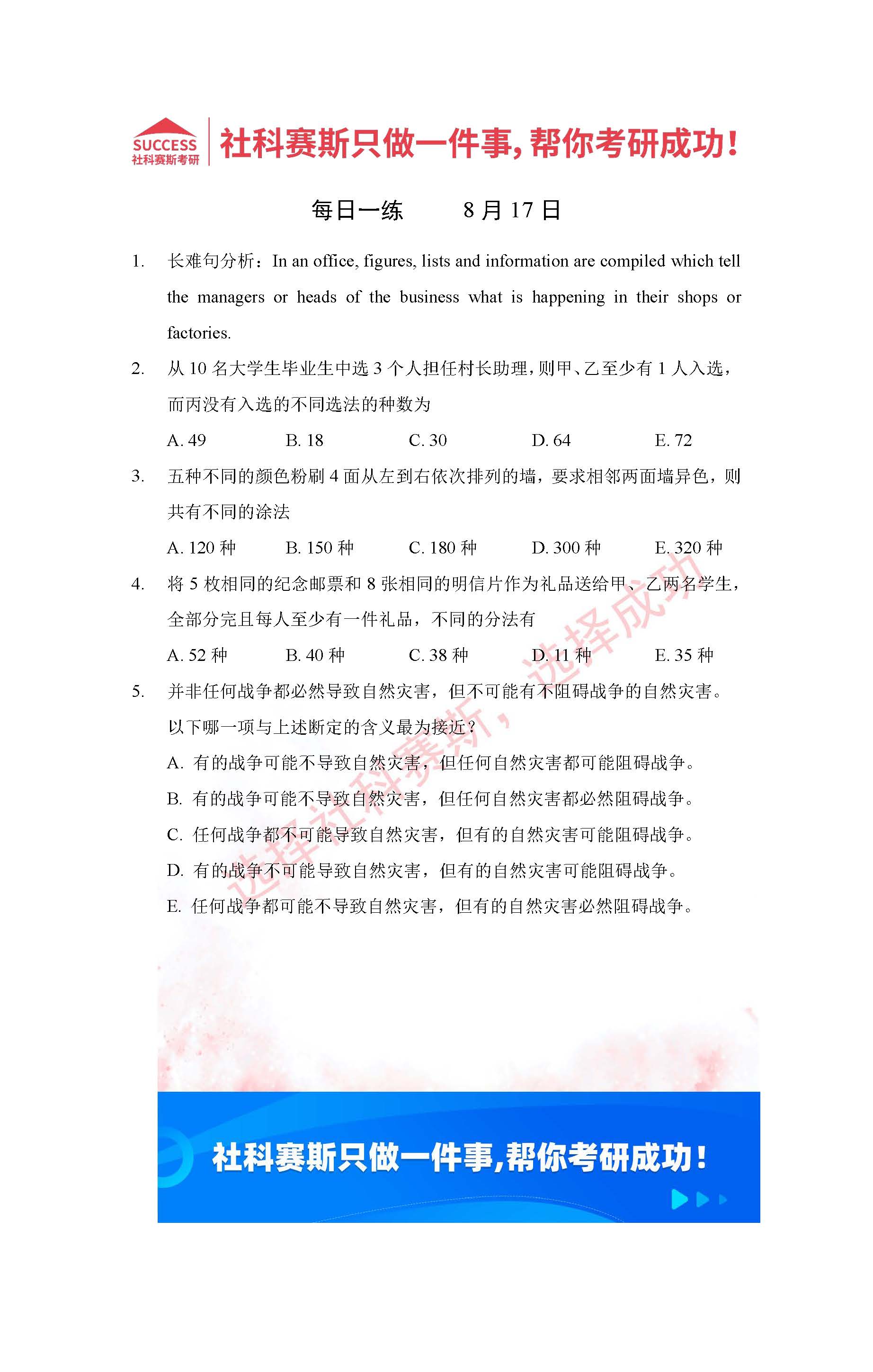 以上就是社科賽斯考研網(wǎng)小編為大家整理2022考研每日一練:8月17日管理類聯(lián)考每日一練及答案的全部?jī)?nèi)容,希望各位考生堅(jiān)持利用起來,更多每日一練內(nèi)容請(qǐng)持續(xù)關(guān)注社科賽斯考研網(wǎng)