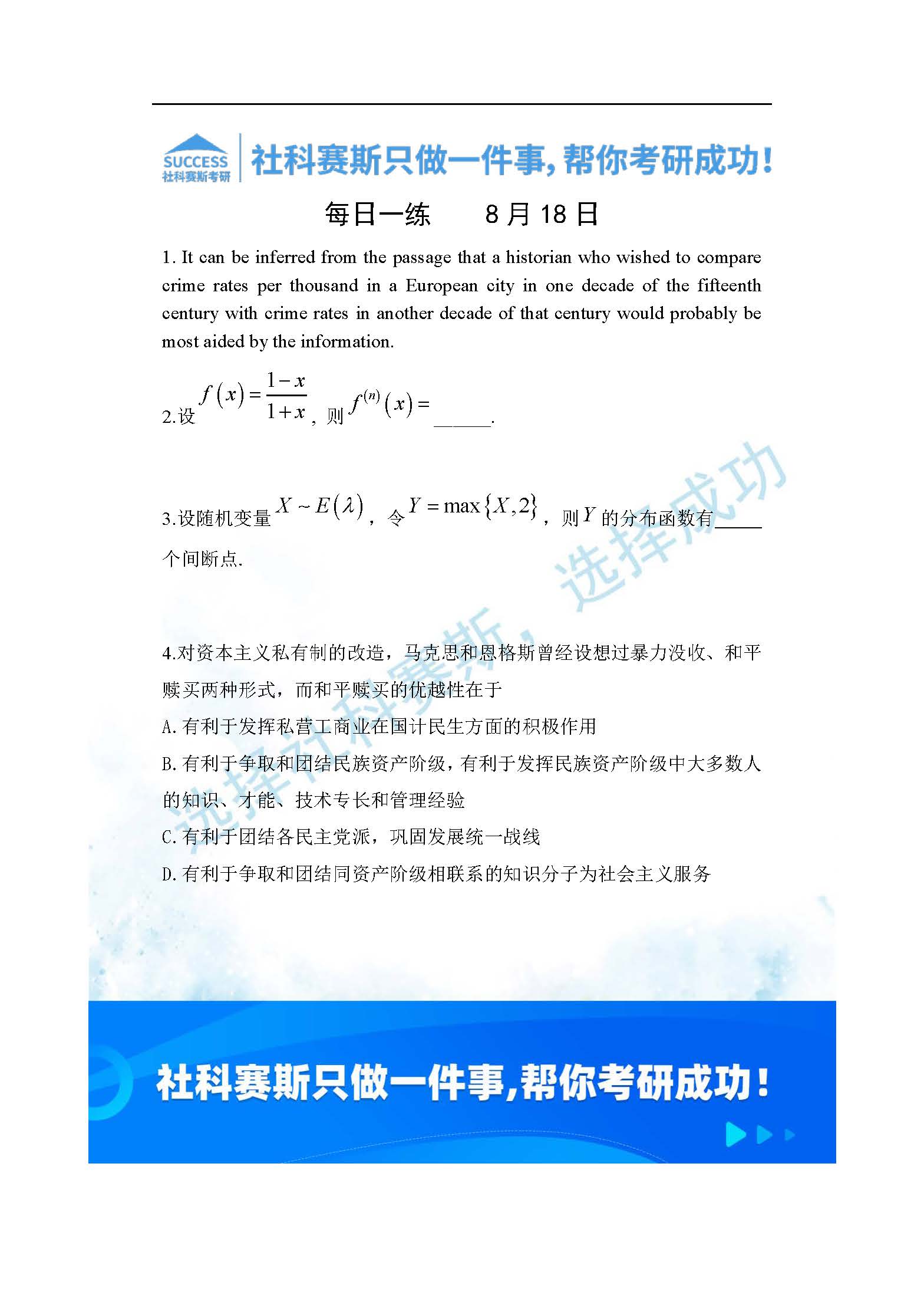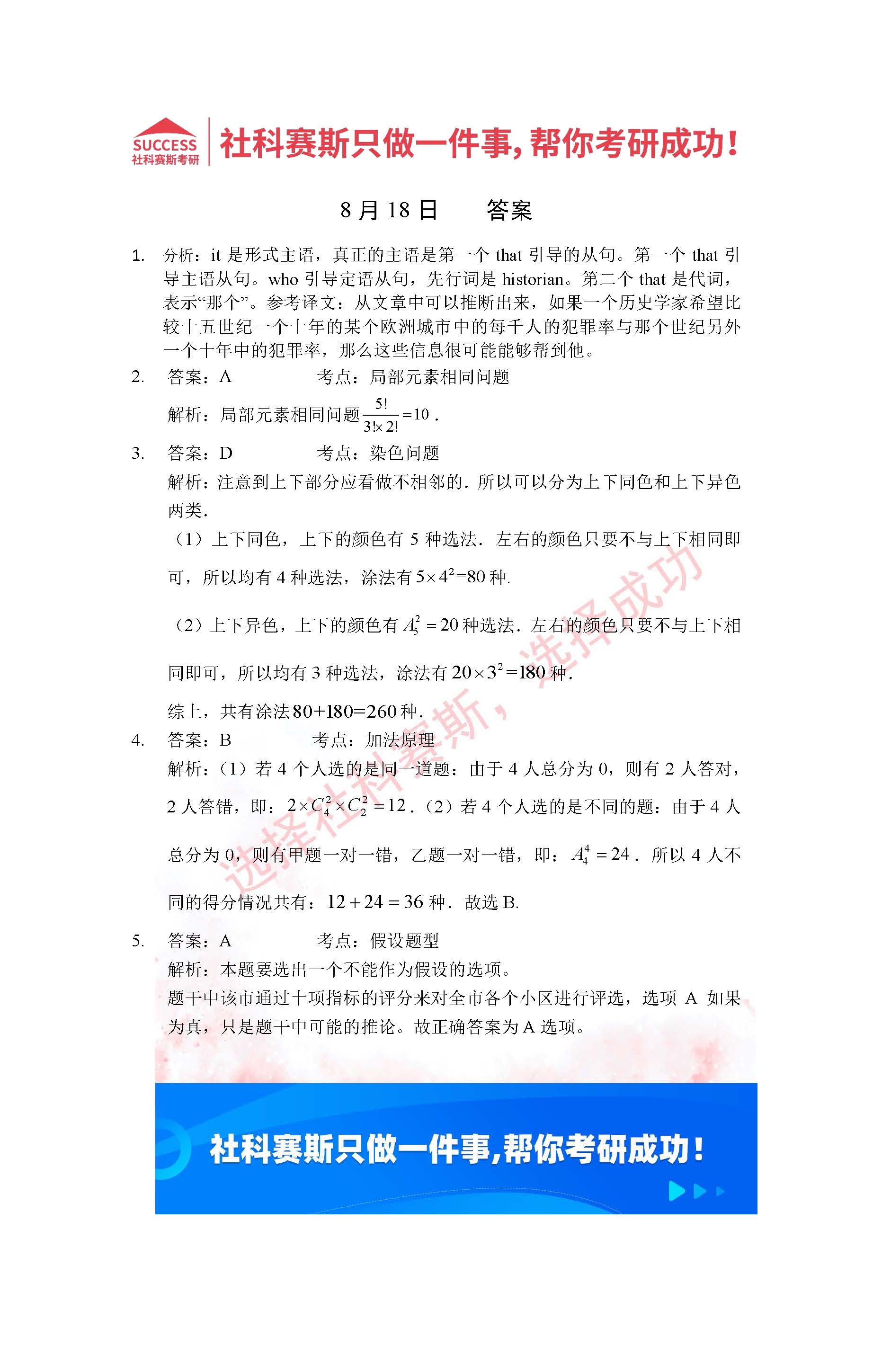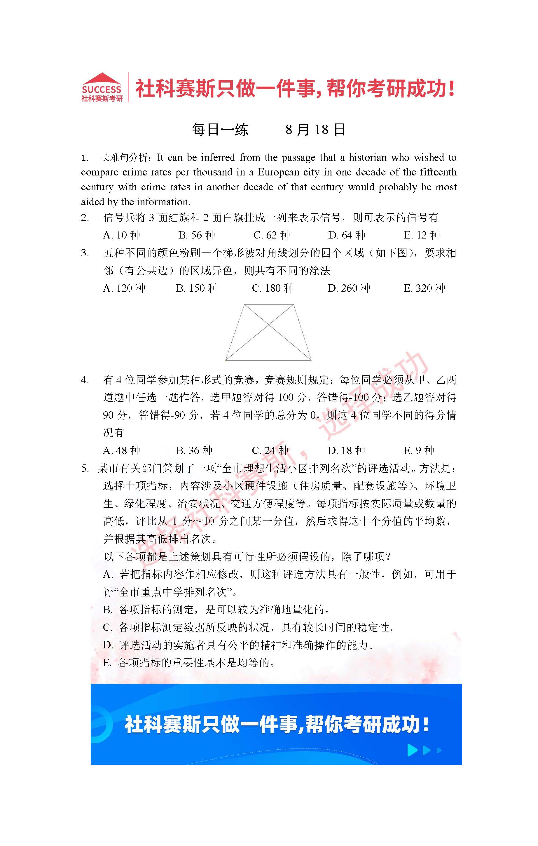 以上就是社科賽斯考研網(wǎng)小編為大家整理2022考研每日一練:8月18日管理類聯(lián)考每日一練及答案的全部內(nèi)容,希望各位考生堅持利用起來,更多每日一練內(nèi)容請持續(xù)關(guān)注社科賽斯考研網(wǎng)