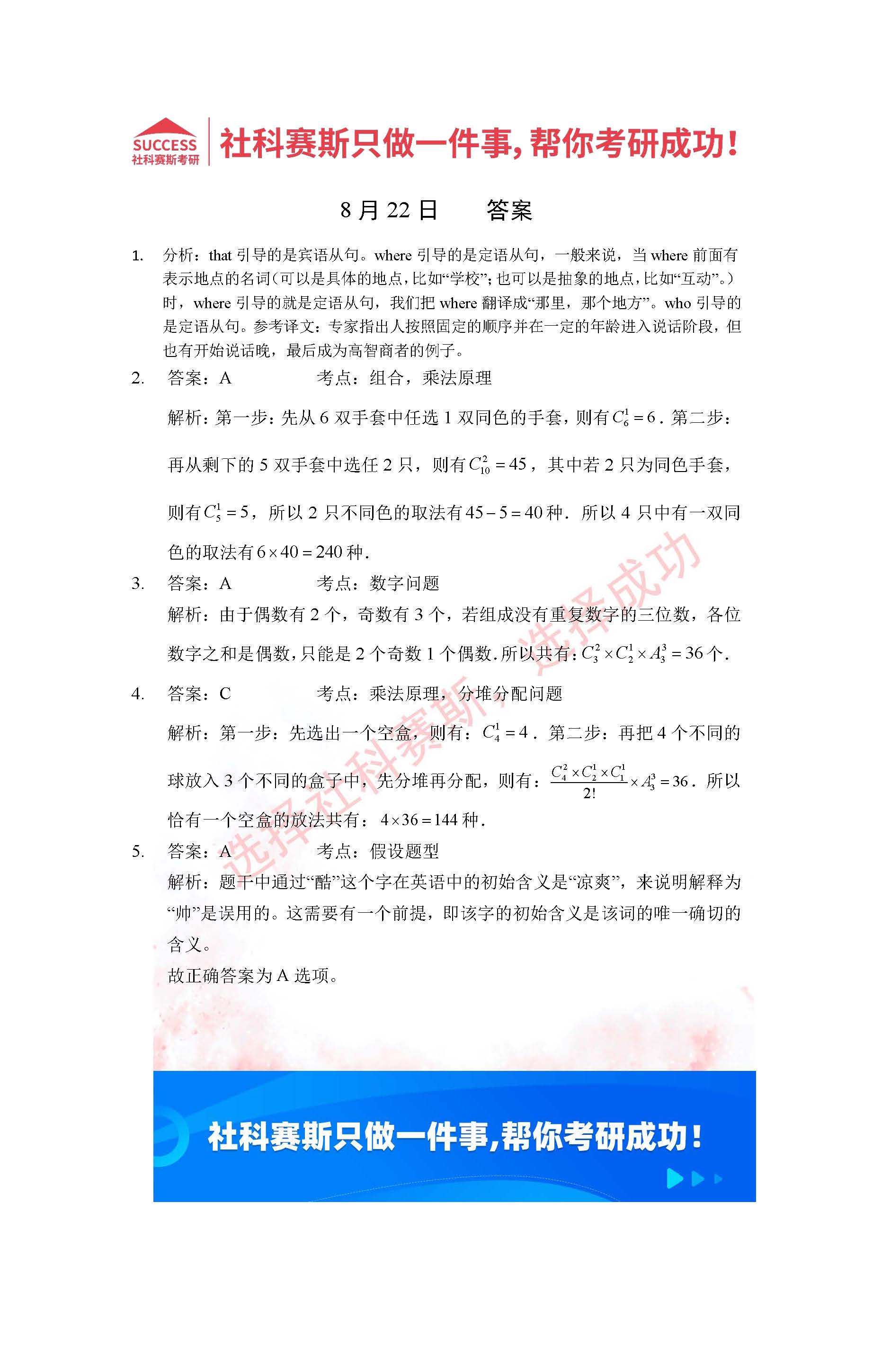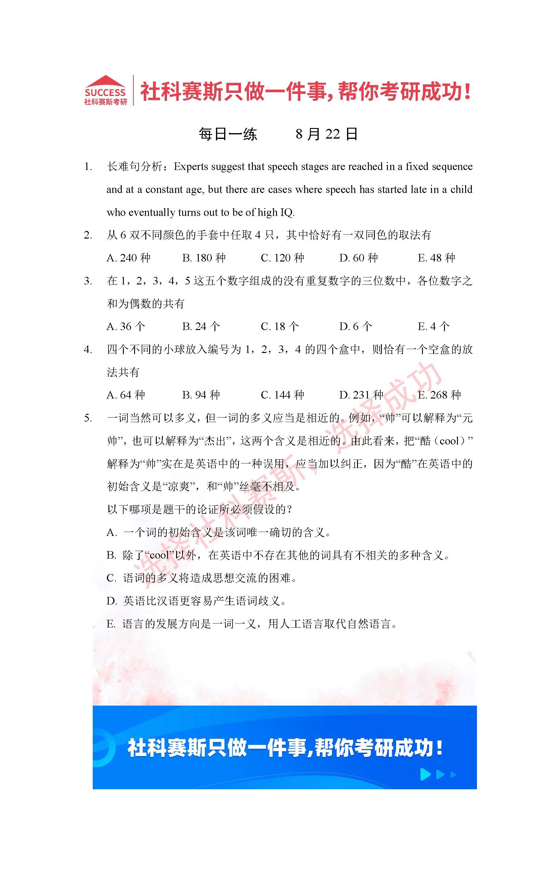 以上就是社科賽斯考研網(wǎng)小編為大家整理2022考研每日一練:8月22日管理類聯(lián)考每日一練及答案的全部內(nèi)容,希望各位考生堅持利用起來,更多每日一練內(nèi)容請持續(xù)關(guān)注社科賽斯考研網(wǎng)。