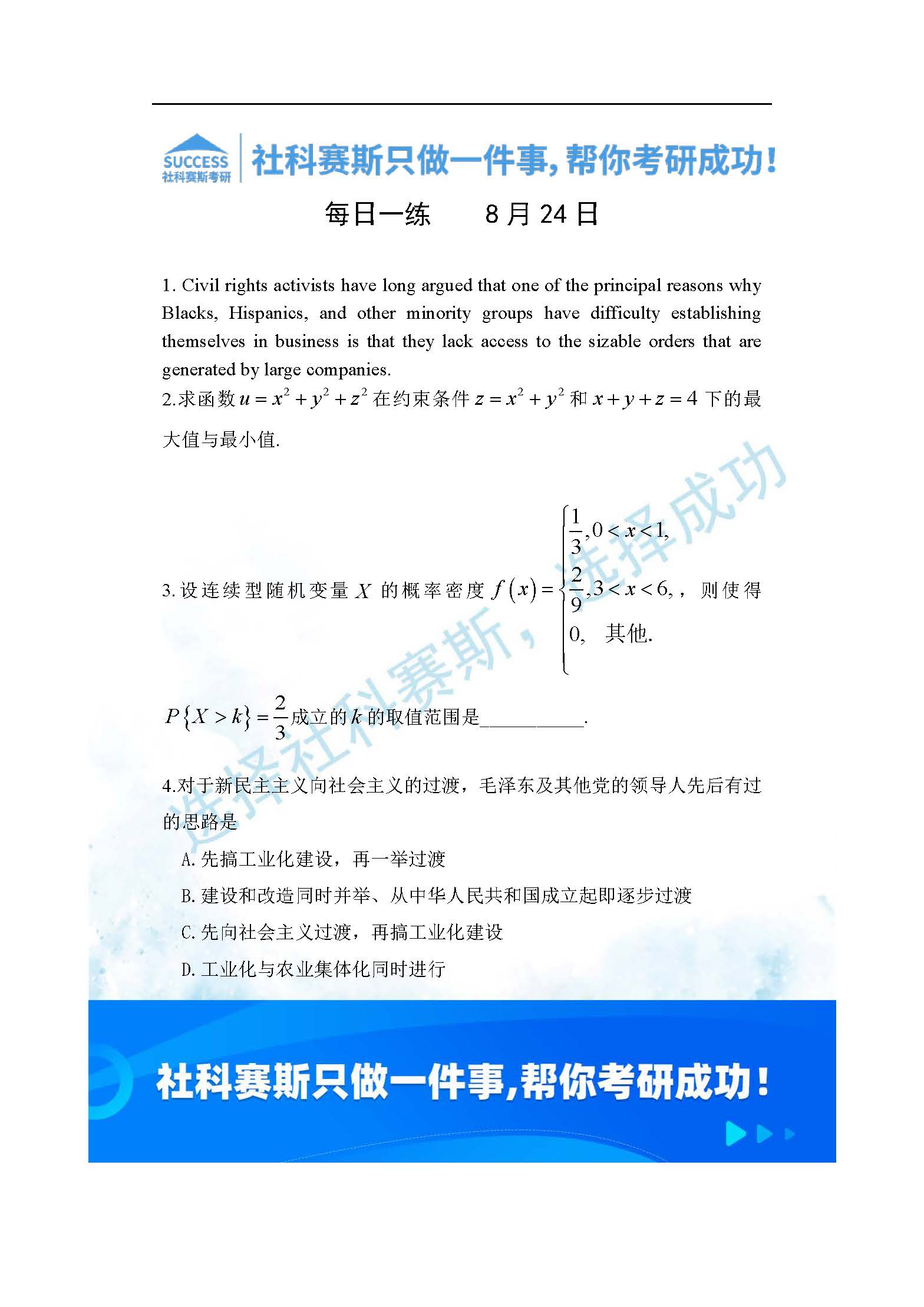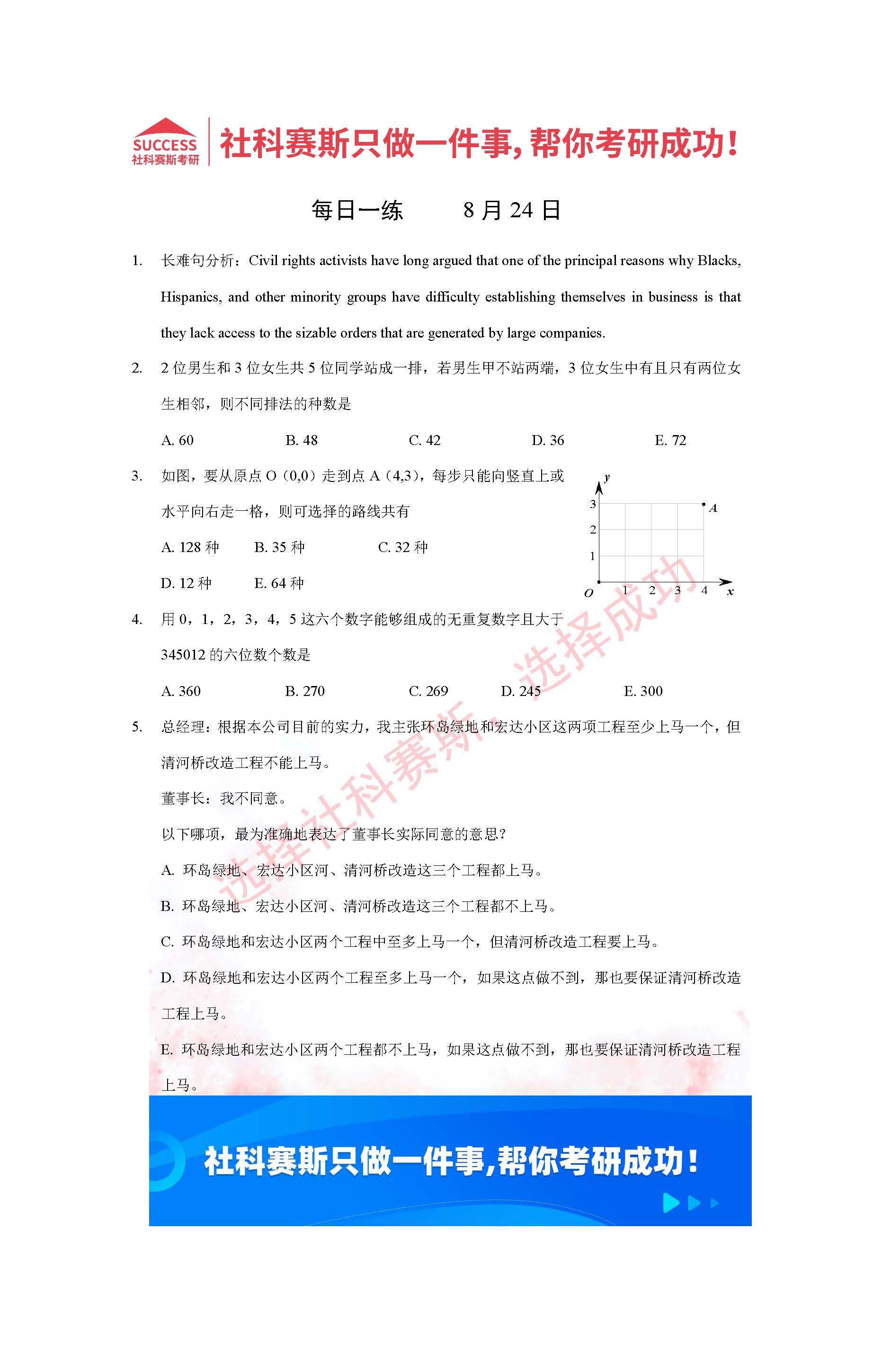 以上就是社科賽斯考研網(wǎng)小編為大家整理2022考研每日一練:8月24日管理類聯(lián)考每日一練及答案的全部內(nèi)容,希望各位考生堅持利用起來,更多每日一練內(nèi)容請持續(xù)關(guān)注社科賽斯考研網(wǎng)。