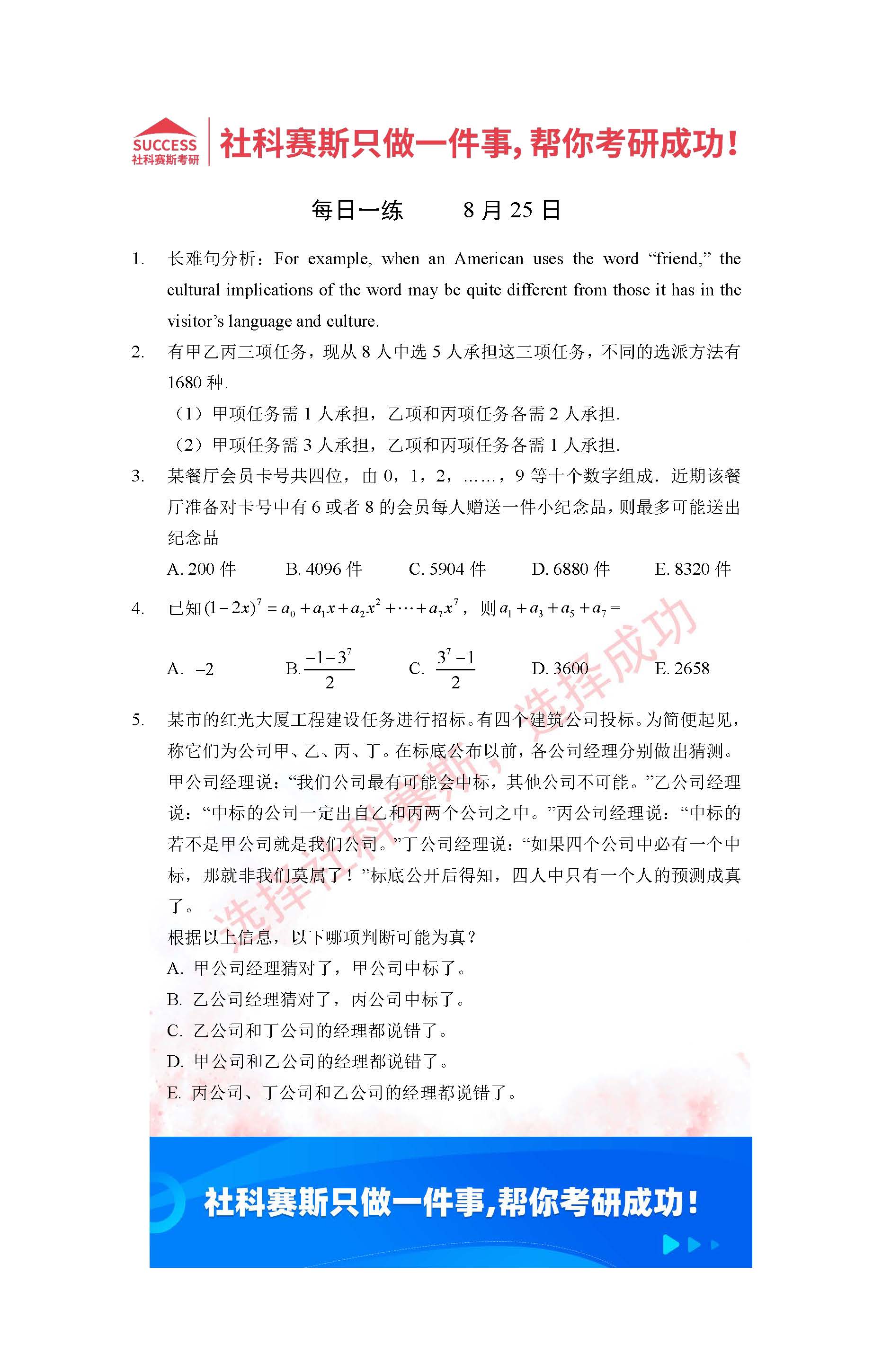 2022考研每日一練:8月25日管理類聯(lián)考每日一練及答案