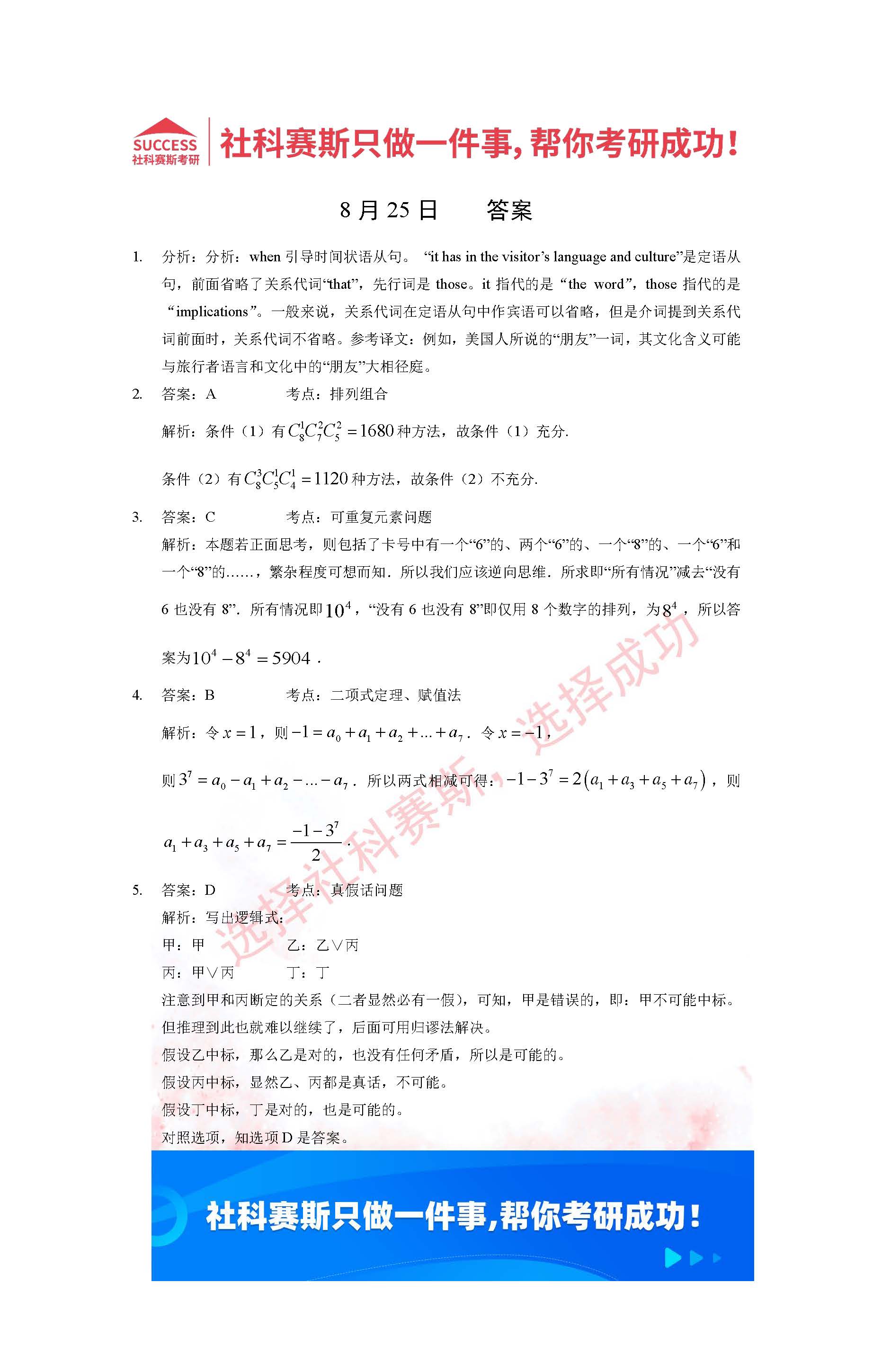 以上就是社科賽斯考研網(wǎng)小編為大家整理2022考研每日一練:8月25日管理類聯(lián)考每日一練及答案的全部內(nèi)容,希望各位考生堅(jiān)持利用起來,更多每日一練內(nèi)容請持續(xù)關(guān)注社科賽斯考研網(wǎng)。