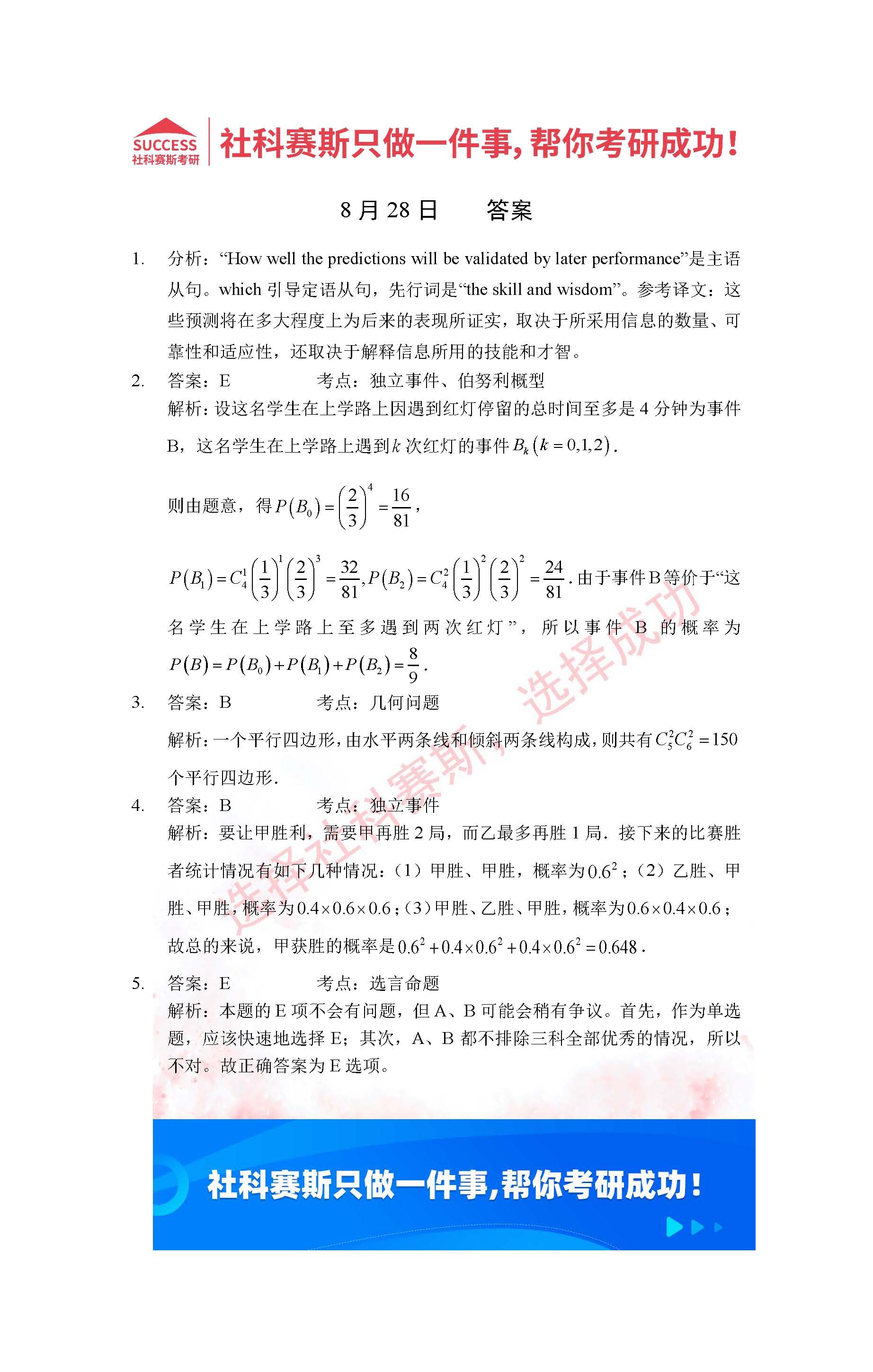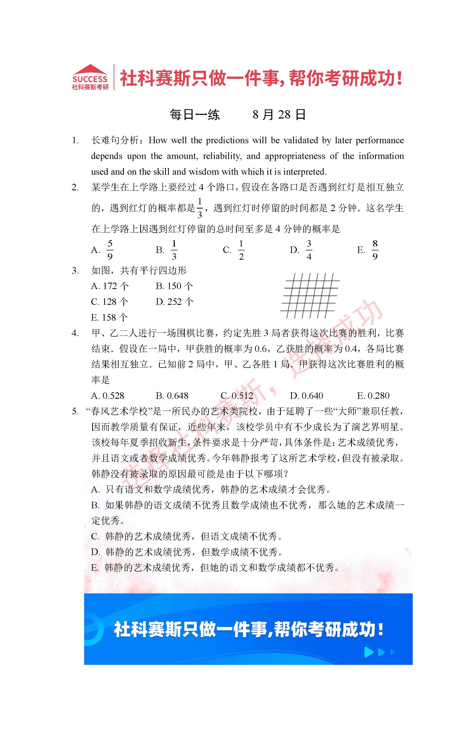 以上就是社科賽斯考研網(wǎng)小編為大家整理2022考研每日一練:8月28日管理類聯(lián)考每日一練及答案的全部內(nèi)容,希望各位考生堅持利用起來,更多每日一練內(nèi)容請持續(xù)關注社科賽斯考研網(wǎng)。