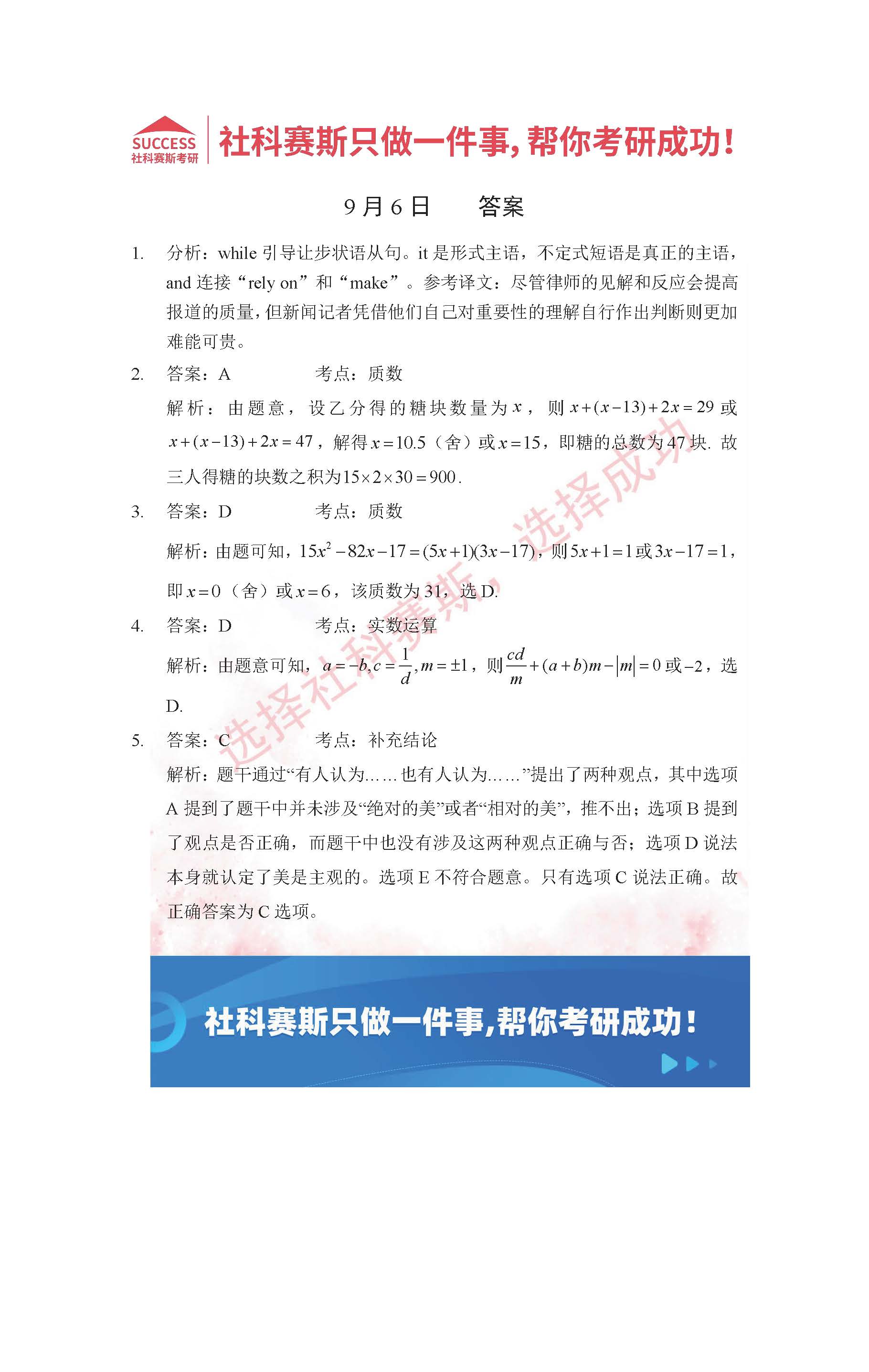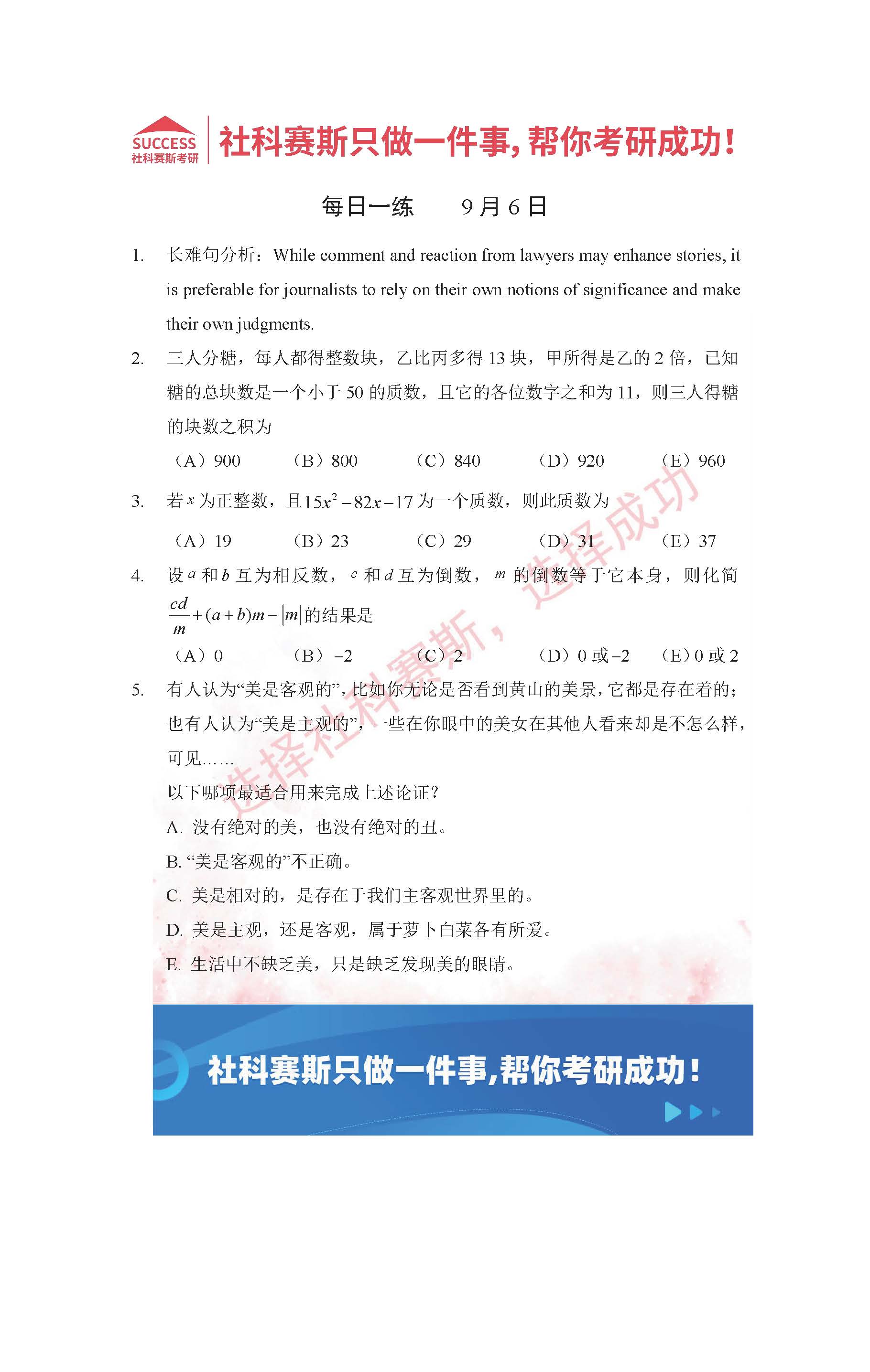 以上就是社科賽斯考研網(wǎng)小編為大家整理2022考研每日一練:9月6日管理類聯(lián)考每日一練及答案的全部內(nèi)容,希望各位考生堅持利用起來,更多每日一練內(nèi)容請持續(xù)關(guān)注社科賽斯考研網(wǎng)。