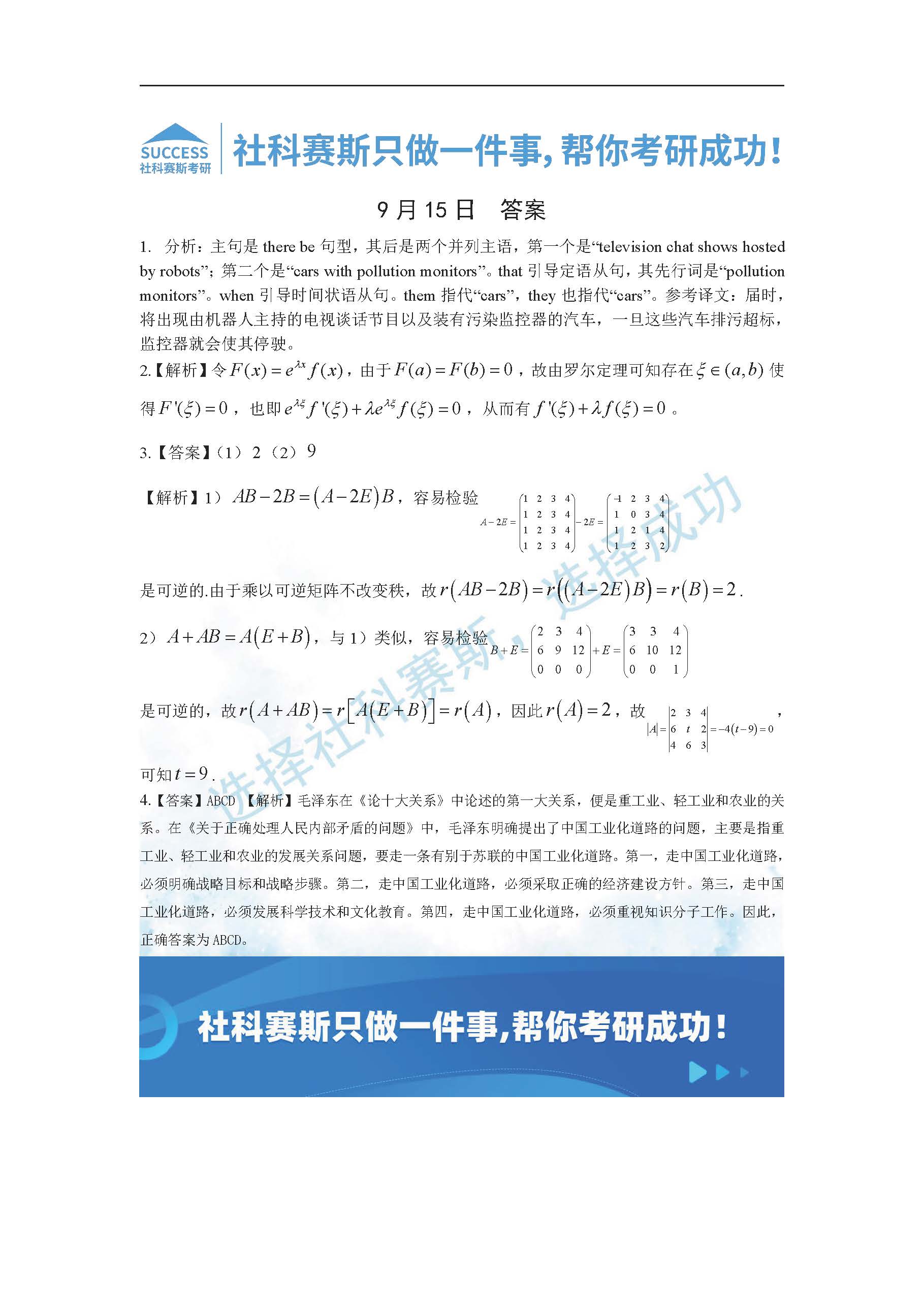 以上就是社科賽斯考研網(wǎng)小編為大家整理2022考研每日一練:9月15日管理類聯(lián)考每日一練及答案的全部內(nèi)容,希望各位考生堅持利用起來,更多每日一練內(nèi)容請持續(xù)關(guān)注社科賽斯考研網(wǎng)。