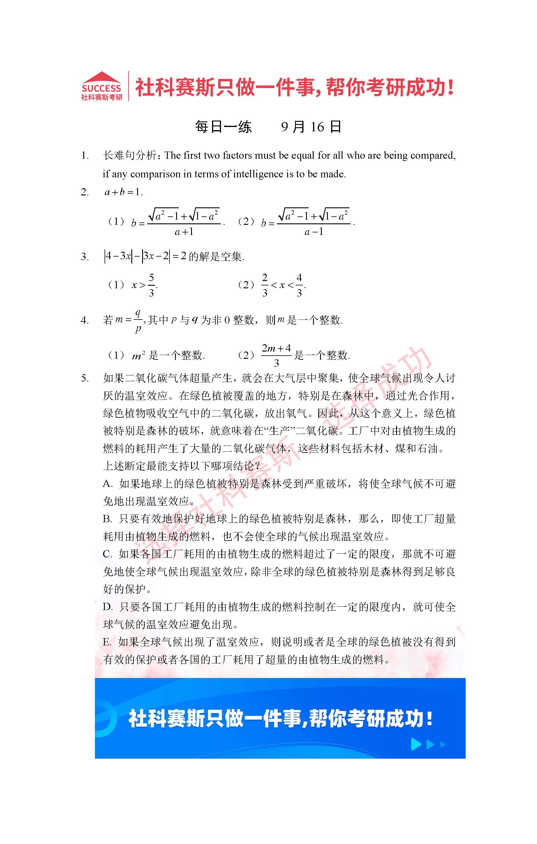 以上就是社科賽斯考研網(wǎng)小編為大家整理2022考研每日一練:9月16日管理類聯(lián)考每日一練及答案的全部內(nèi)容,希望各位考生堅(jiān)持利用起來,更多每日一練內(nèi)容請(qǐng)持續(xù)關(guān)注社科賽斯考研網(wǎng)。