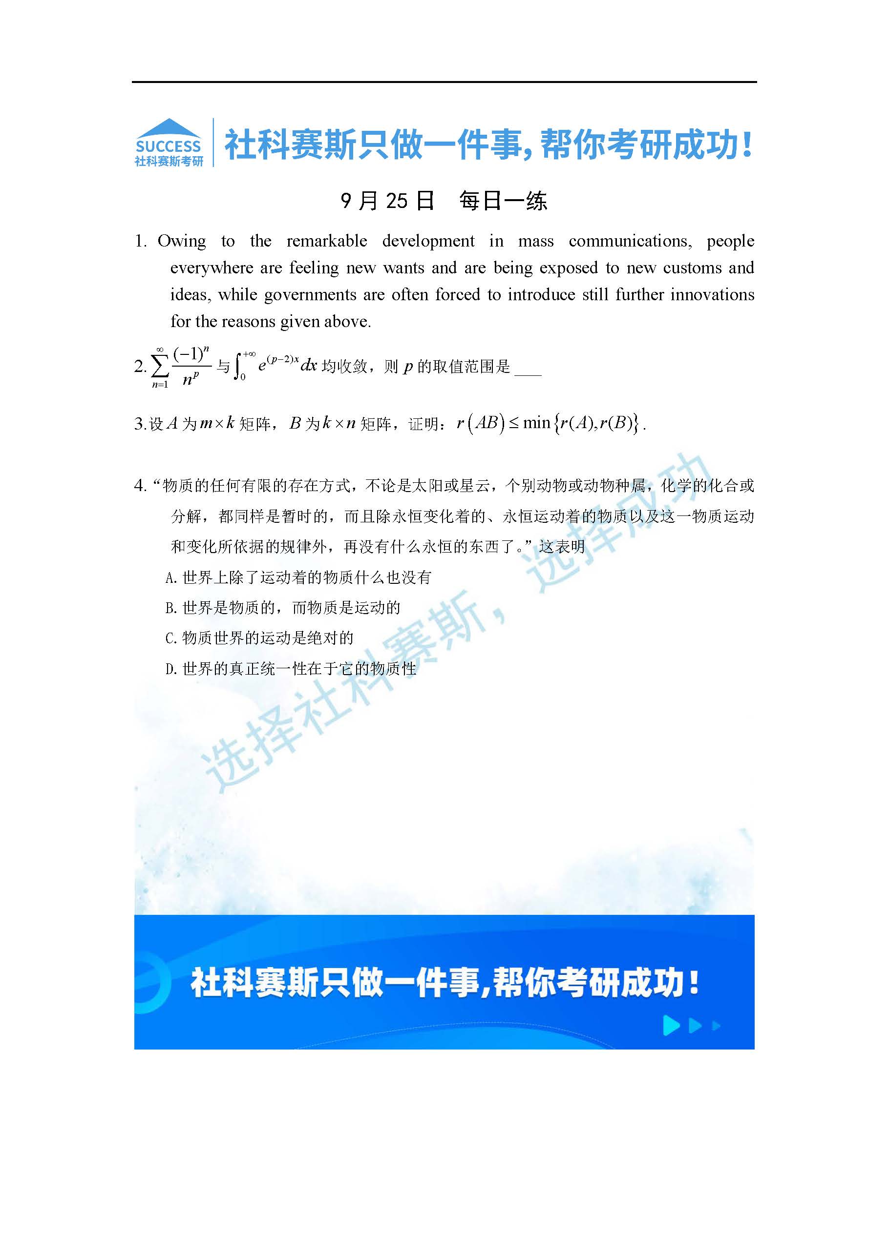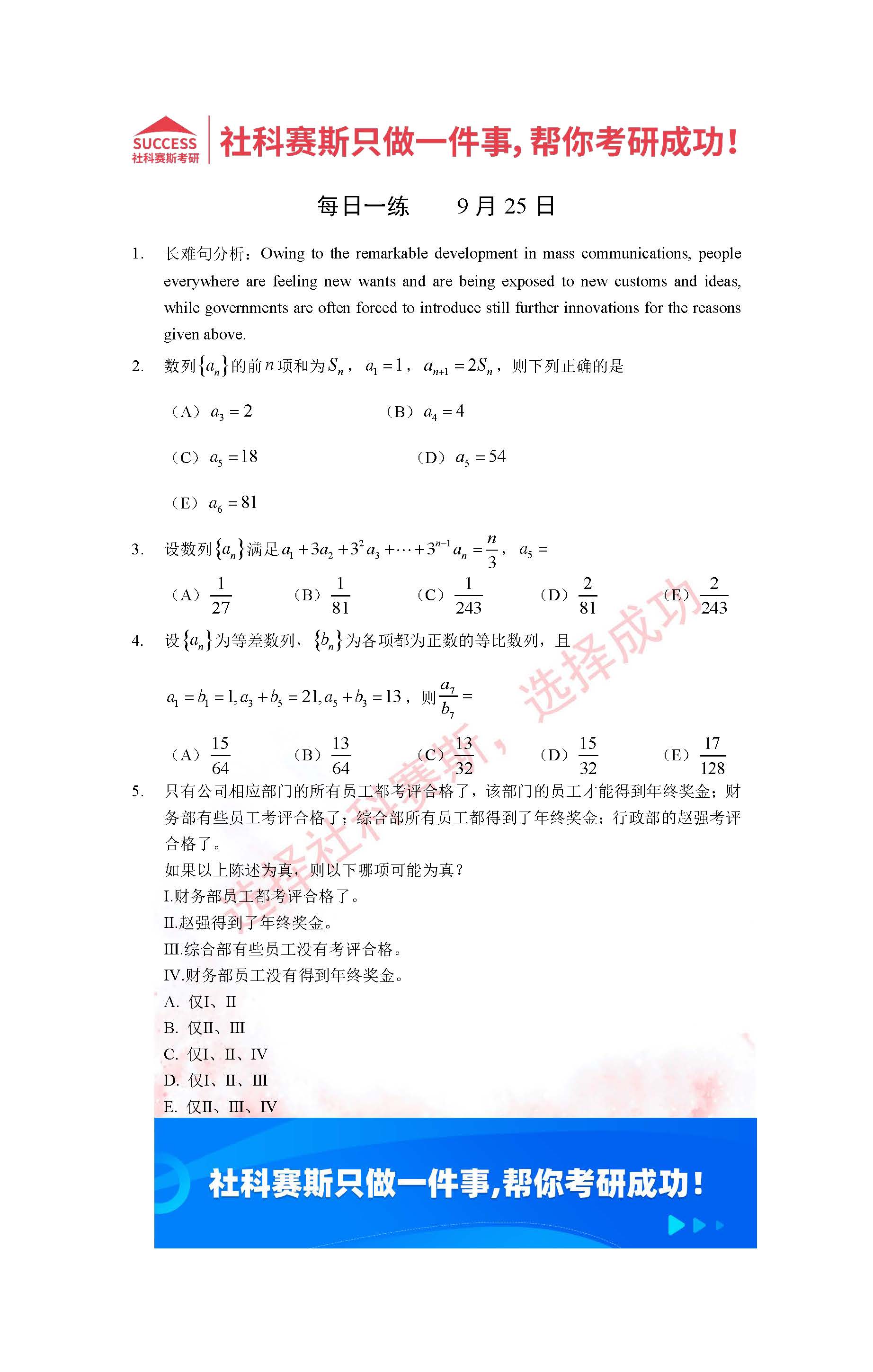 以上就是社科賽斯考研網(wǎng)小編為大家整理2022考研每日一練:9月25日管理類聯(lián)考每日一練及答案的全部?jī)?nèi)容,希望各位考生堅(jiān)持利用起來,更多每日一練內(nèi)容請(qǐng)持續(xù)關(guān)注社科賽斯考研網(wǎng)