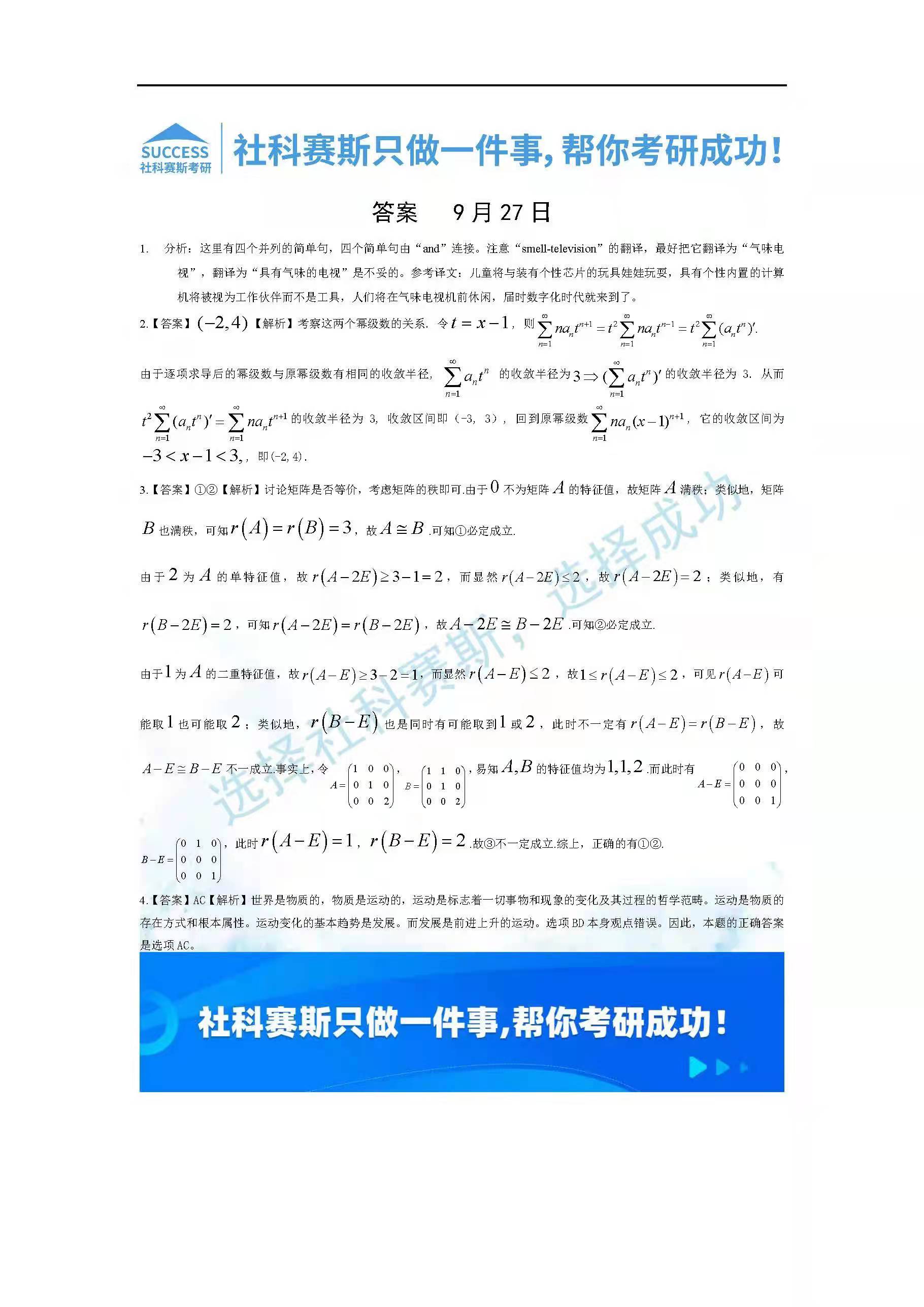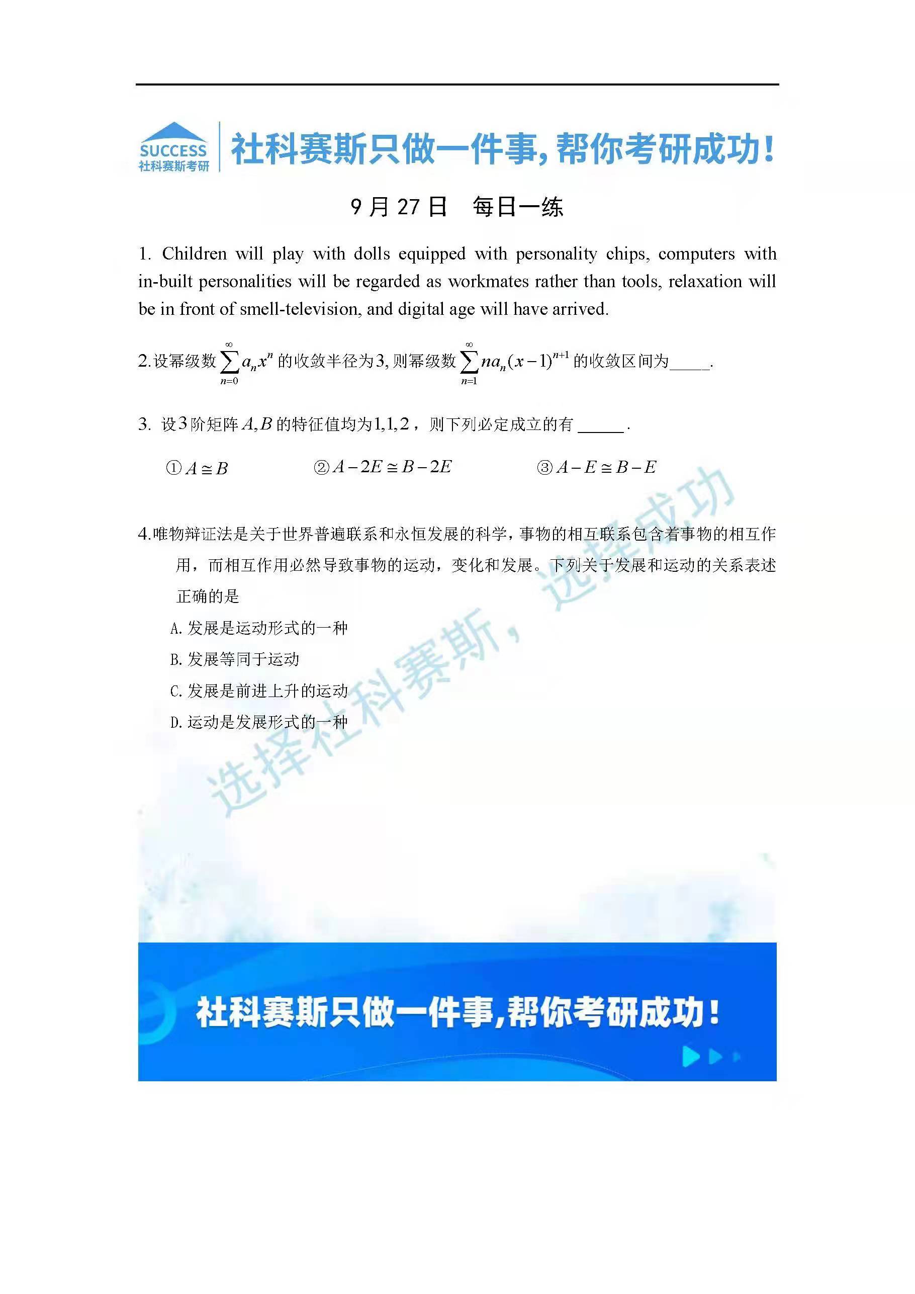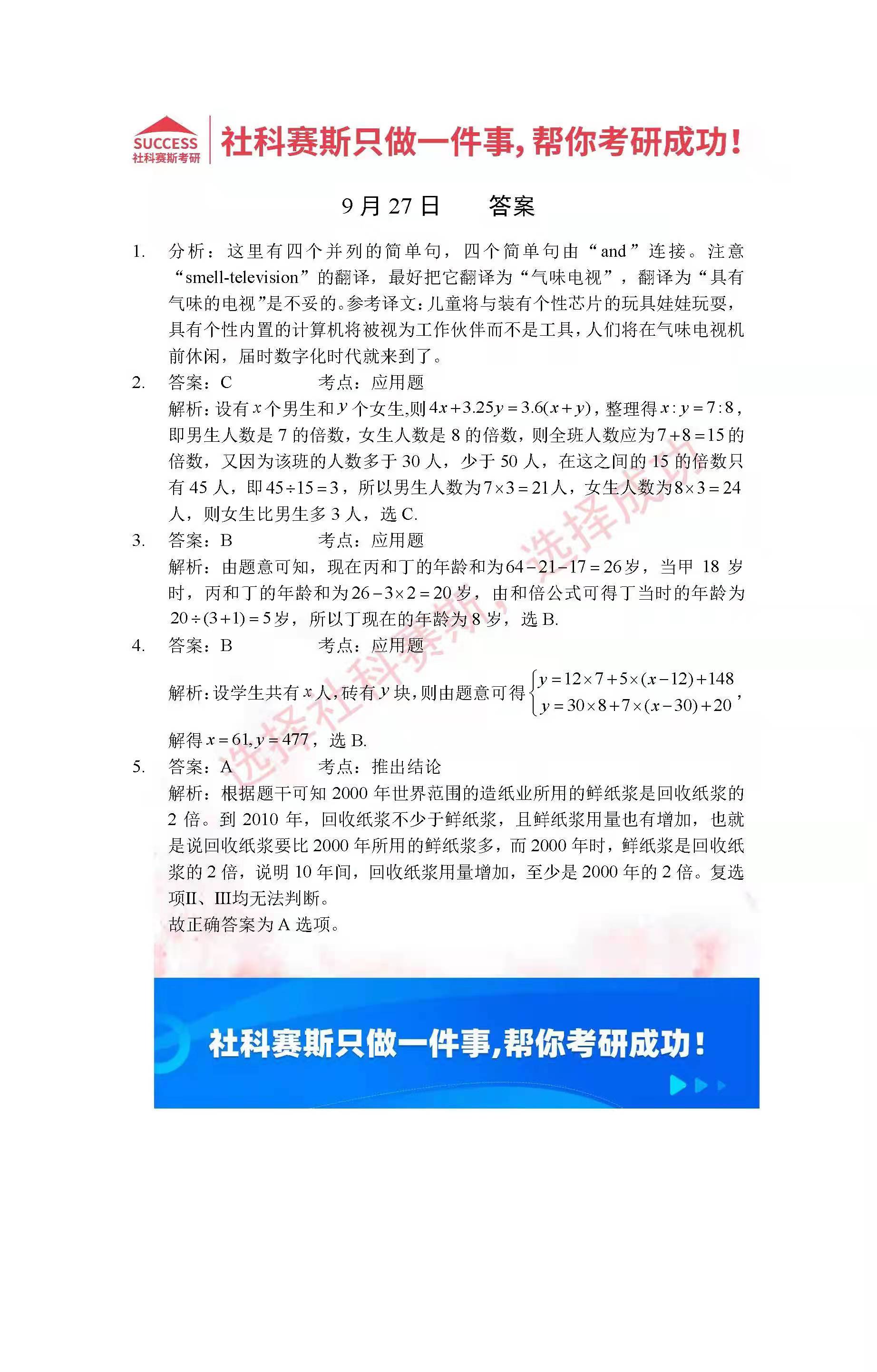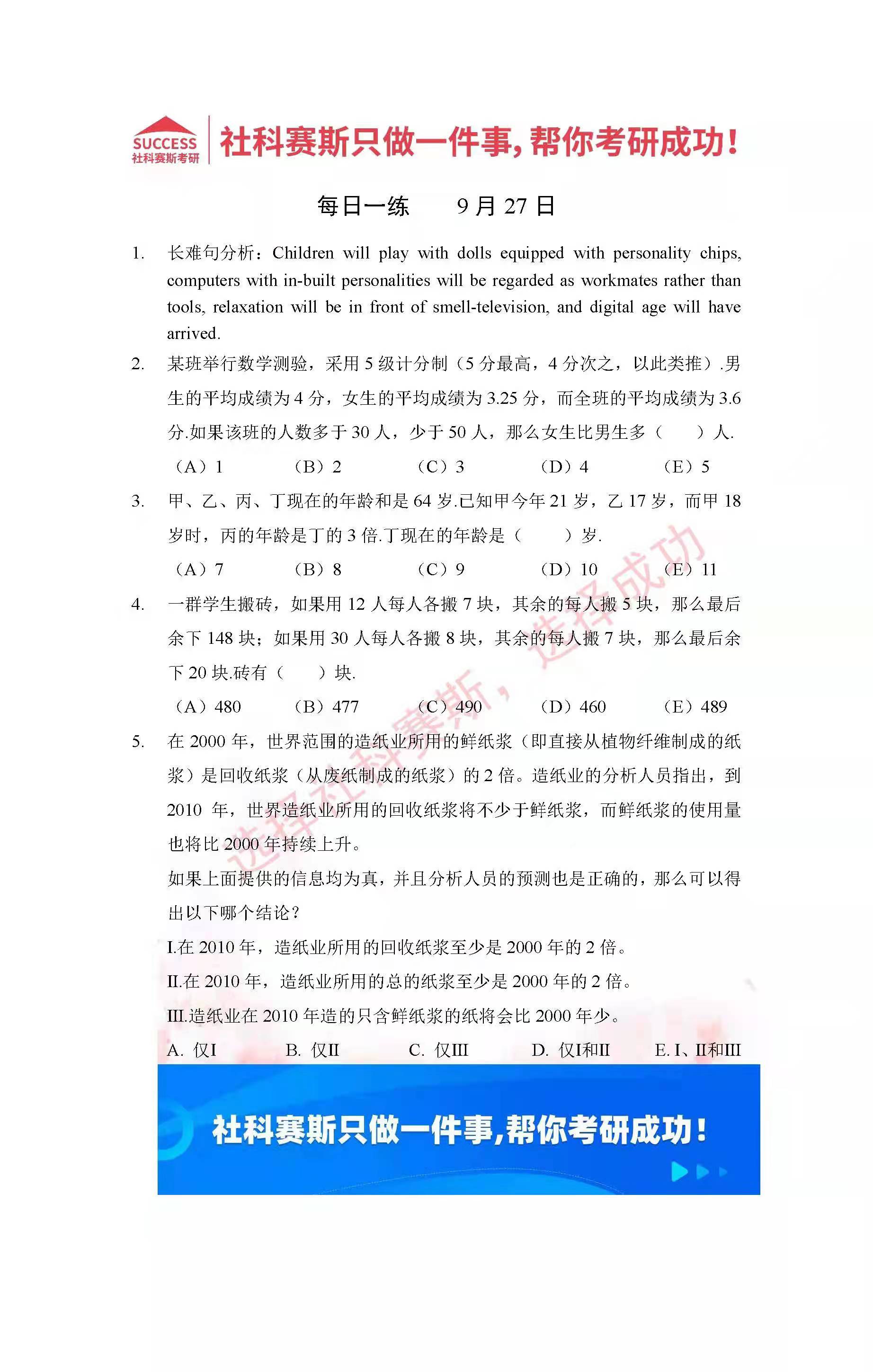 以上就是社科賽斯考研網(wǎng)小編為大家整理2022考研每日一練:9月27日管理類聯(lián)考每日一練及答案的全部內(nèi)容,希望各位考生堅持利用起來,更多每日一練內(nèi)容請持續(xù)關(guān)注社科賽斯考研網(wǎng)。