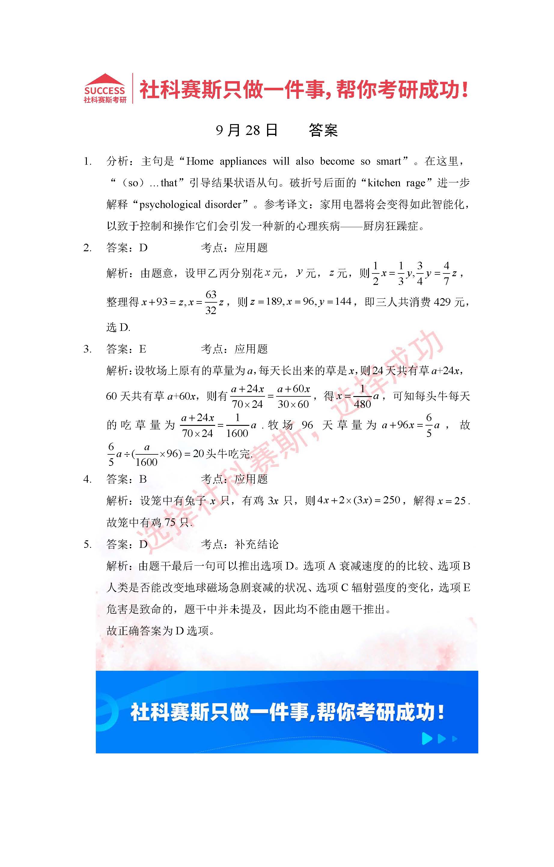 以上就是社科賽斯考研網(wǎng)小編為大家整理2022考研每日一練:9月28日管理類聯(lián)考每日一練及答案的全部內(nèi)容,希望各位考生堅持利用起來,更多每日一練內(nèi)容請持續(xù)關(guān)注社科賽斯考研網(wǎng)